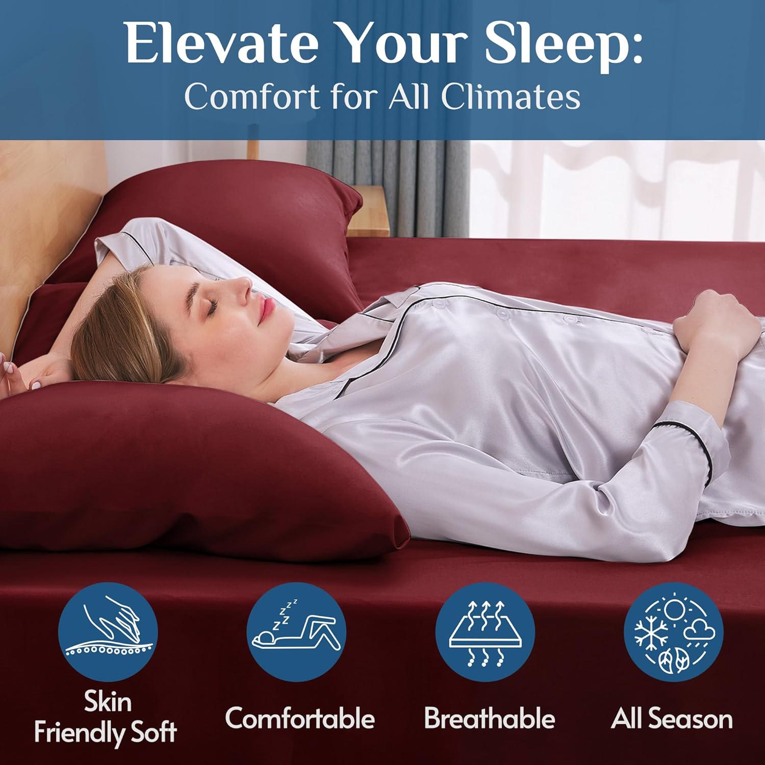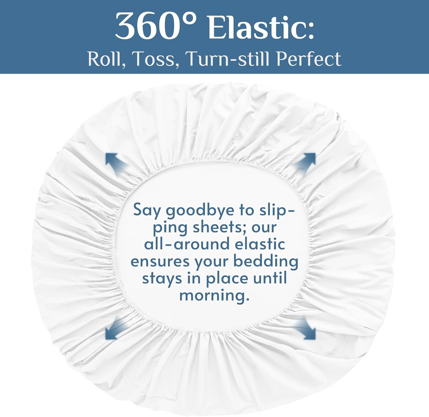- 360° Elastic For Secure Fit: Benefit from the 360° all-around elastic of our deep pocket queen sheets, designed for a steadfast fit that prevents any shifting; This feature caters to most mattresses, promising a smooth and stable sleep surface