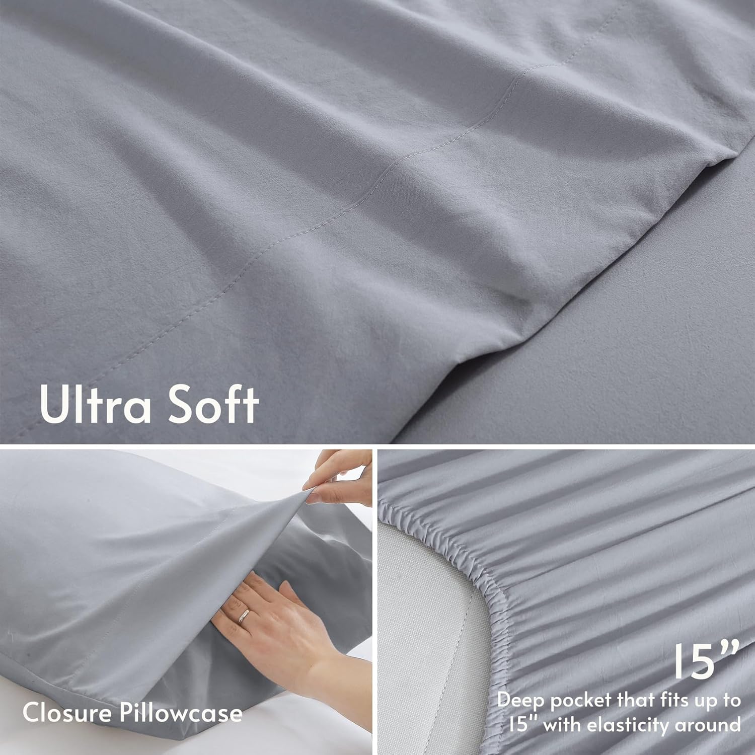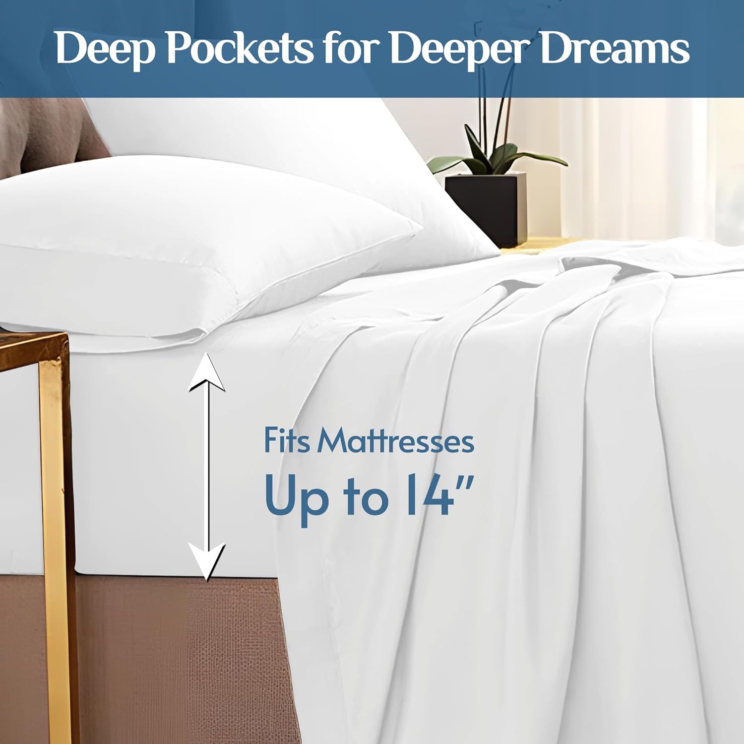- Ideal Fit with 14-Inch Deep Pockets: The bed sheet 4-piece set includes queen size fitted sheets with 14-inch deep pockets designed for a perfect fit, ensuring that the sheets are firm for a peaceful night's sleep and enhancing your sleep experience