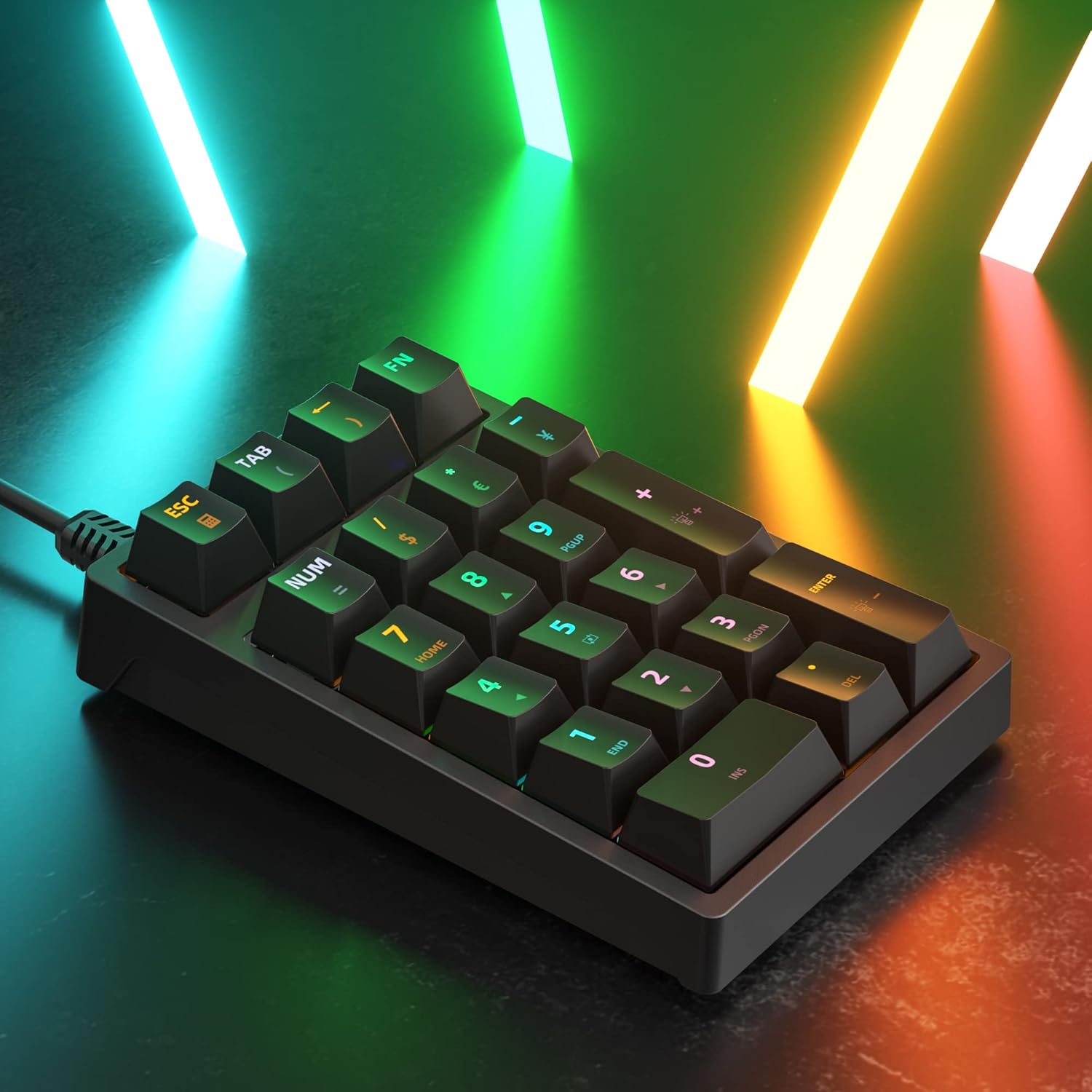 Purilite Select 21-Key Mechanical Numeric Keypad | RGB Backlit Blue Switch with Programmable Keys