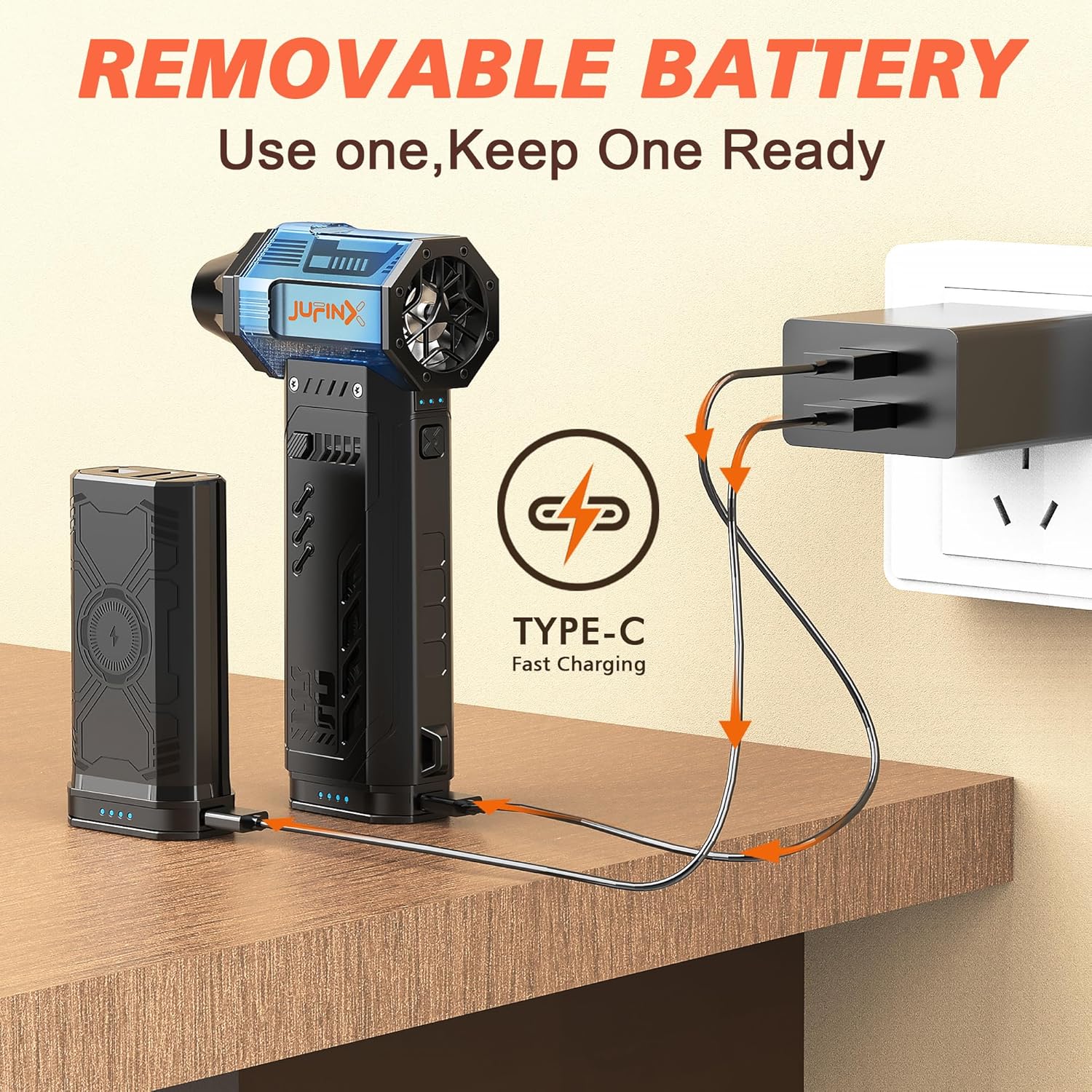 Cordless Air Duster: The JUFINX X301MAX Air duster Using a 32mm super motor,delivers impressive speeds of up to 250,000 RPM, generating a maximum wind speed of 70m/s for efficient Leaves and debris removal. With 3 adjustable speed settings, it adapts to a variety of cleaning tasks with ease.