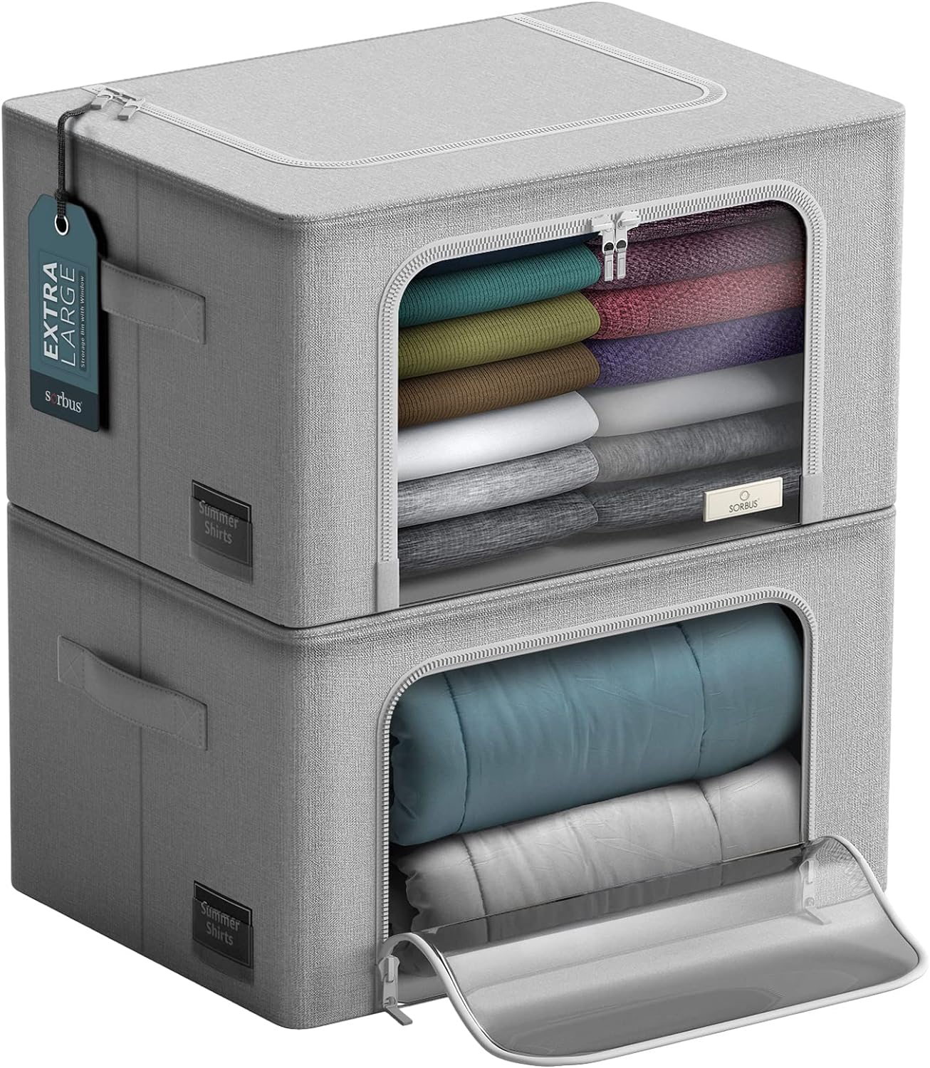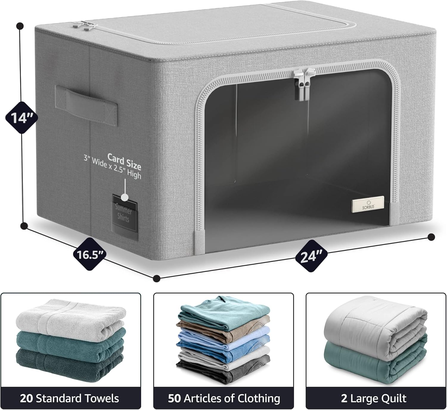 Each organizer measures 60 x 41.9 x 35.5 cm, offering a massive 24-liter capacity—perfect for bulky blankets, comforters, seasonal clothing, and more. The metal frame keeps the structure sturdy, even when stacked.