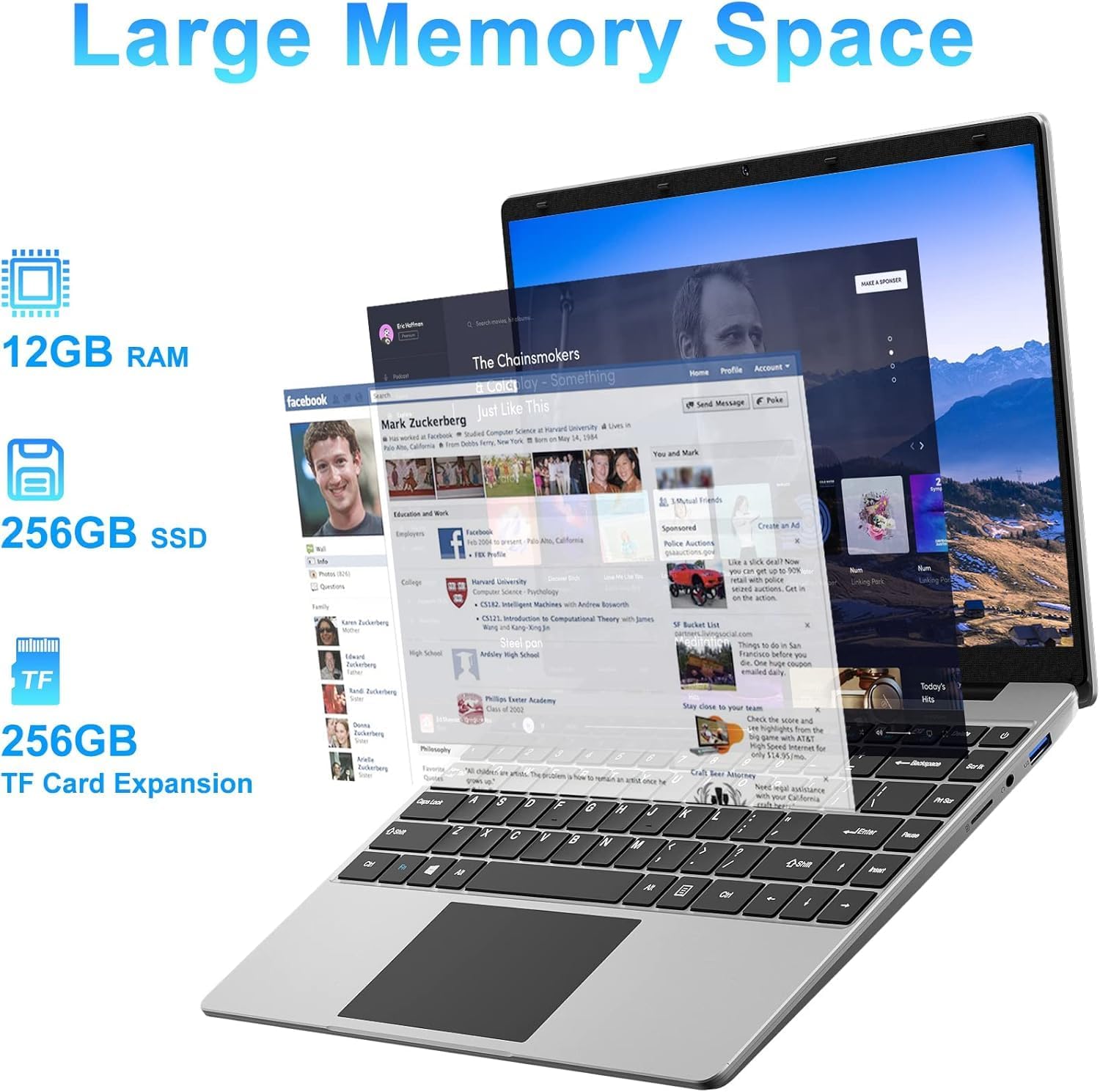 - Spacious Storage: 12GB of DDR4 RAM for easy multitasking and smooth operation, 256GB SSD for fast access to loaded data and shorter response times for loading applications, support for TF card expansion up to 256GB
