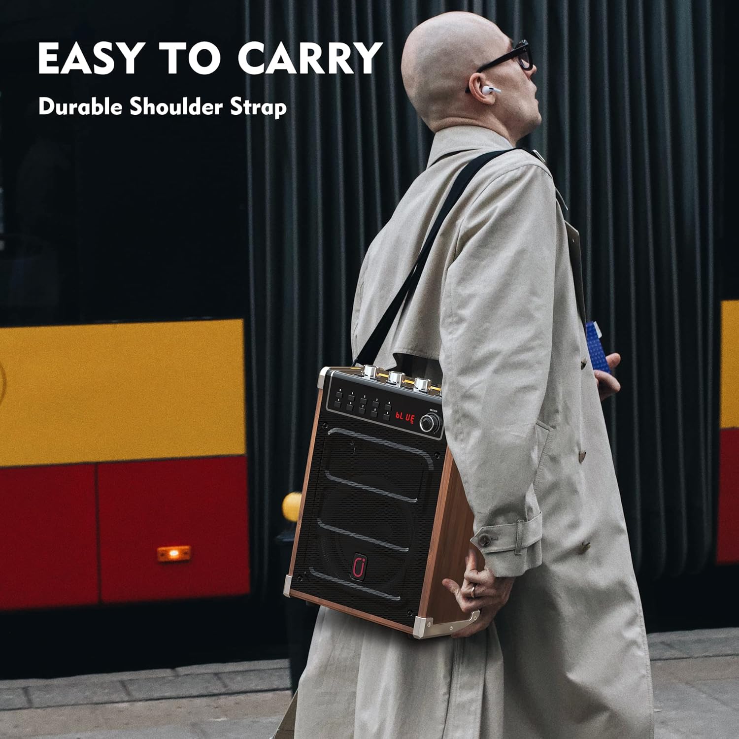- Lightweight & Large Capacity Battery: JYX party speaker shell is made of exquisite and durable solid wood/leather. It weighs 2.96 KGS and is attached to a shoulder strap. Light, portable and compact. You can easily carry it to the beach, outdoor, etc. High-performance battery (built-in 3.7V/5200mAh rechargeable large-capacity lithium-ion battery), and low power consumption, guarantee 6 to 8 hours of continuous music playtime on a full charge. (standby for 72 hours, 10 hours for normal playtime)