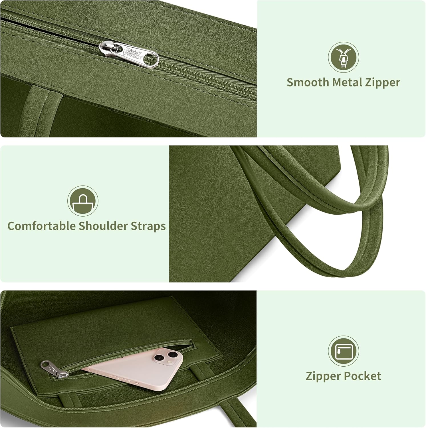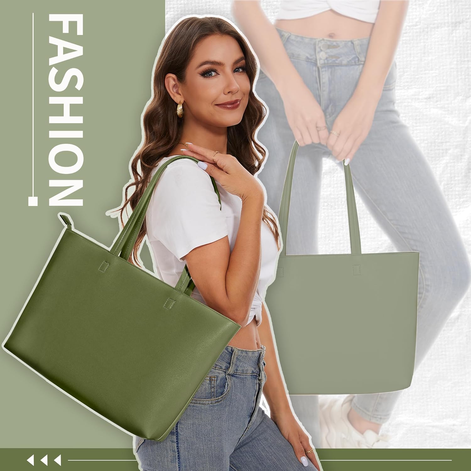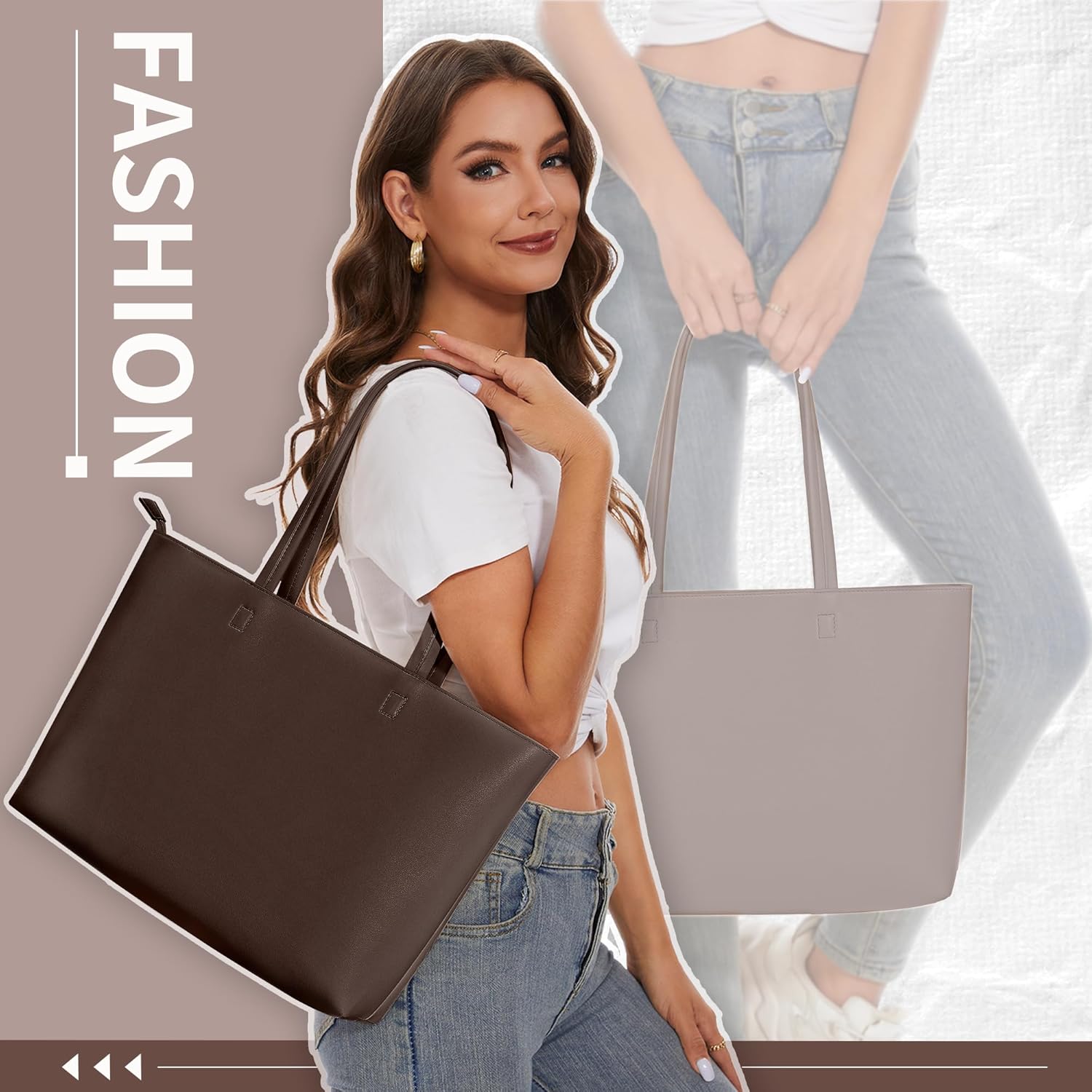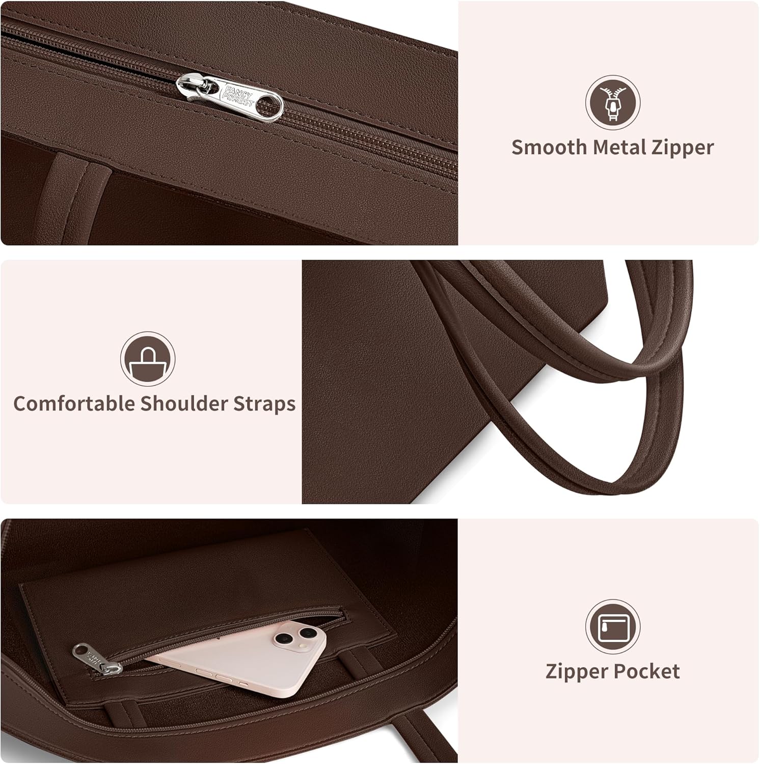 KALIDI Tote Bag Zipper Shoulder Bag Faux Leather Purses for Women Large Casual Handbag Work Dating College