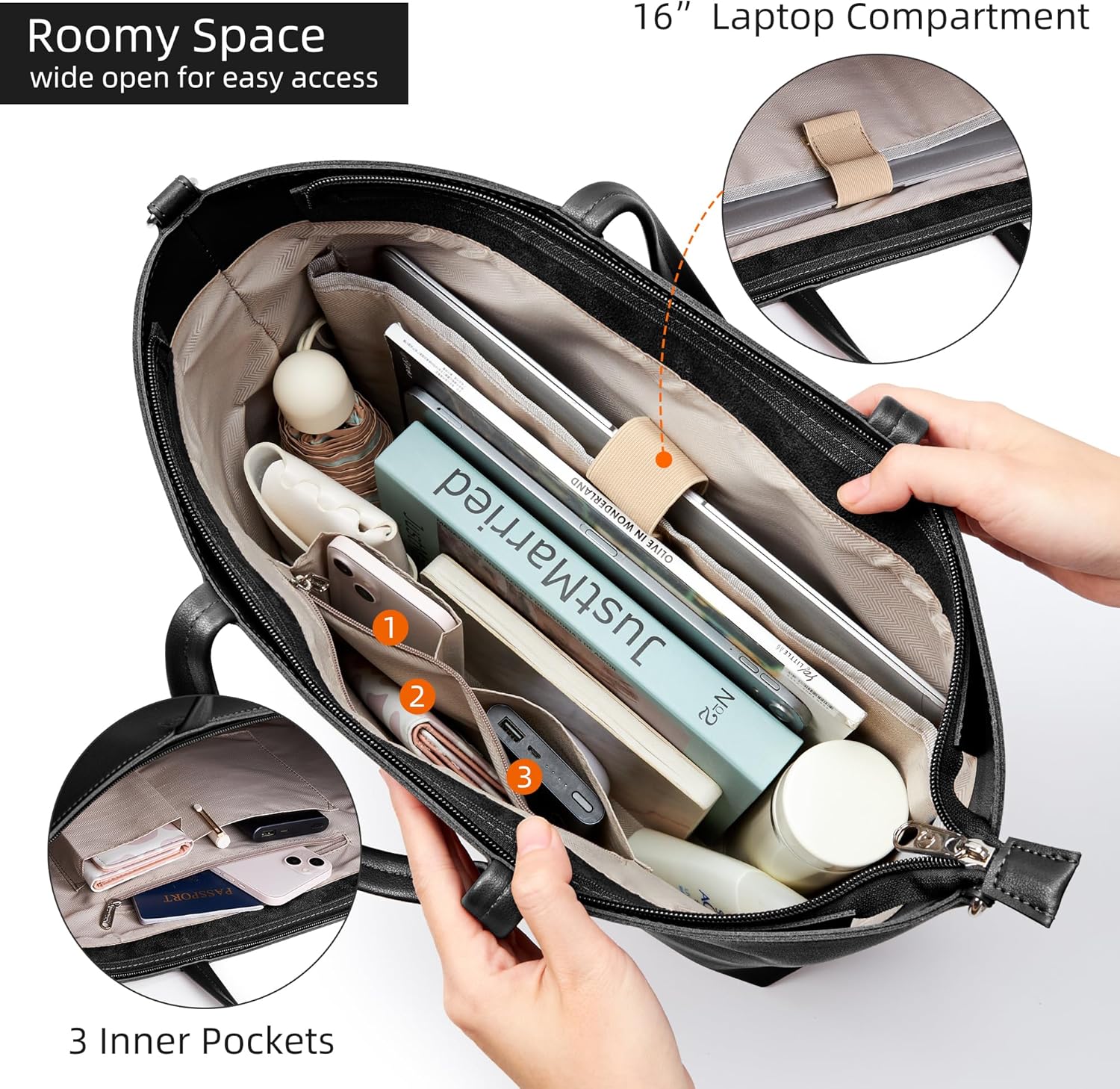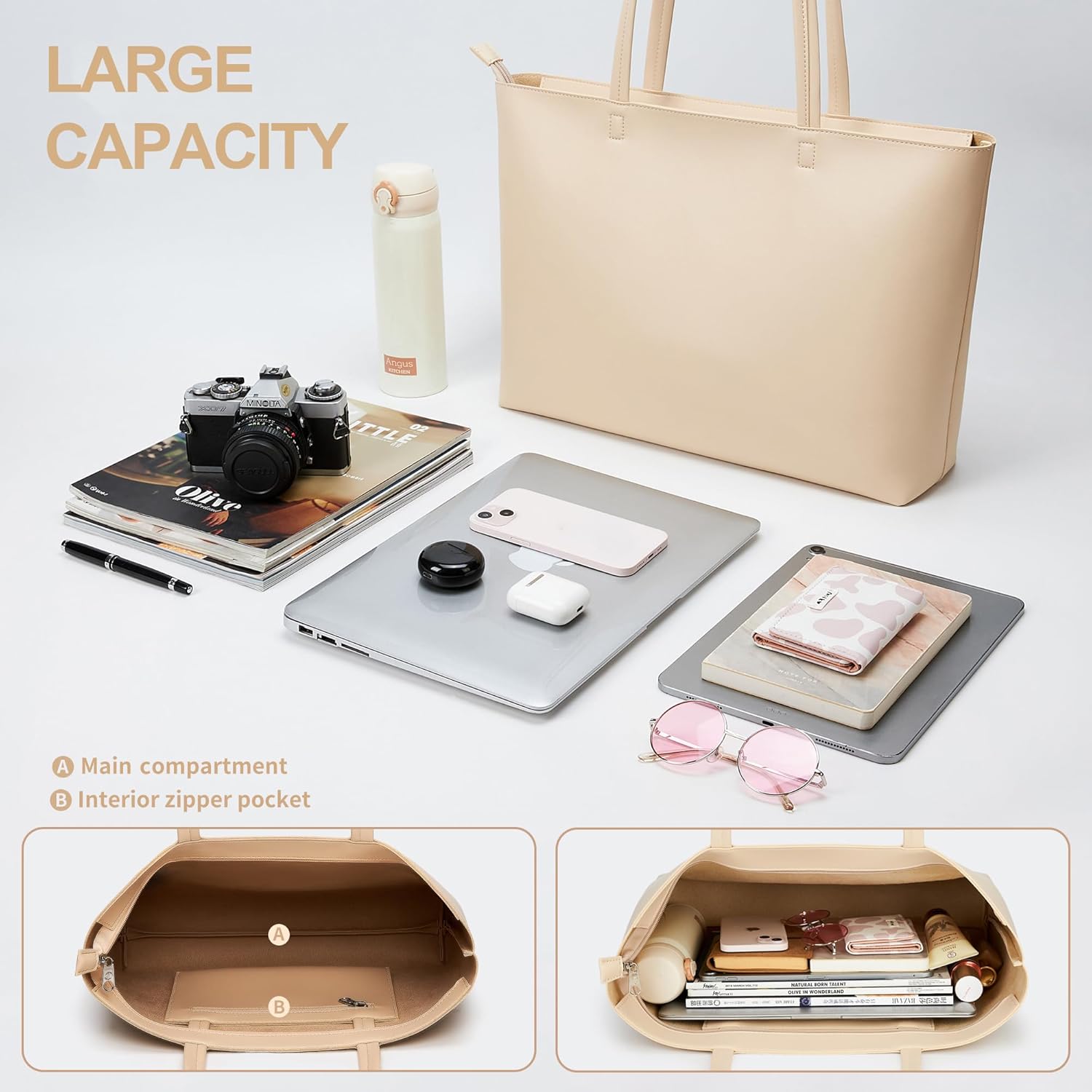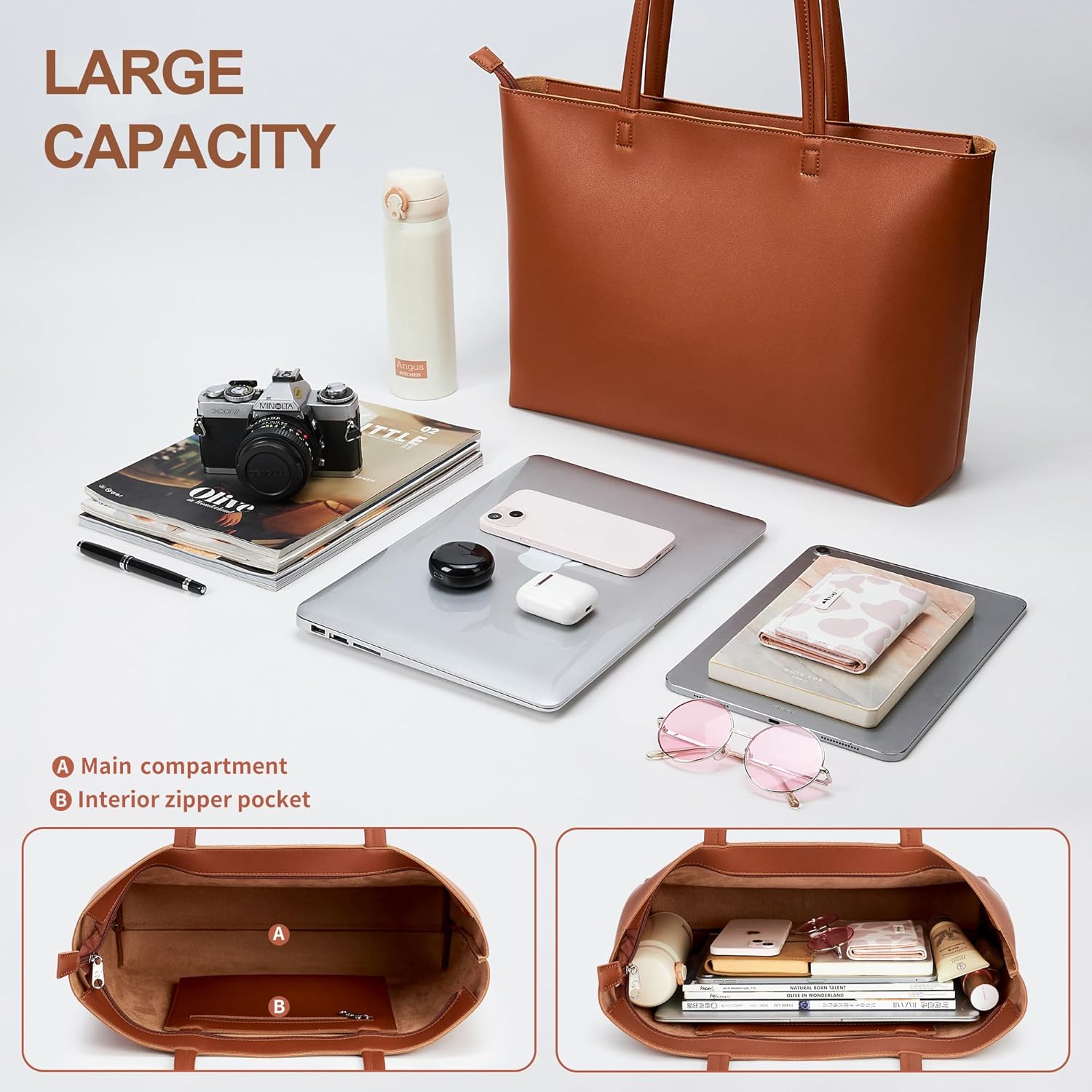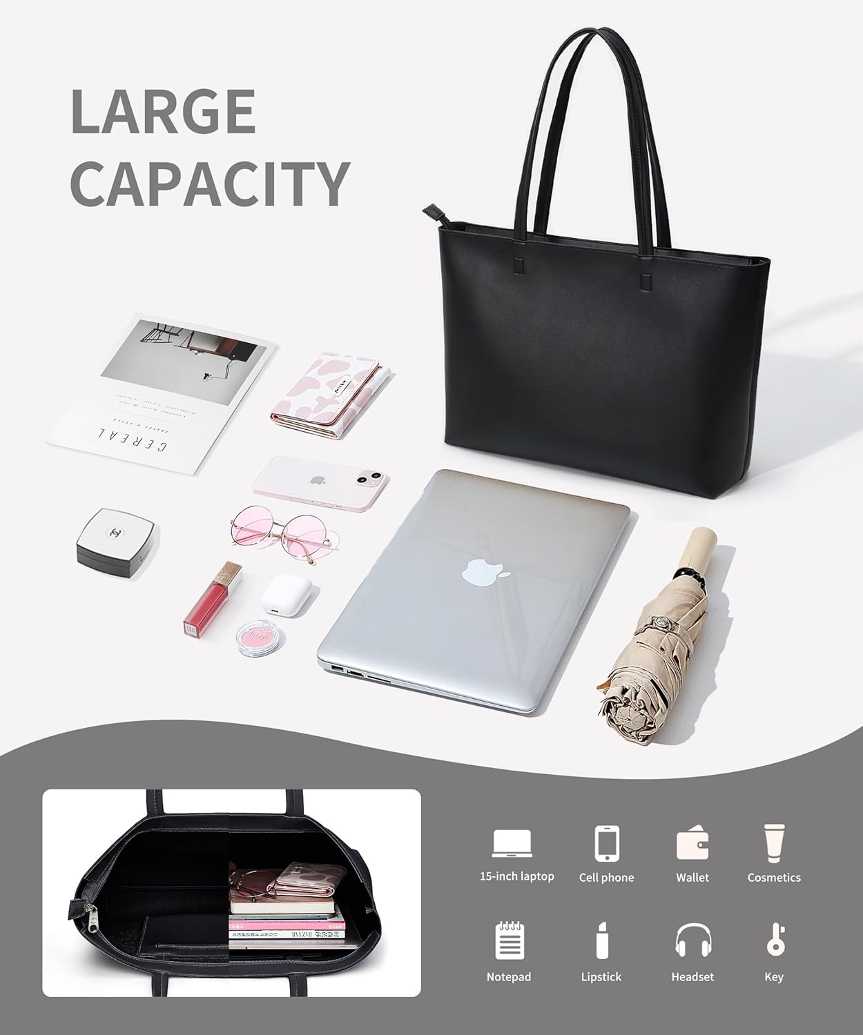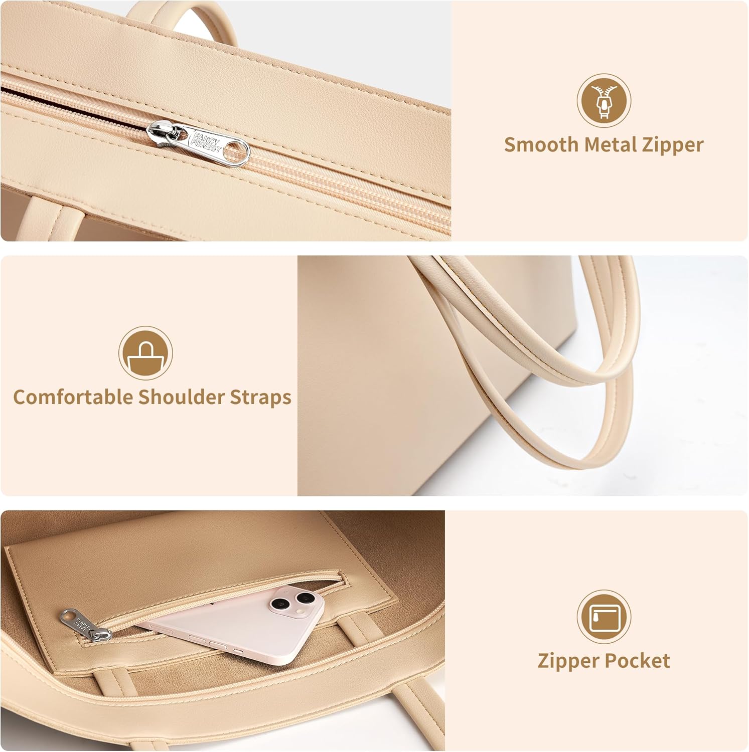 KALIDI Tote Bag Zipper Shoulder Bag Faux Leather Purses for Women Large Casual Handbag Work Dating College