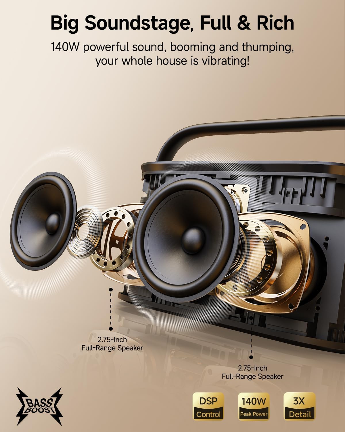 - Superior Sound Quality - Immerse yourself in music with our powerful 280W 2.2-channel stereo speakers, featuring dual 3.5-inch woofers and dual 1-inch tweeters. The tweeters are angled at 15° to project sound upwards, filling the room with rich, full-bodied stereo sound. Ideal for indoor parties or outdoor events, this professional karaoke machine doubles as a wireless partyspeaker, delivering a captivating audio experience