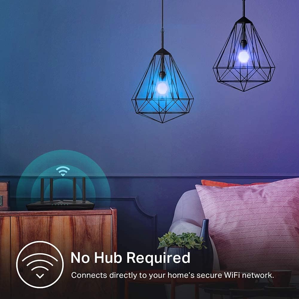 Kasa Smart Light Bulbs, Full Colour Changing Dimmable Smart WiFi Bulbs Compatible with Alexa and Google Home, A19, 9W 800 Lumens,2.4Ghz only, No Hub Required, 2-Pack (KL125P2), Multicolour
