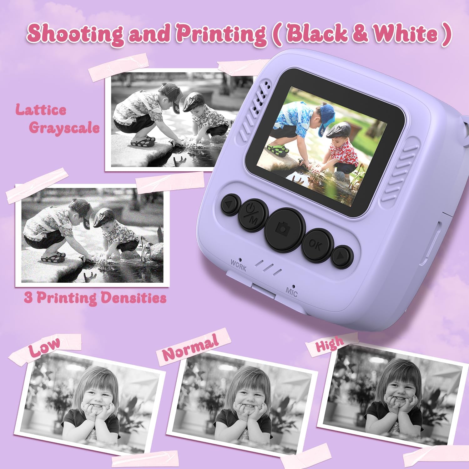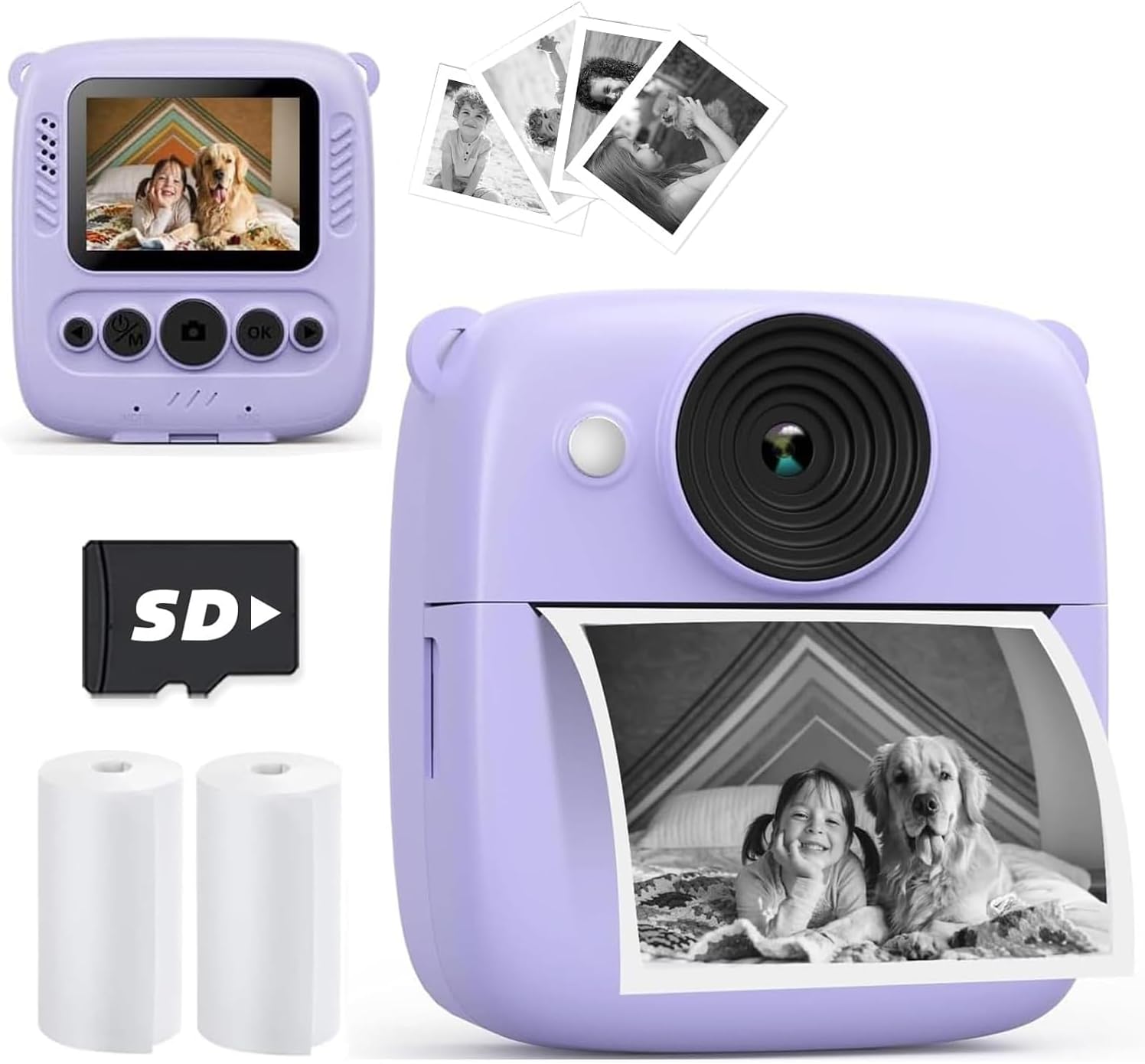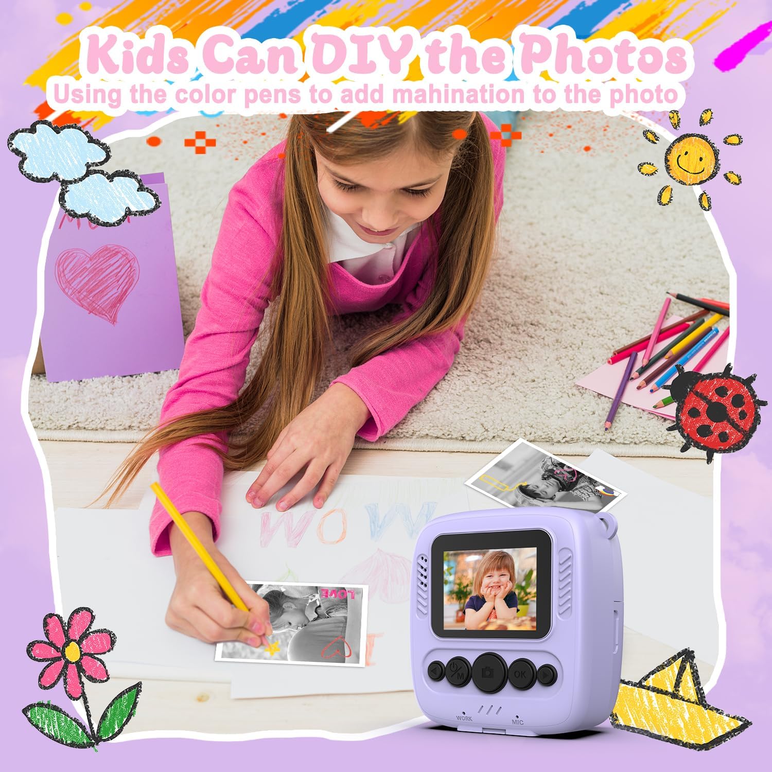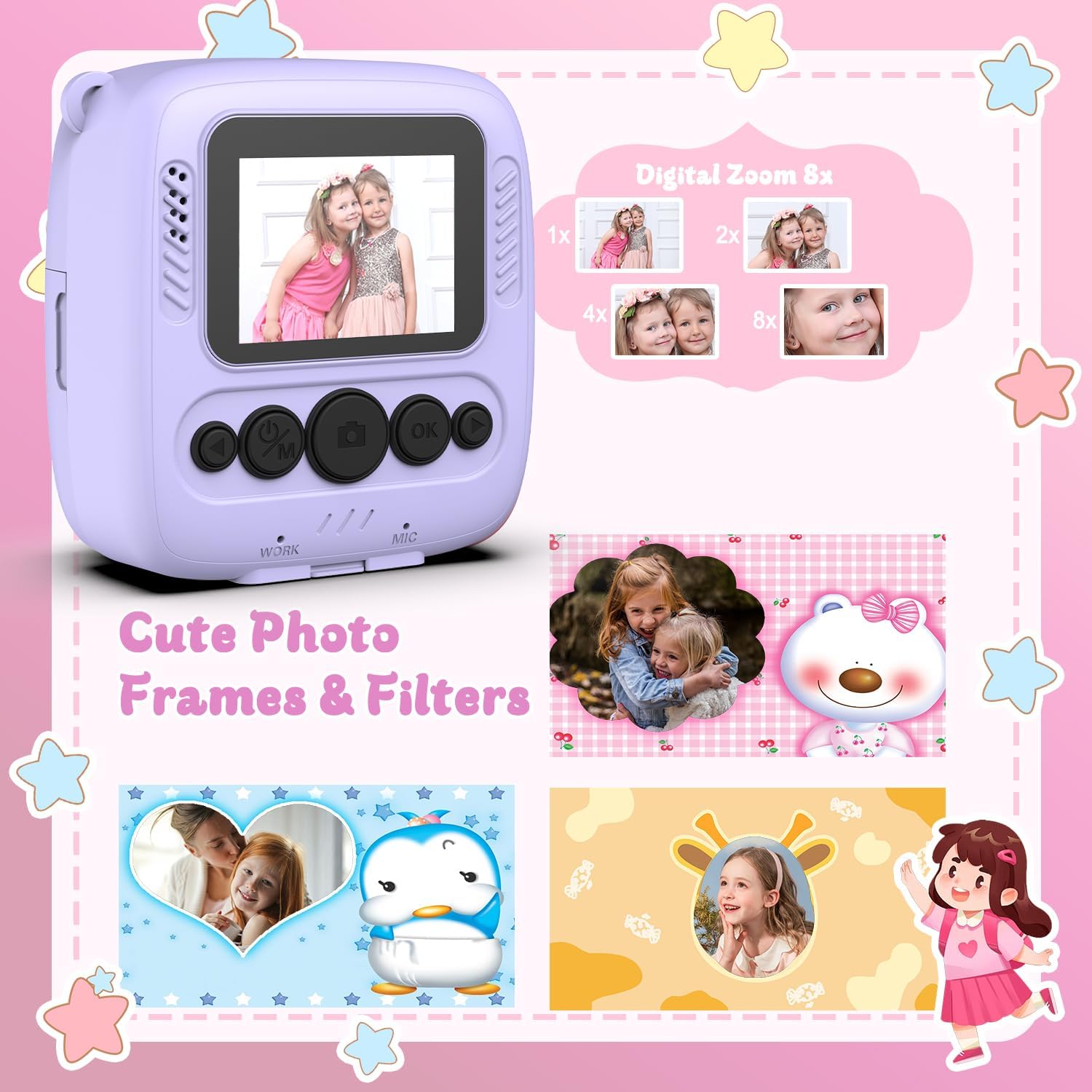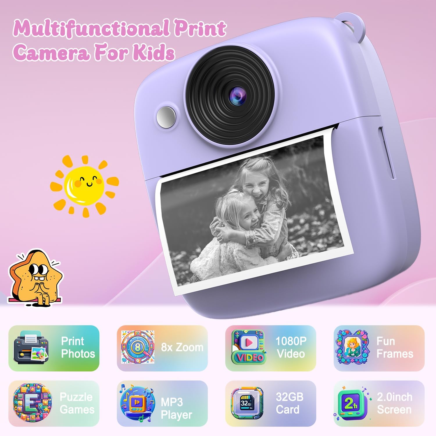 Kids Camera Instant Print, Christmas Birthday Gifts for Kids Age 3-8, 1080P Digital Camera with 32GB Card, Toddler Portable Travel Camera Toys for 4 5 6 7 8 9 10 Year Old Girls Boys Purple