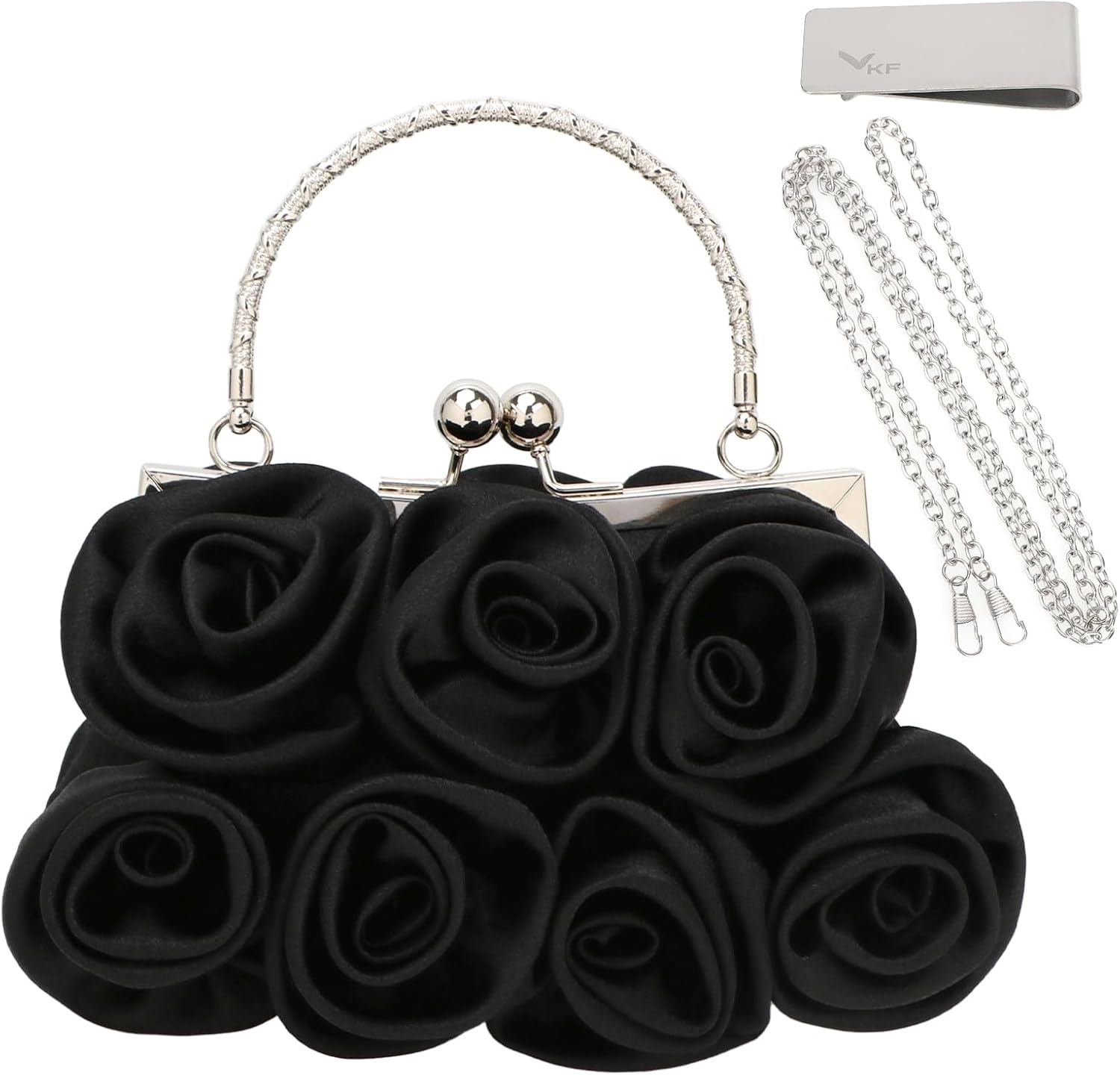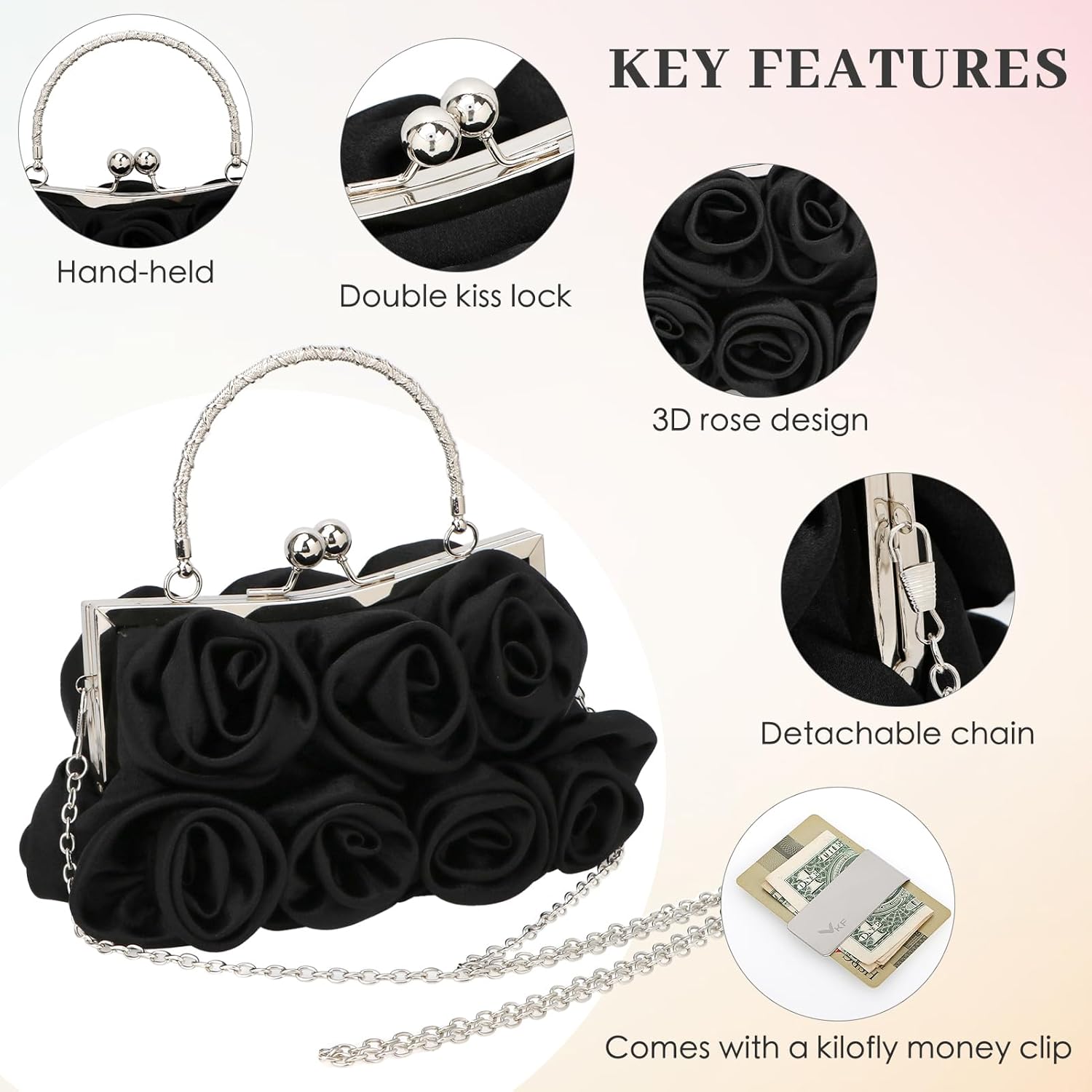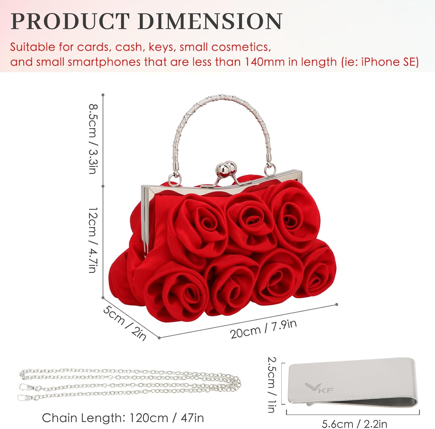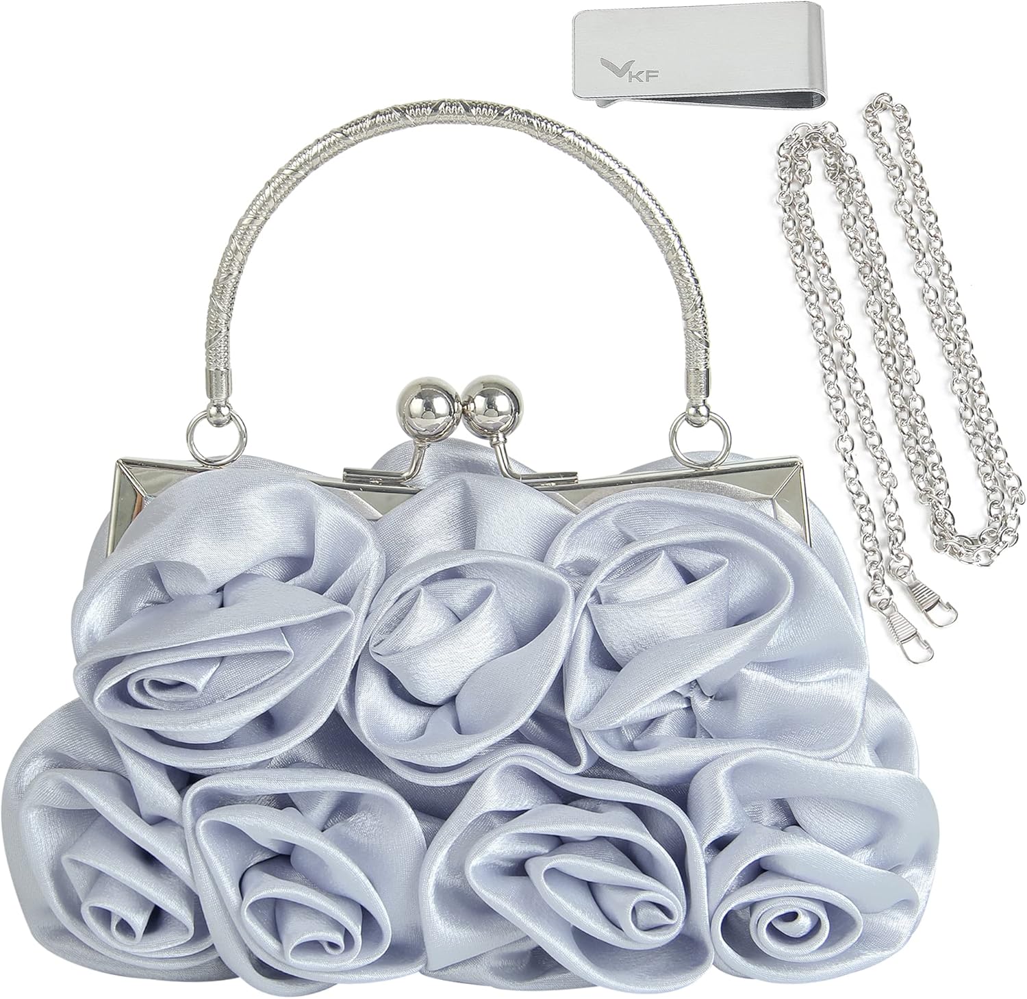 kilofly Missy K 7 Roses Clutch Purse, Satin, with Detachable Strap + kilofly Money Clip