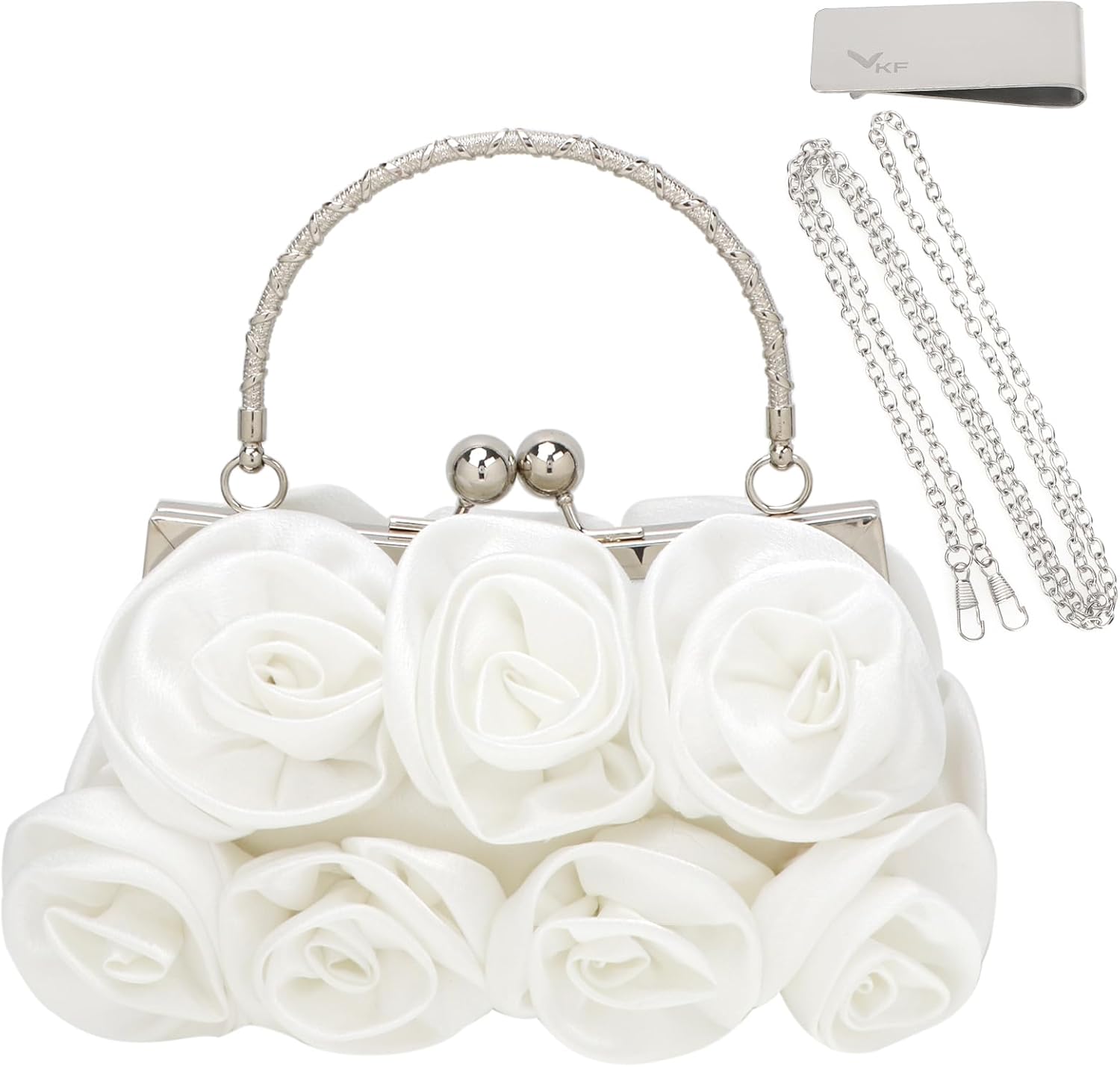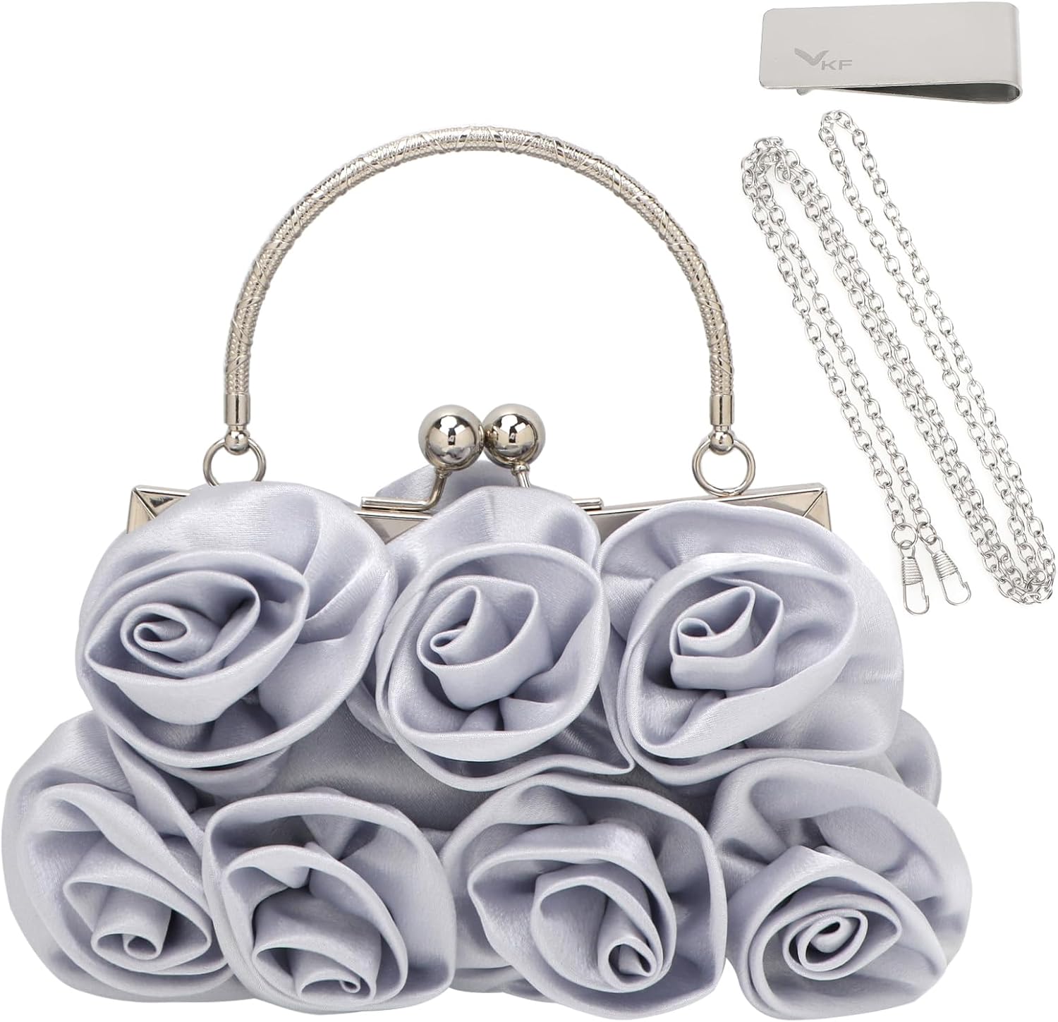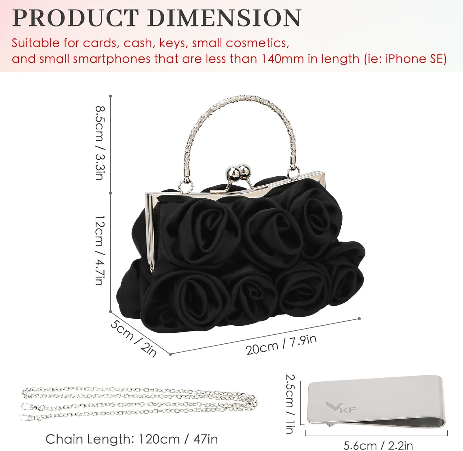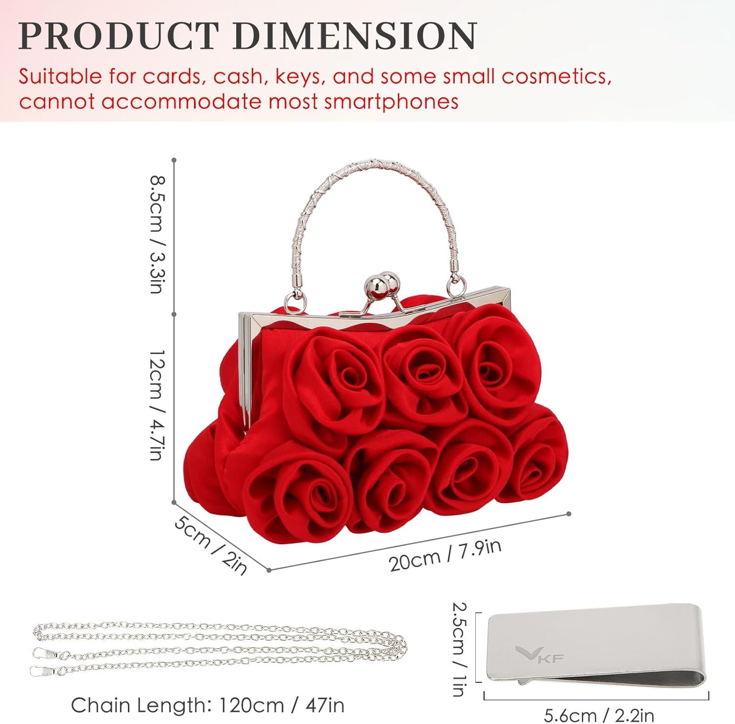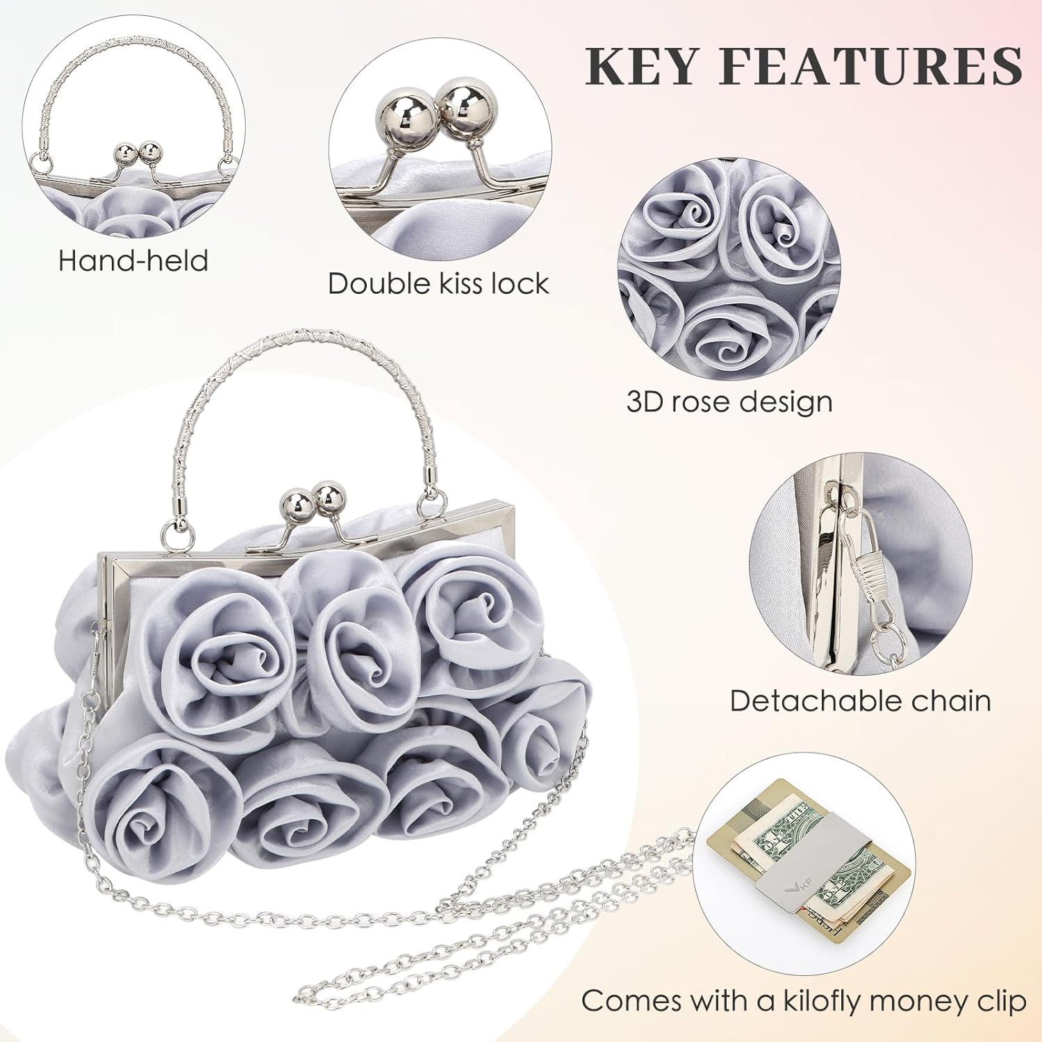 kilofly Missy K 7 Roses Clutch Purse, Satin, with Detachable Strap + kilofly Money Clip