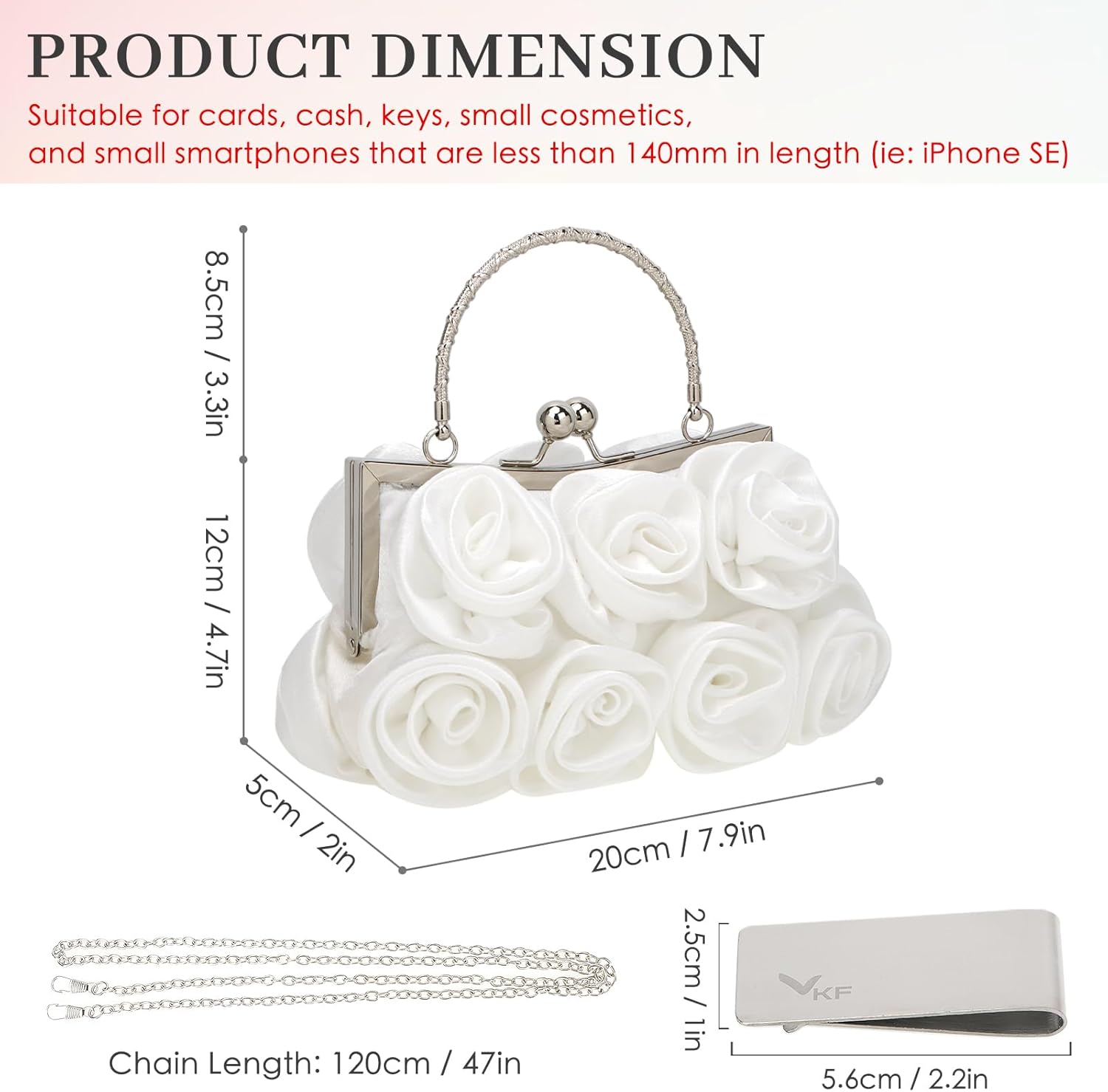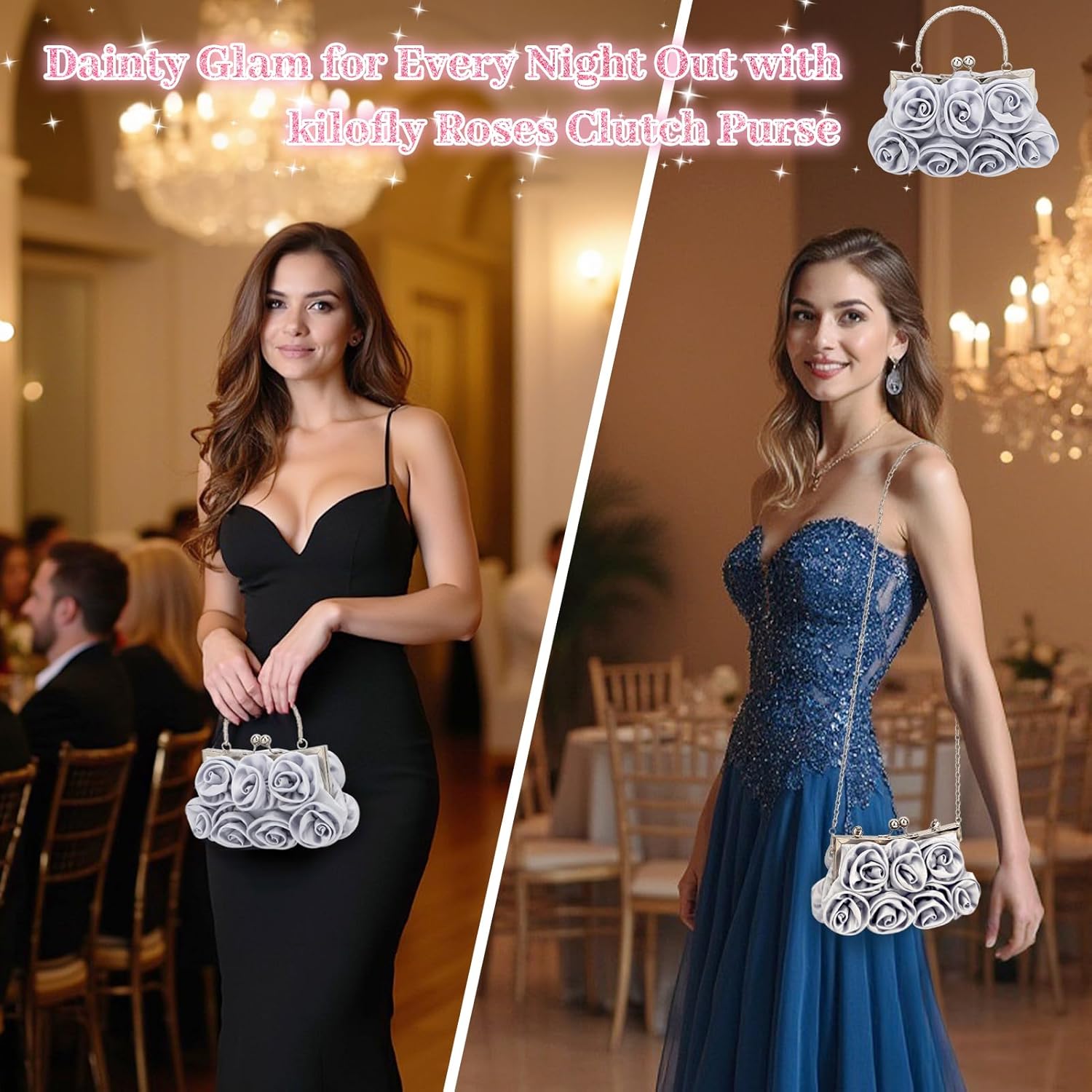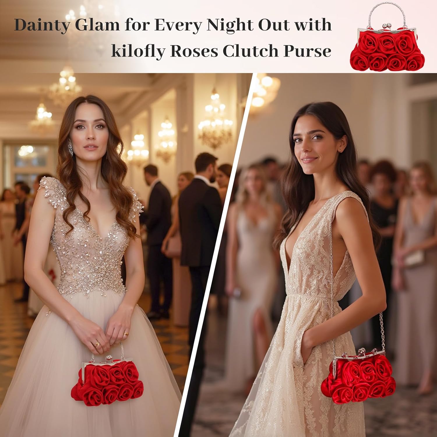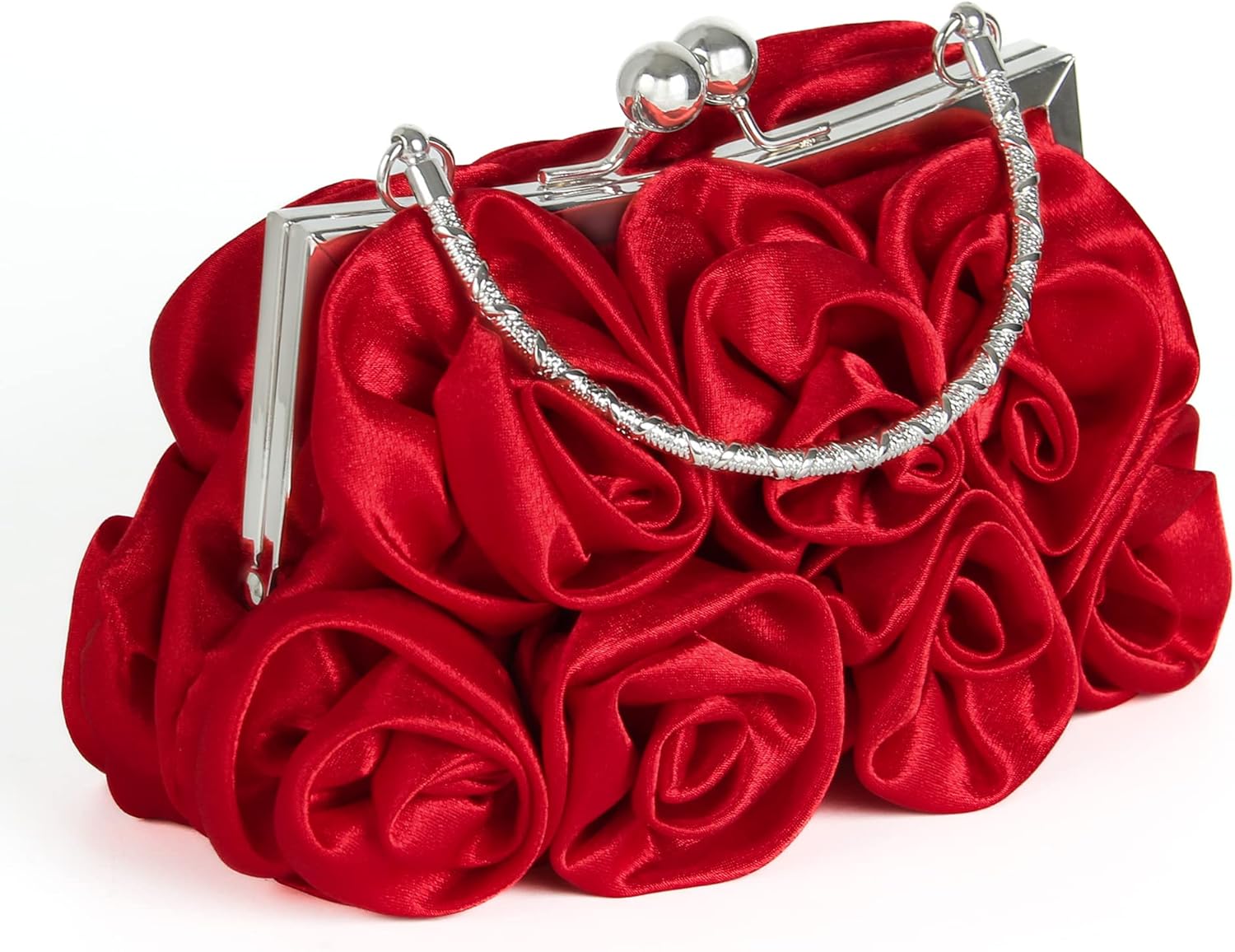 kilofly Missy K 7 Roses Clutch Purse, Satin, with Detachable Strap + kilofly Money Clip