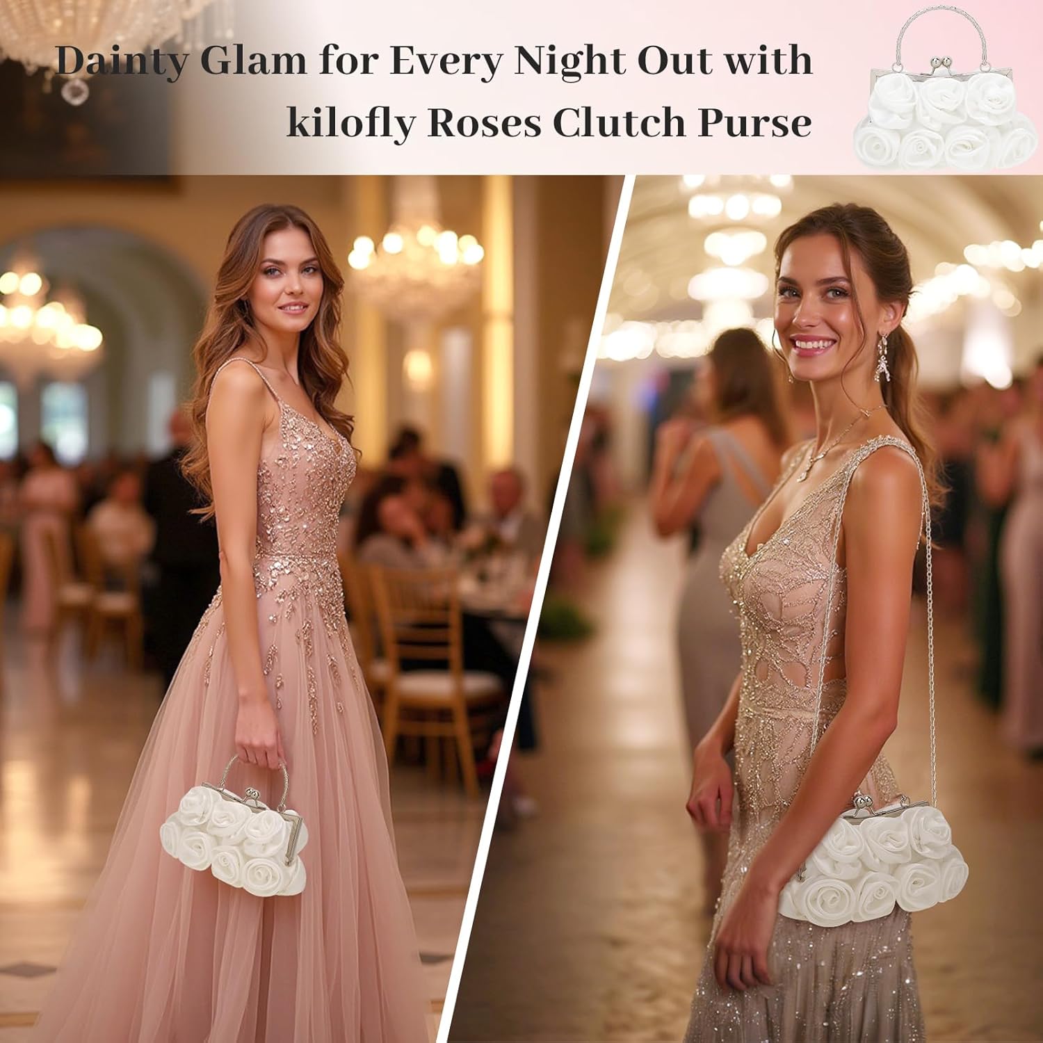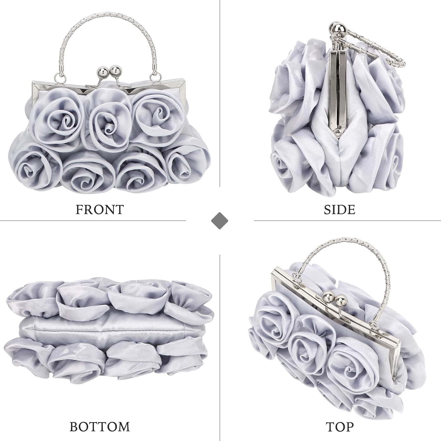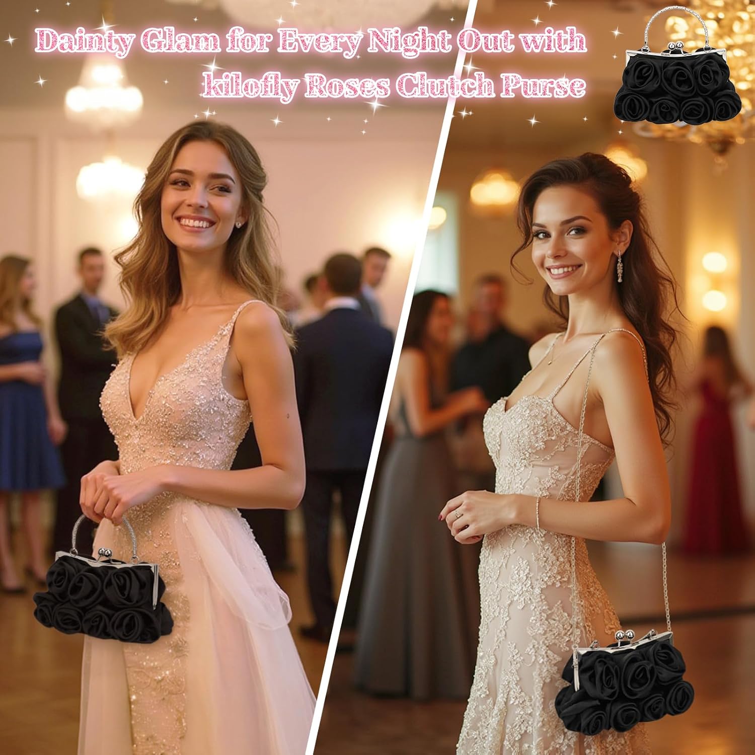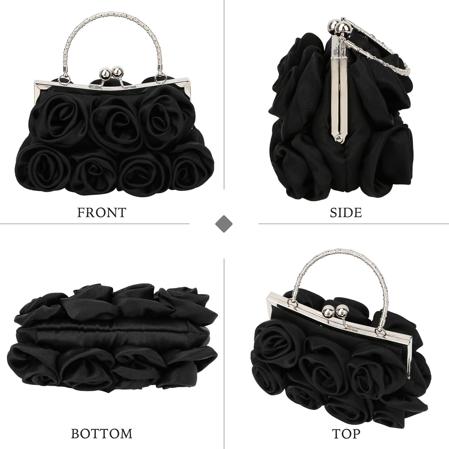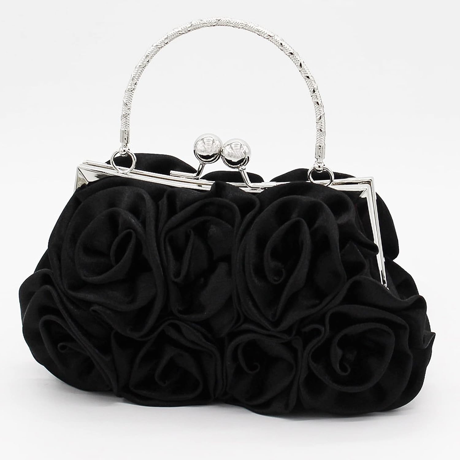 kilofly Missy K 7 Roses Clutch Purse, Satin, with Detachable Strap + kilofly Money Clip