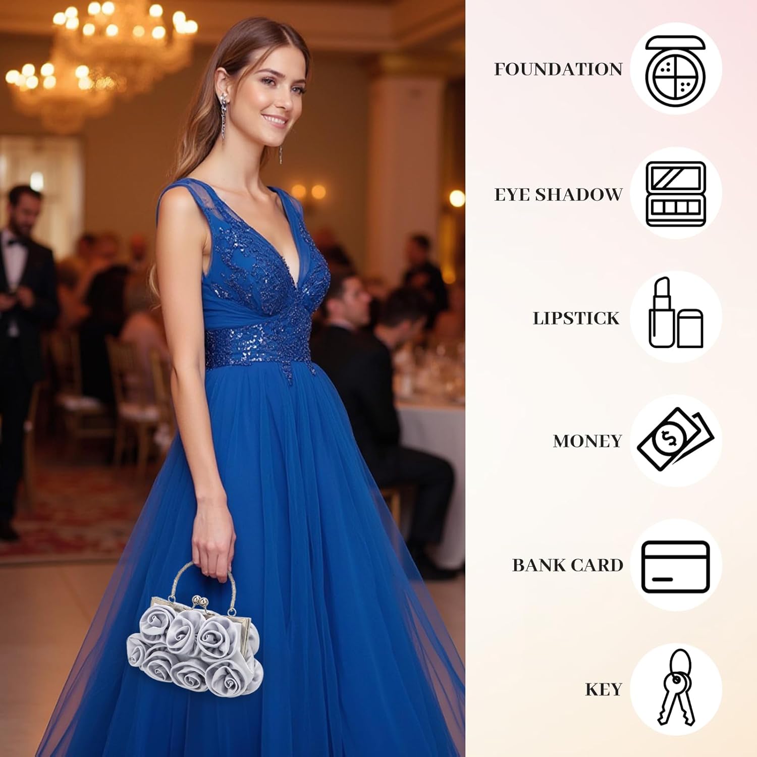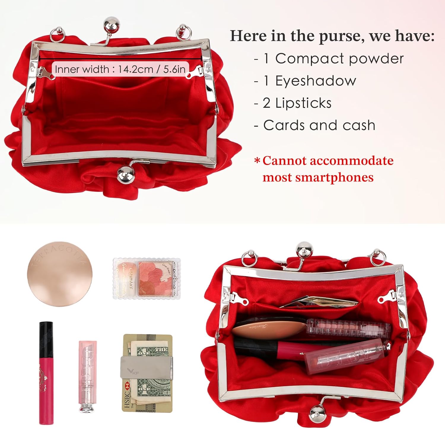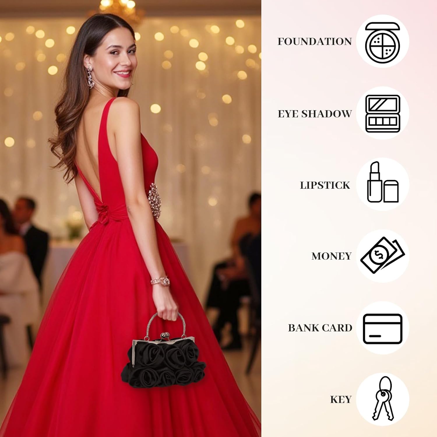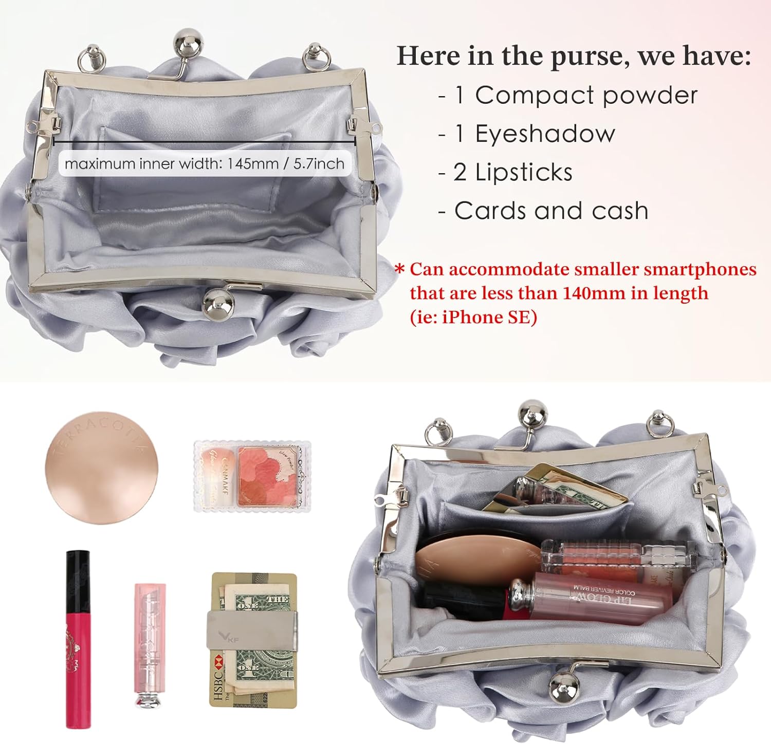 kilofly Missy K 7 Roses Clutch Purse, Satin, with Detachable Strap + kilofly Money Clip
