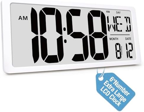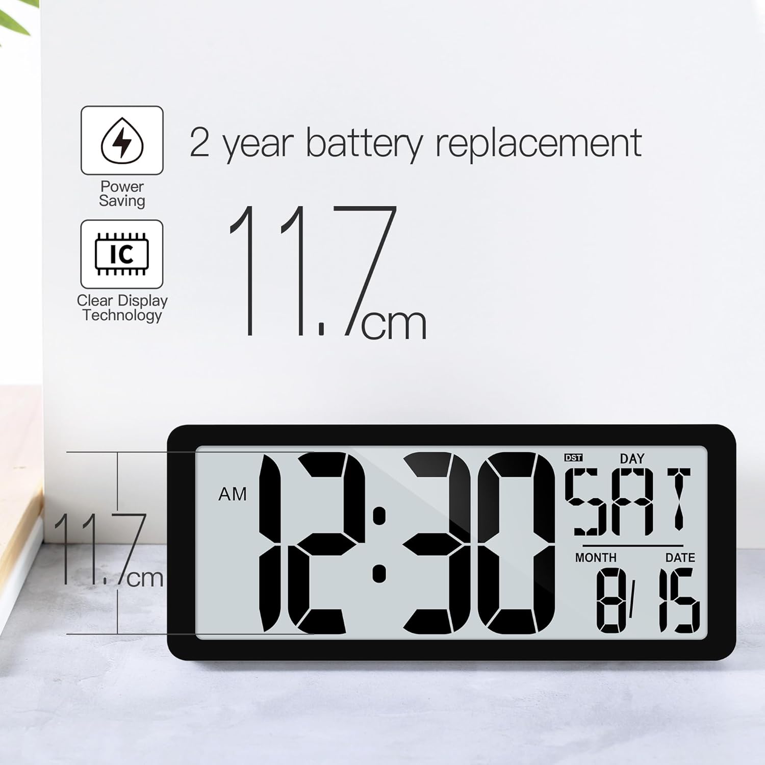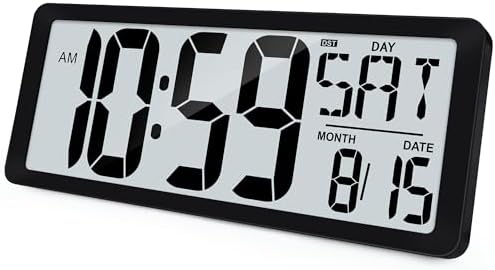 KMMKGG 15" Large Digital Wall Clock Battery Operated, Digital Clock Display with Day, Date & Temperature, Large Wall Clock for Bedroom, Livingroom, Office(4.6" Numbers)