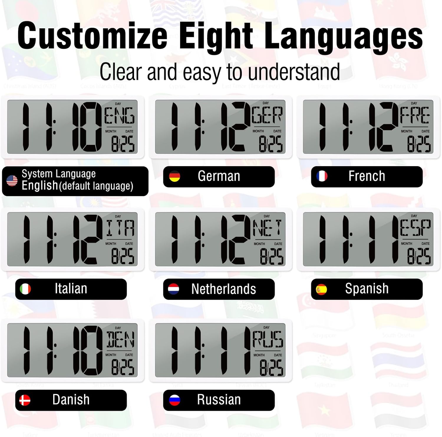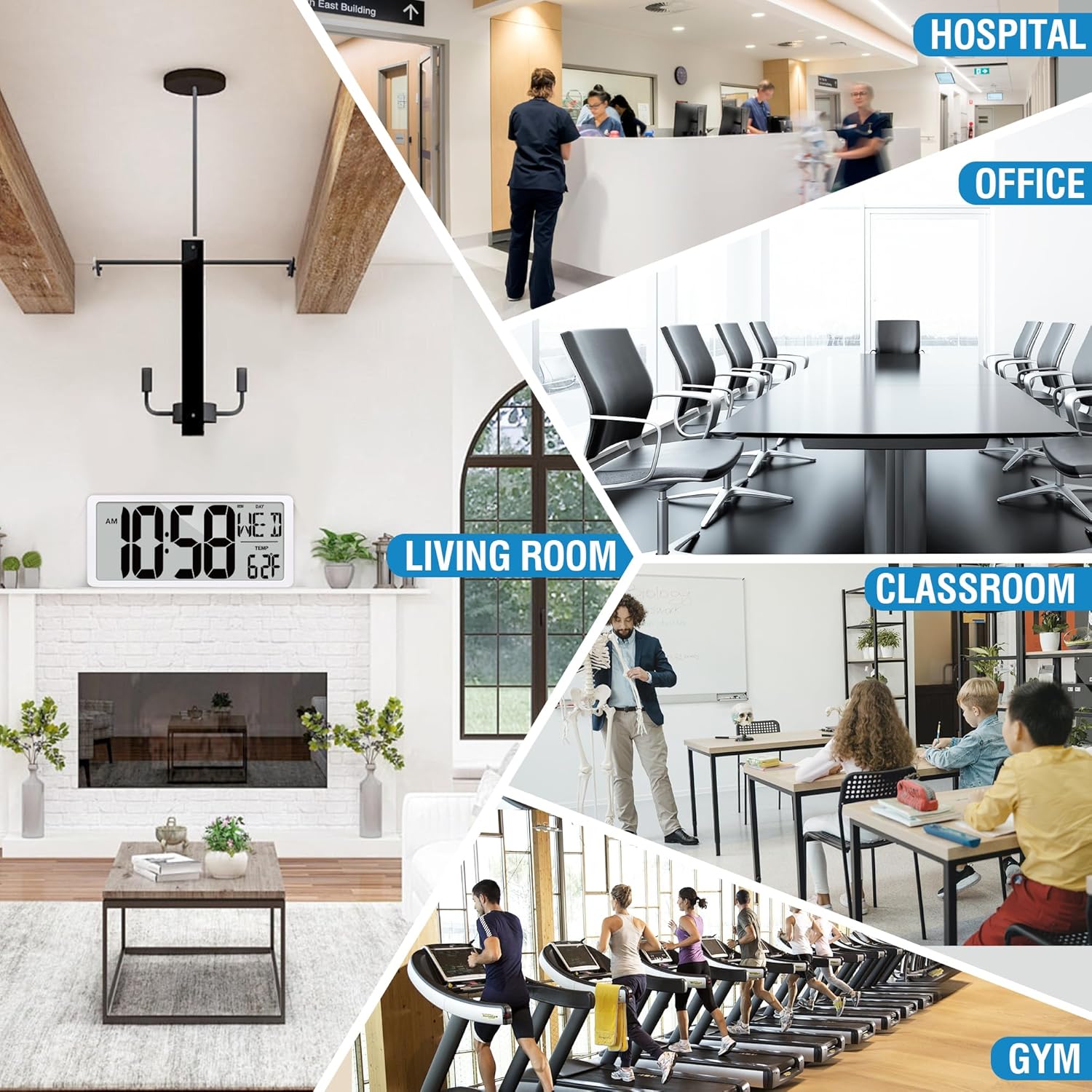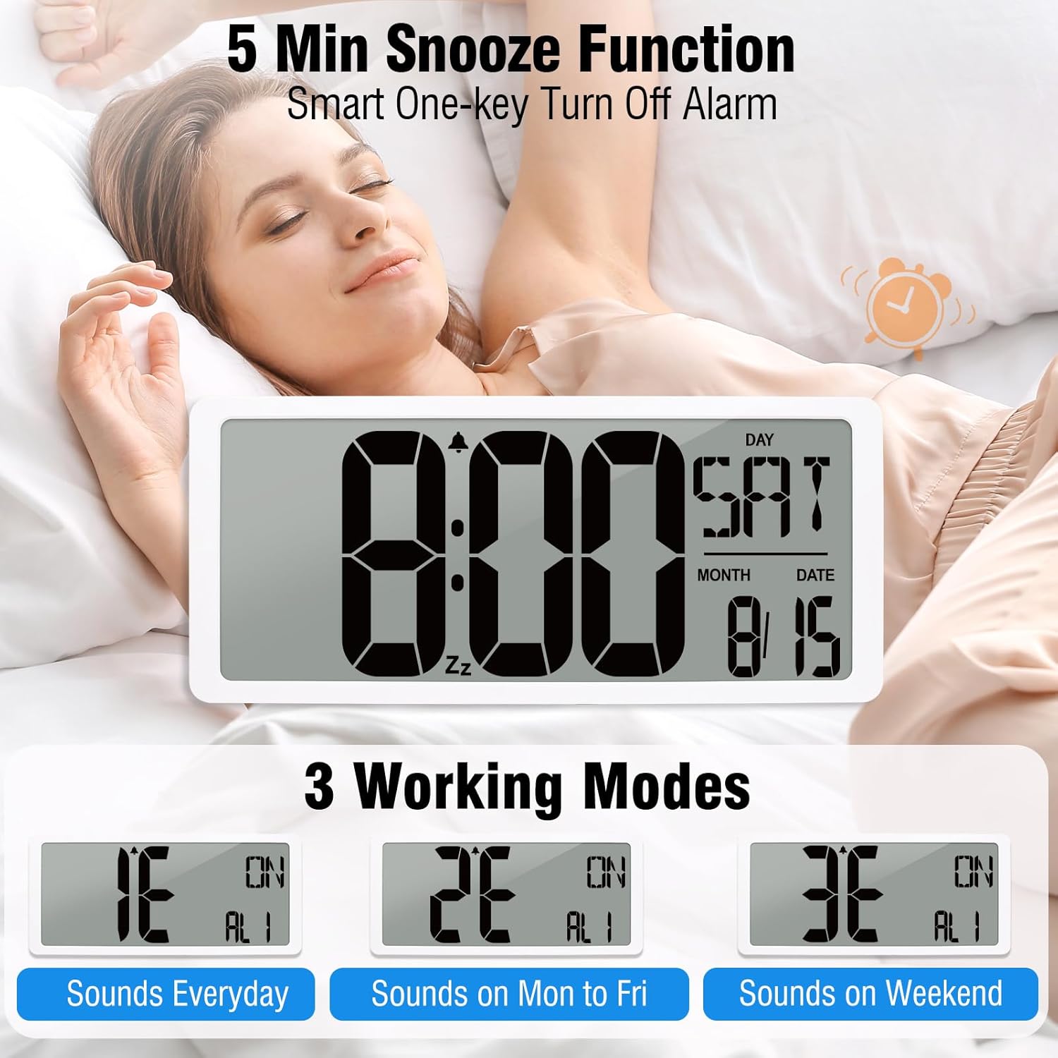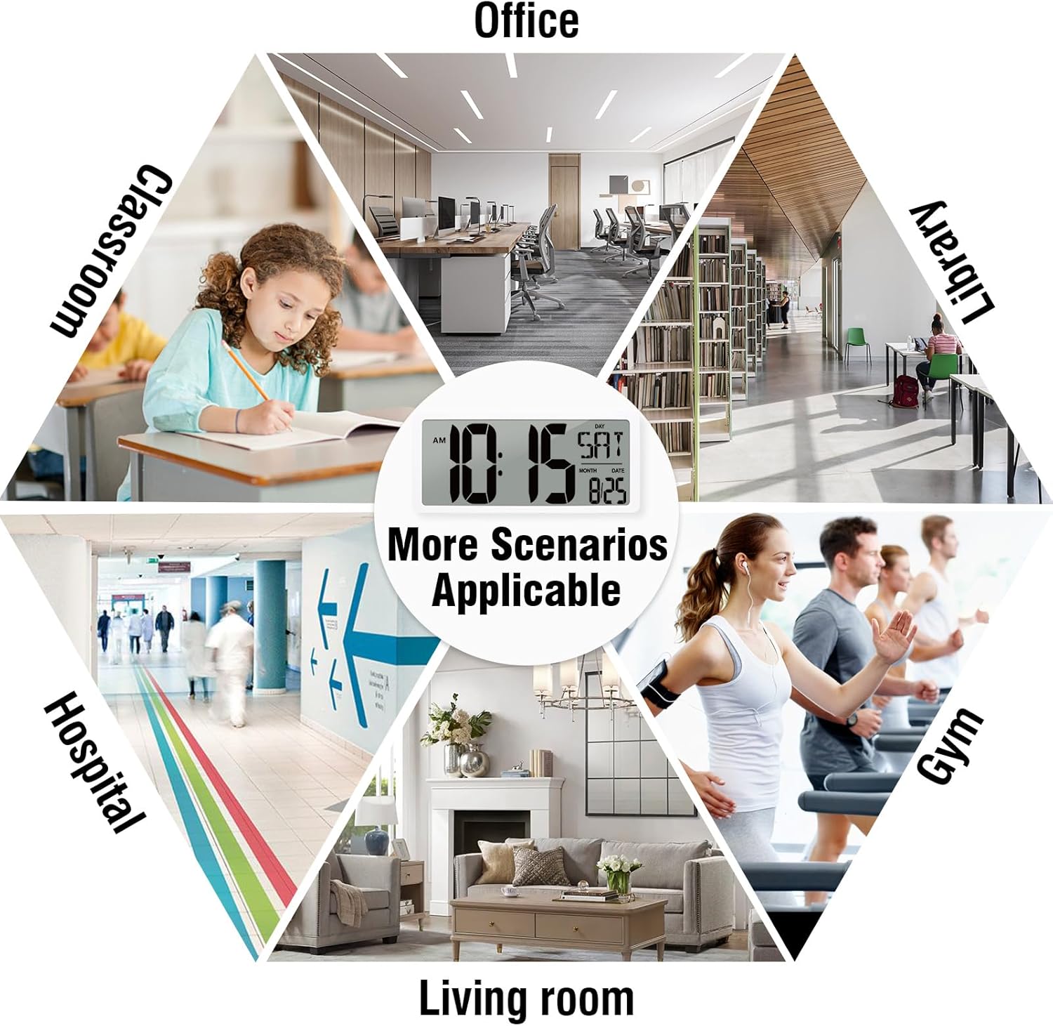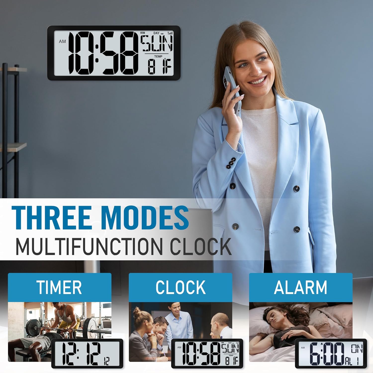 KMMKGG 15" Large Digital Wall Clock Battery Operated, Digital Clock Large Display with Day, Date & Temperature, Large Wall Clock for Bedroom, Livingroom, Office,Battery Included