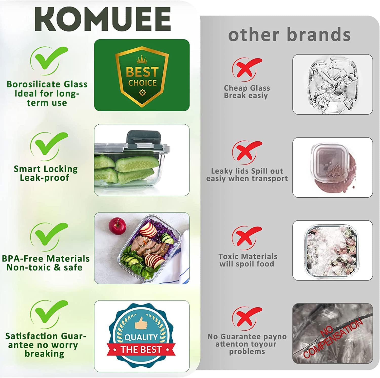 Airtight, Leakproof, Microwave, Oven, Freezer & Dishwasher Safe – BPA-Free, Food-Grade Glass – Gray