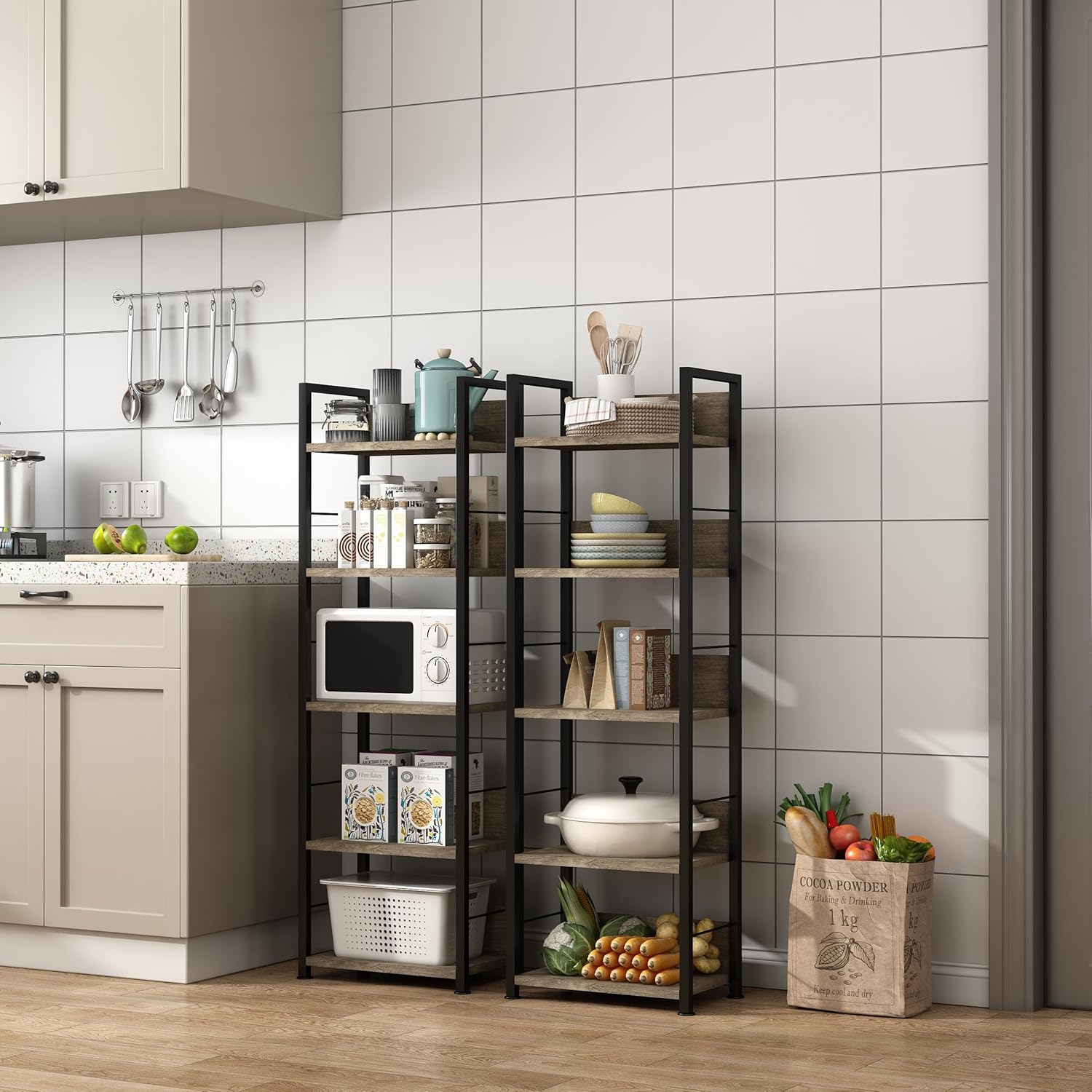 【Thoughtful Features】Each leg of this kitchen shelf is equipped with a plastic bottom pad to prevent scratches and damage to the floor, ensuring long-term use. In addition, each tall bookshelf can bear 50 pounds, so you can store most of your necessities with confidence.