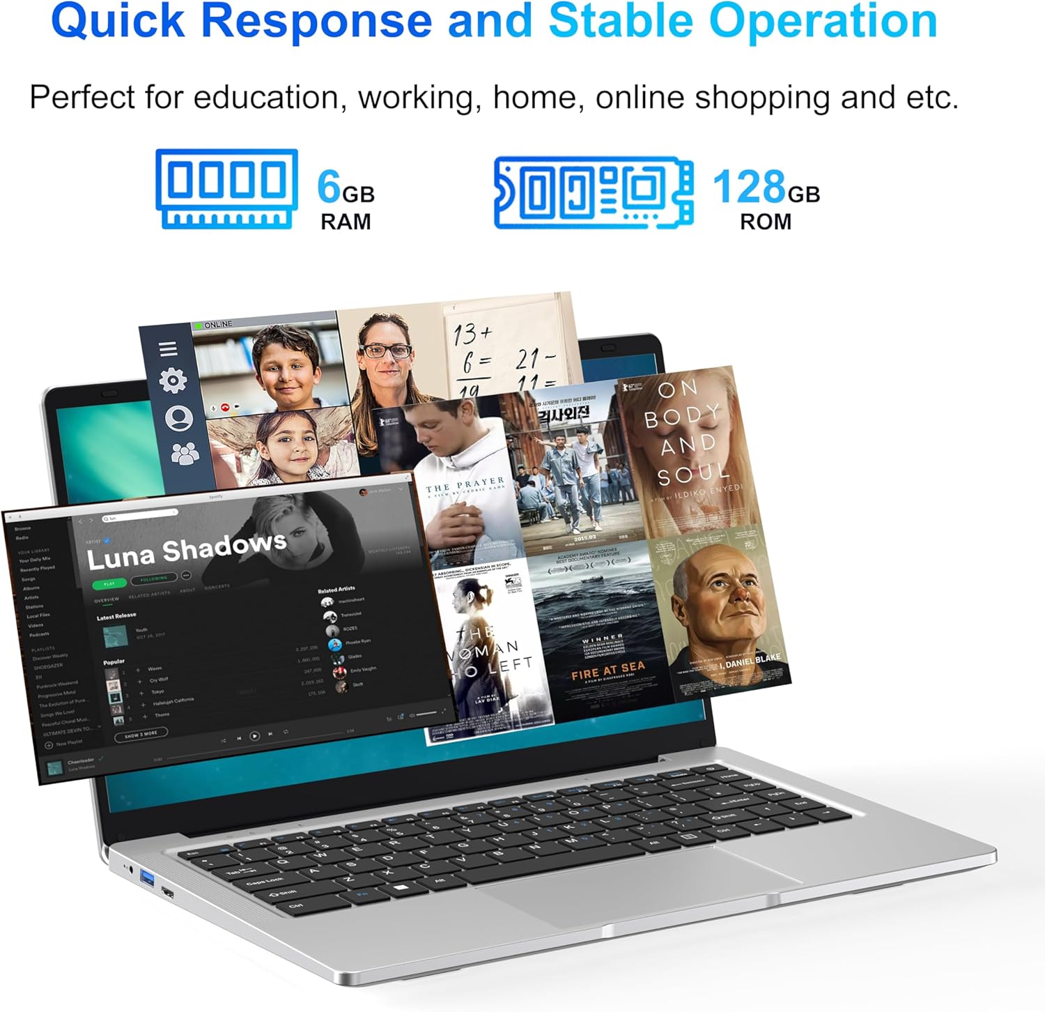 - 6GB RAM+128GB SSD: This laptop computer equipped with 6GB system memory for basic multitasking. Adequate bandwidth RAM to smoothly run multiple applications and browser tabs all at once. The 128GB SSD (expansion up to 1TB), saving important documents is made simple. Suitable for school, business, and home use.