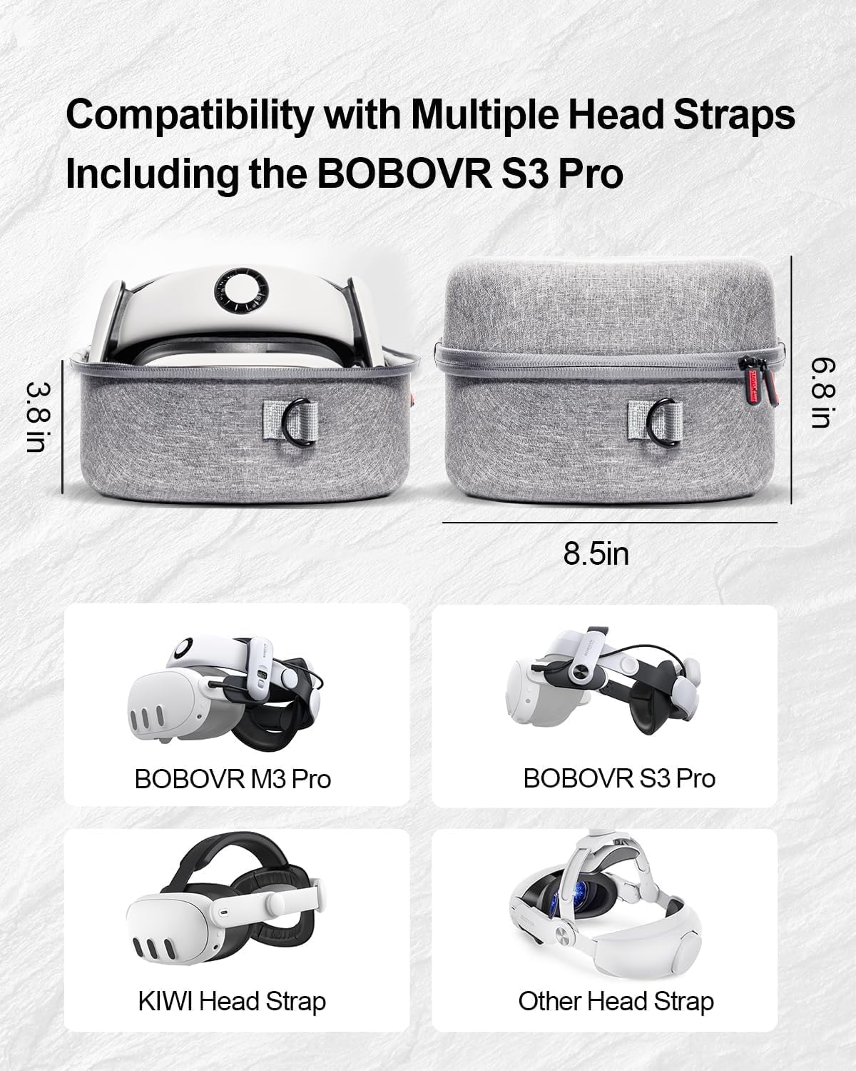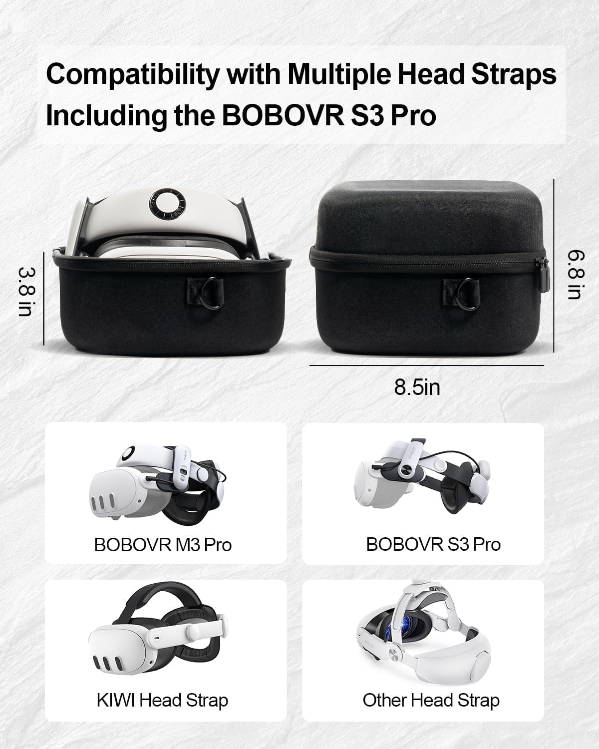 - 【Custom Case Fit for Meta Quest 3S/Quest 3】: This carrying case is specially designed for Meta Quest 3S/Quest 3 VR headset and other accessories.Compatible with all third-party head straps, fit BOBOVR S3 Pro and Kiwi Design battery head strap,it provides sleek,space-efficient storage for your VR gear.