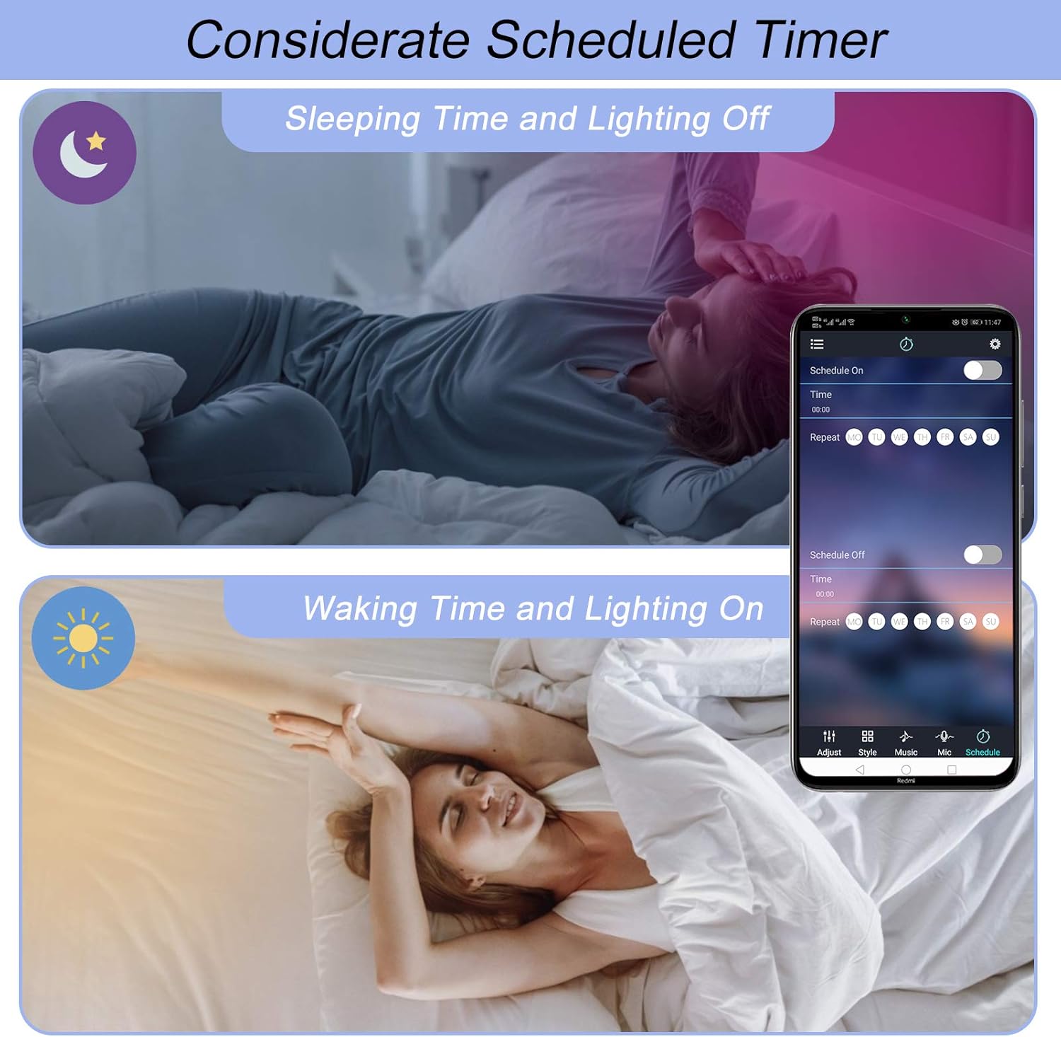 • Activate Music Sync Mode and watch your lights dance to the beat