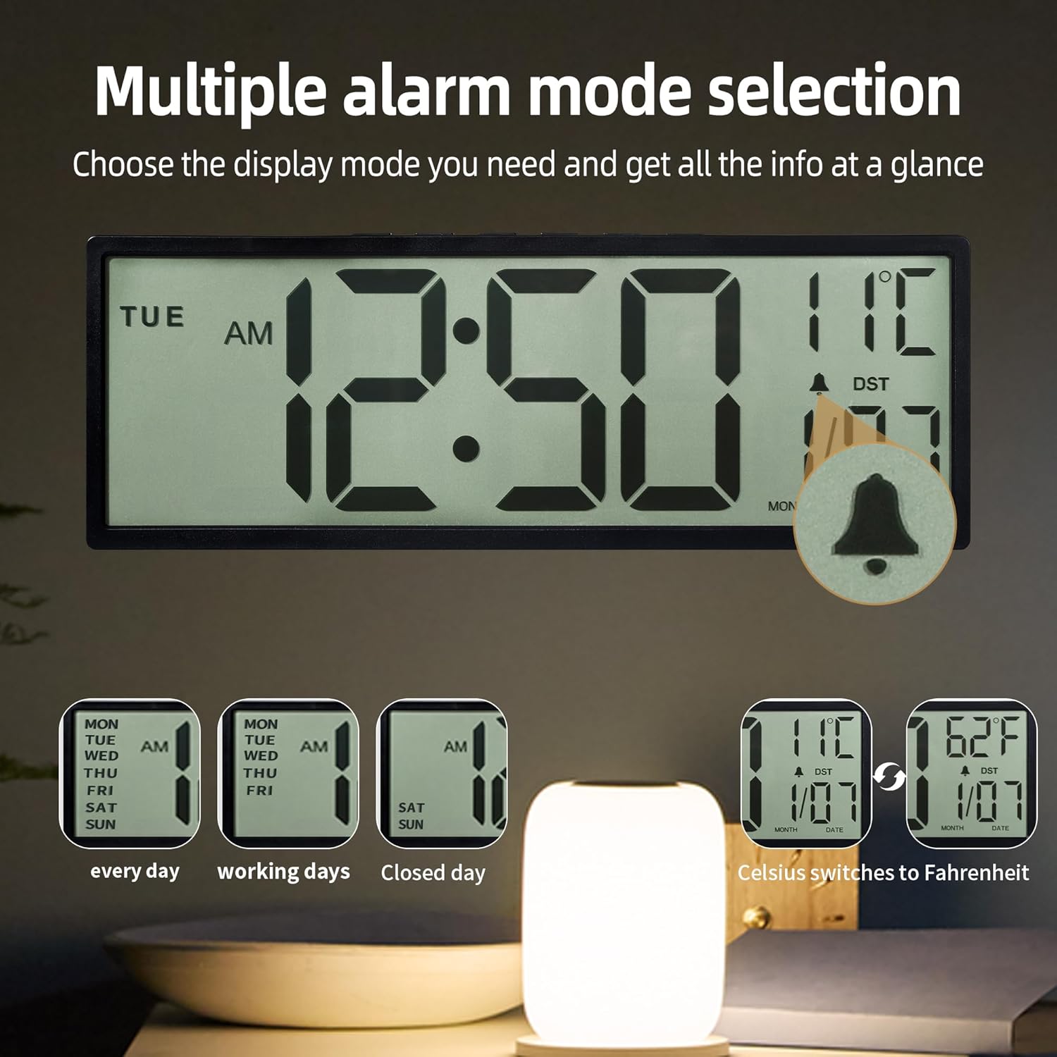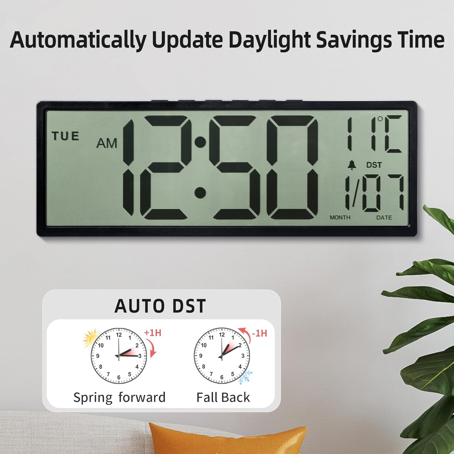 Ideal for seniors, shared workspaces, classrooms, or home use, this clock comes equipped with Auto Daylight Saving Time (DST) to adjust time automatically during seasonal changes. The alarm function can be turned off when not needed.