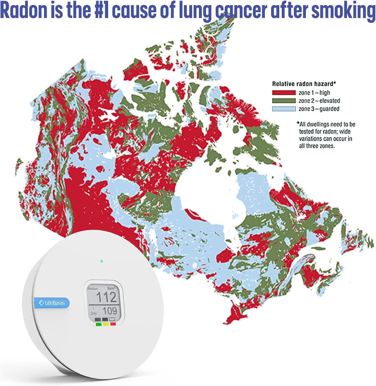 - 【Importance of Radon Measurement】: Radon is the second cause of lung cancer, accurate detection of your surroundings environment daily is essential because radon levels fluctuate daily. LifeBasis professional radon detector helps you get the long-term test radon value and protects your and family's health.