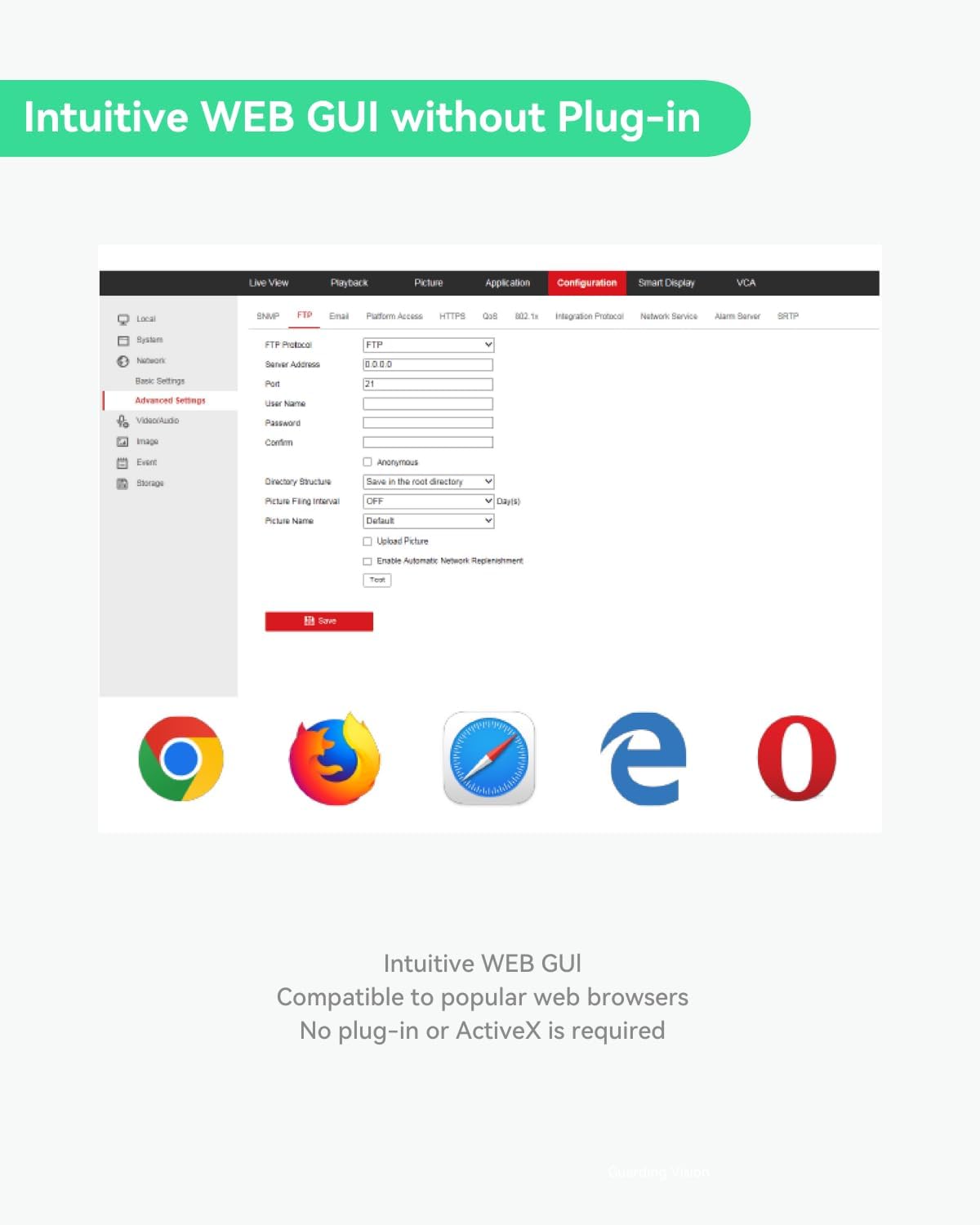- EASY REMOTE ACCESS - Comes with intuitive WEB GUI, compatible to Chrome/Safari/IE/Edge and no plug-in or ActiveX is required; Free mobile App with Cloud access; Also provide PC based VMS software to centralized manage tens of cameras from different sites. Offer API for 3rd party access.