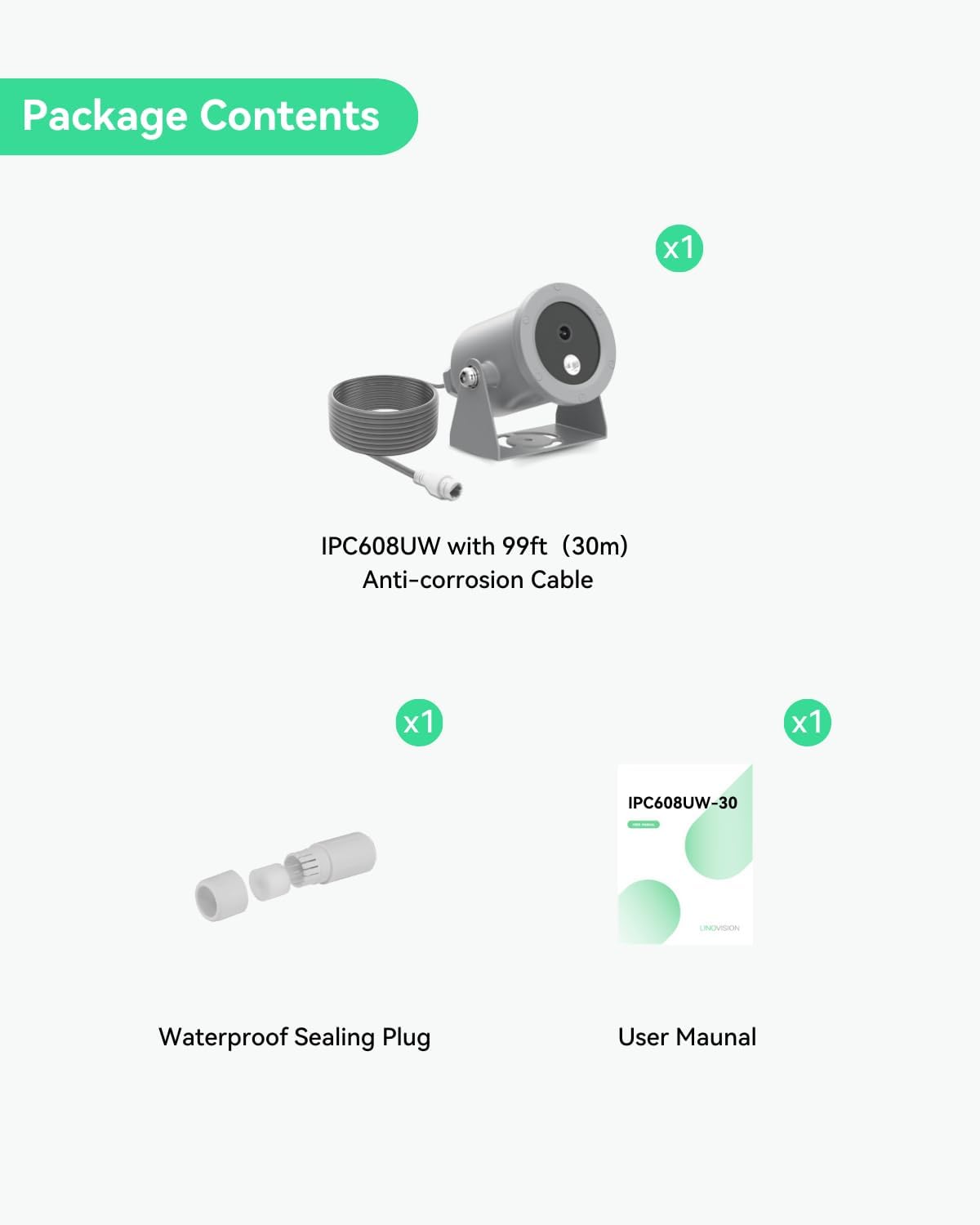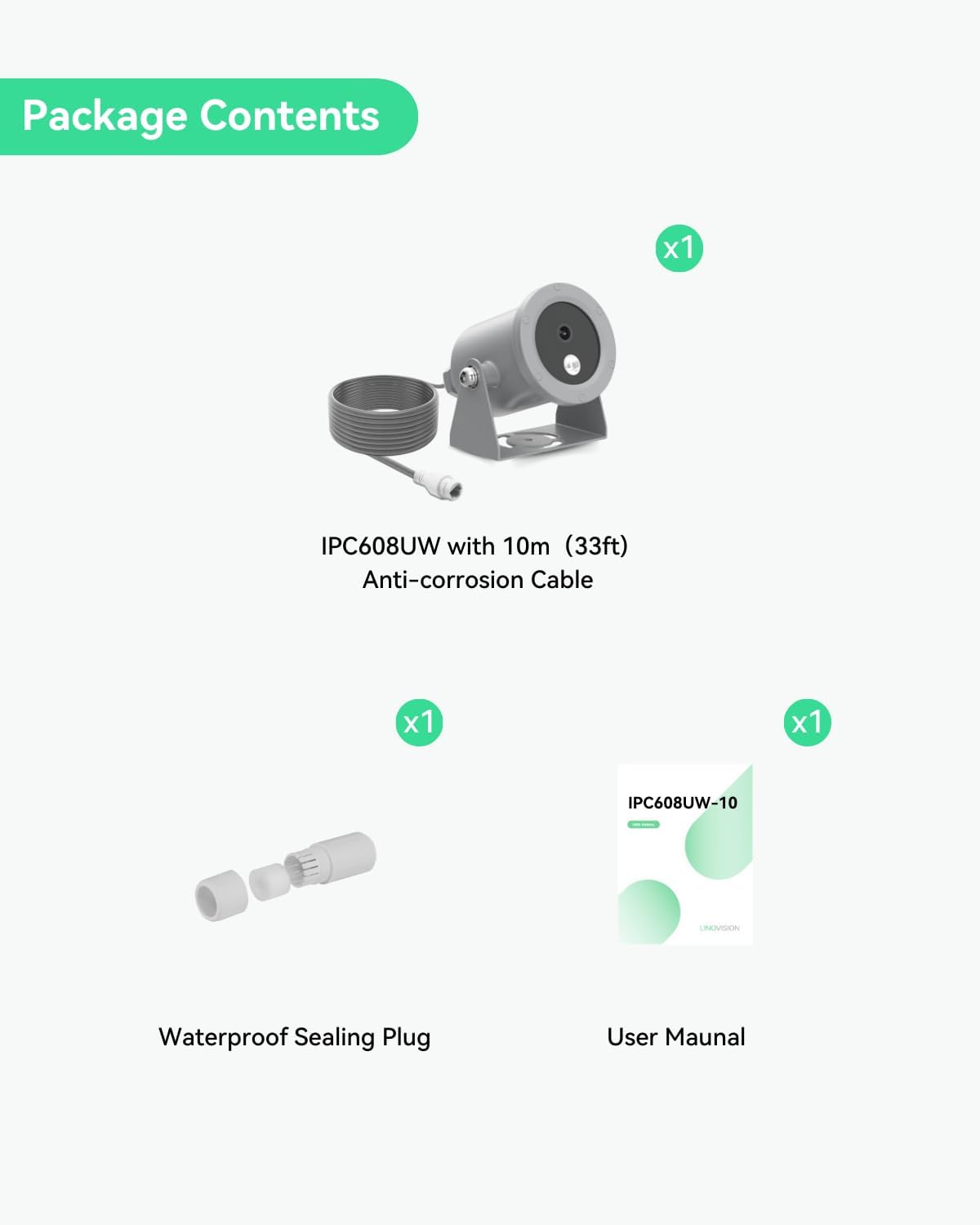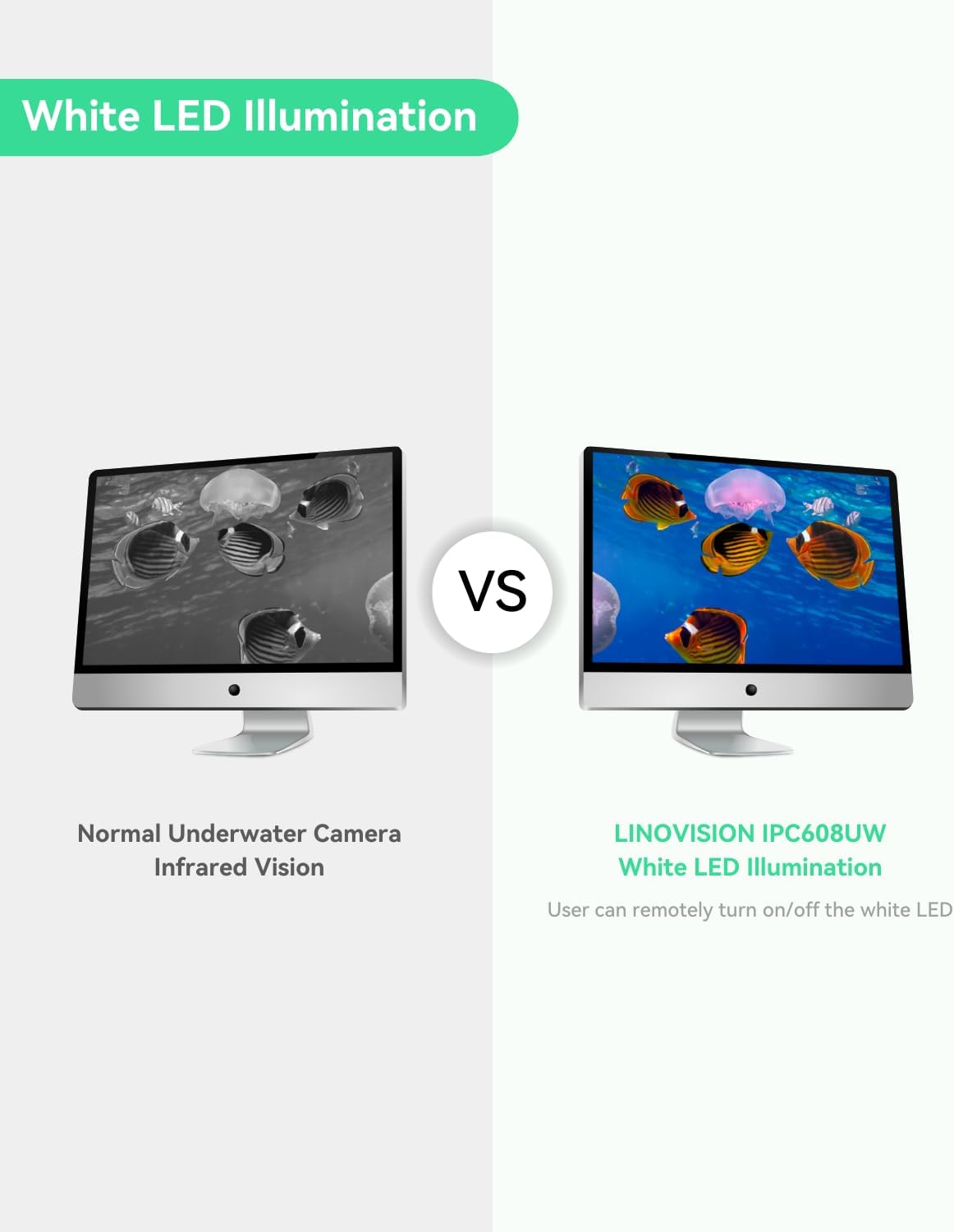 LINOVISION 4K Ultra HD Underwater Camera with Anti-Corrosion Coating, POE Network Camera with Intuitive Web GUI and Mobile APP, for Aquaculture Farms, Aquariums, Dams(10 Meters Cable)