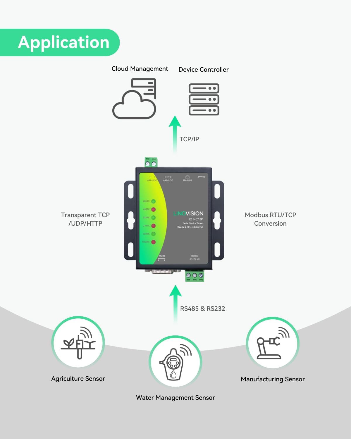 - RS232&RS485 TO ETHERNET - Integrate your existing RS232 and RS485 devices with Ethernet for remote monitoring and control, overcoming distance limitations