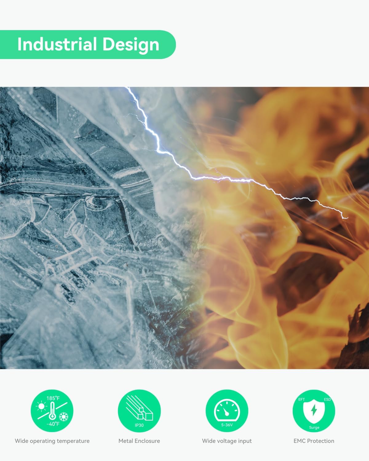 - INDUSTRIAL-GRADE DESIGN - Wall and rail mountable, IP30 protection, wide operating temperature from -40°F to 185°F