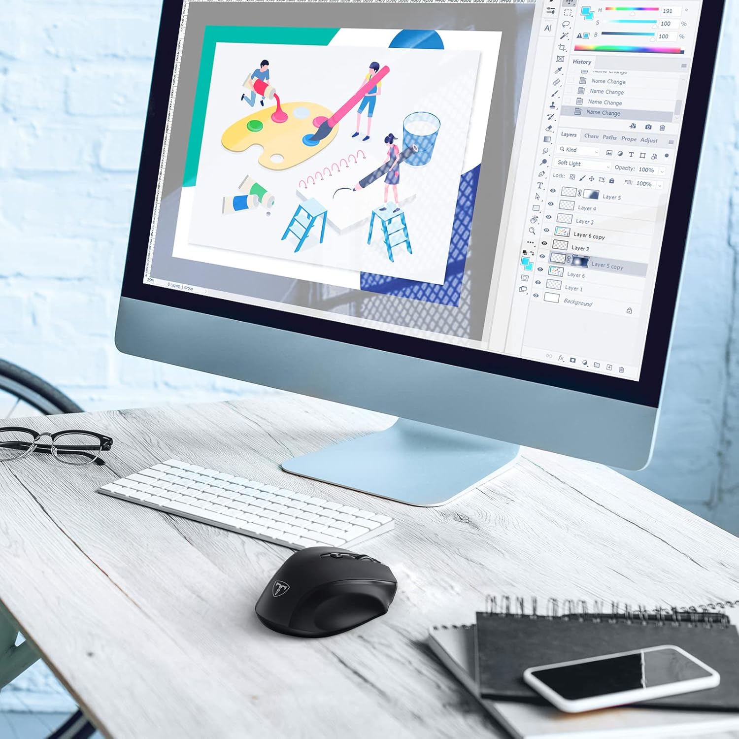 LODVIE Wireless Mouse for Laptop,2400 DPI Wireless Computer Mouse with 6 Buttons,2.4G Ergonomic USB Cordless Mouse,15 Months Battery Life Mouse for Laptop PC Mac Computer Chromebook MacBook-Black