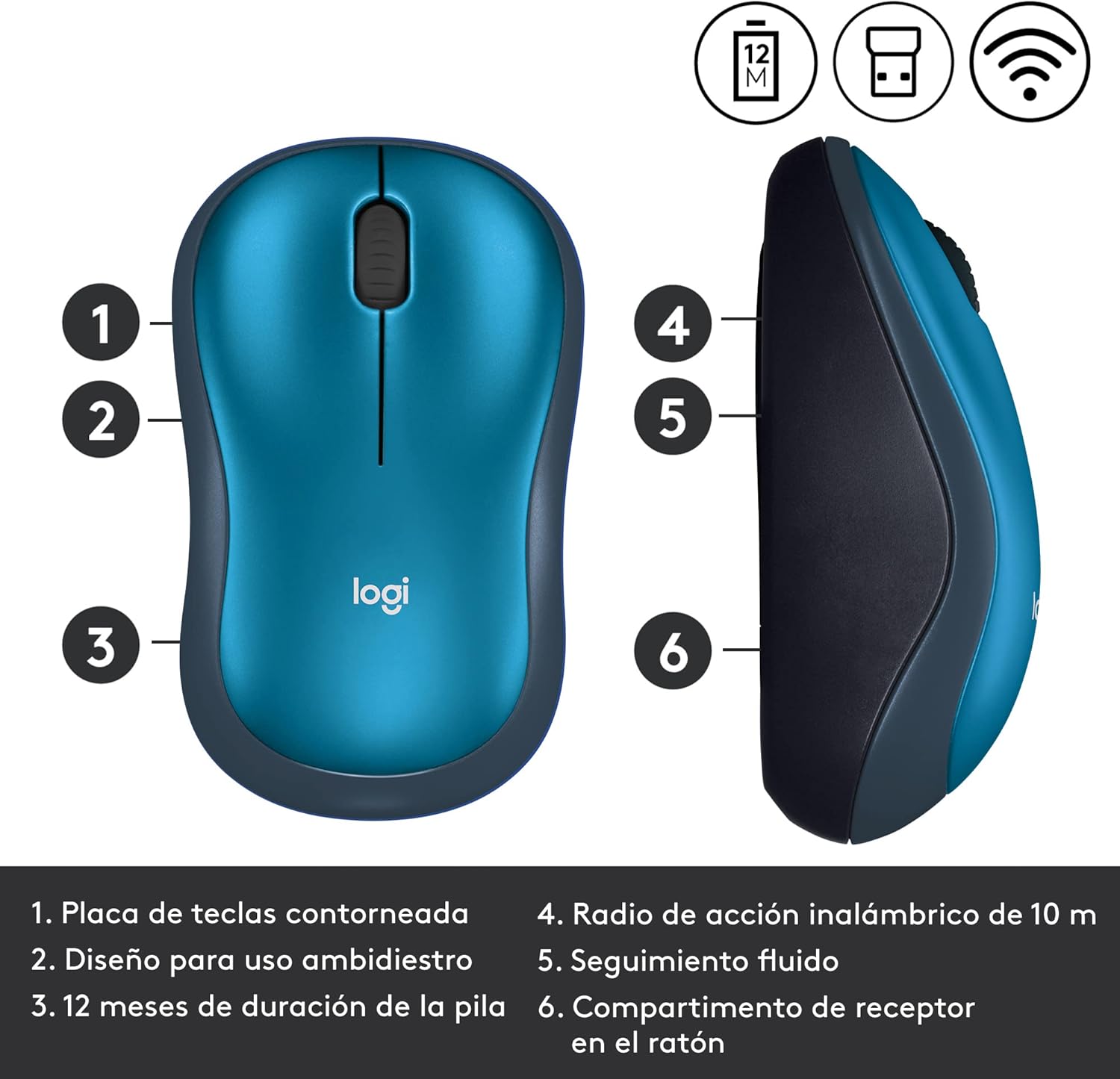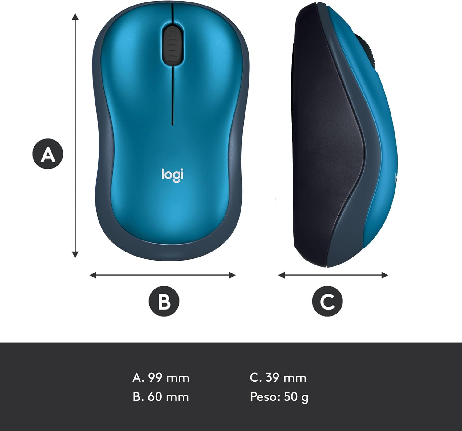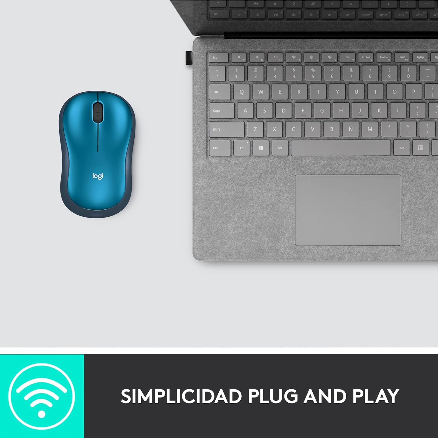 Logitech M185 Wireless Mouse, 2.4GHz with USB Mini Receiver, 12-Month Battery Life, 1000 DPI Optical Tracking, Ambidextrous, Compatible with PC, Mac, Laptop - Blue