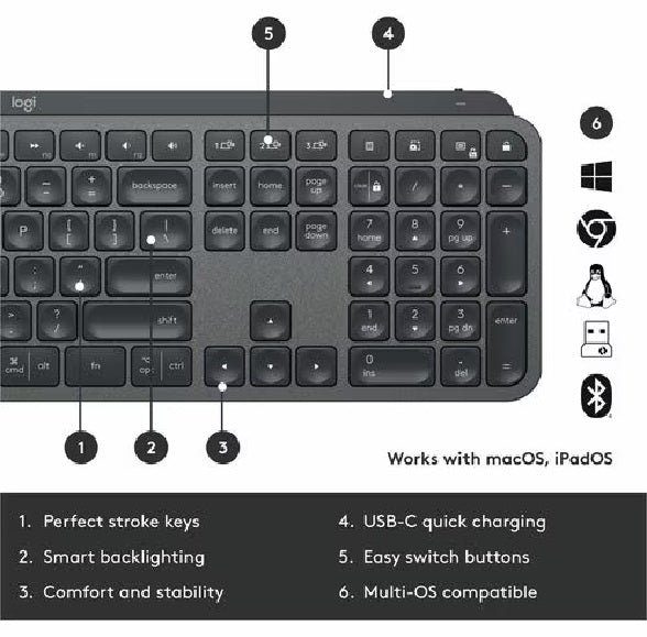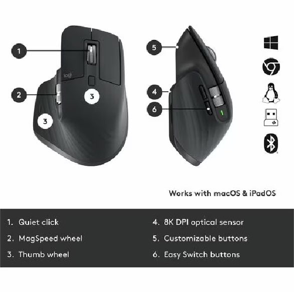 Logitech MX Keys + MX Master Mouse Combo Gen 2 – Wireless, Bluetooth, USB – High Precision 8000 DPI – Darkfield – Mac/Windows