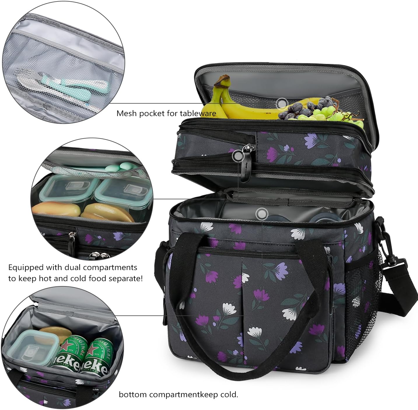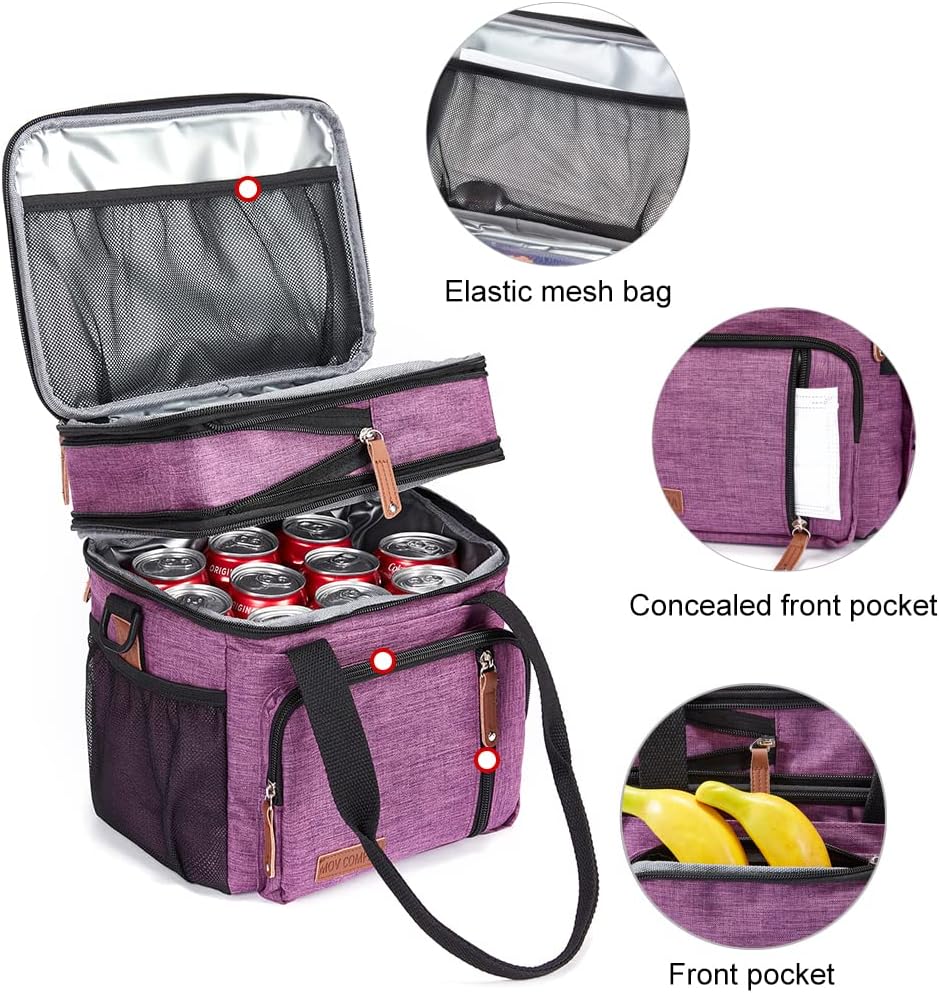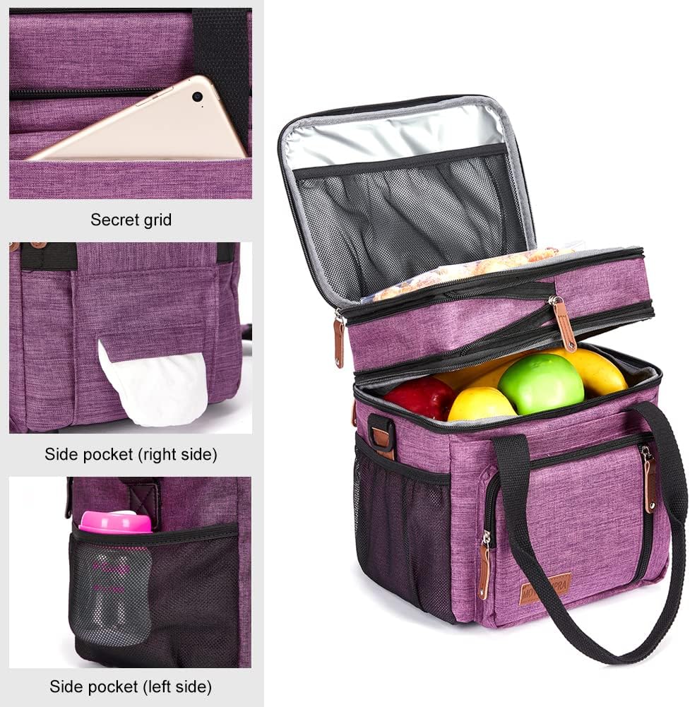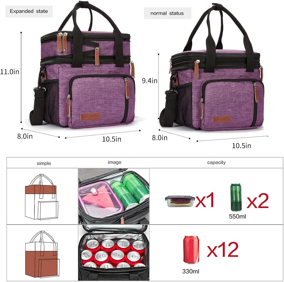 Lunch Bag Women Insulated Lunch Box for Work, Purple Expandable Large Lunch Bags, Leakproof Double Deck Lunch Box Cooler Bag(Purple)