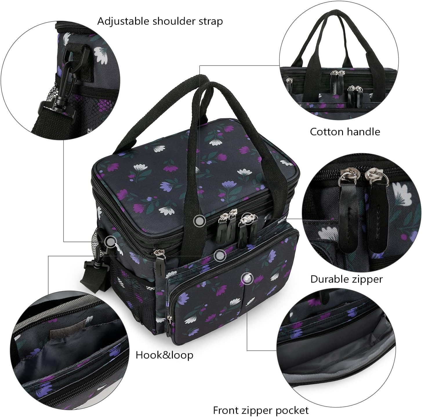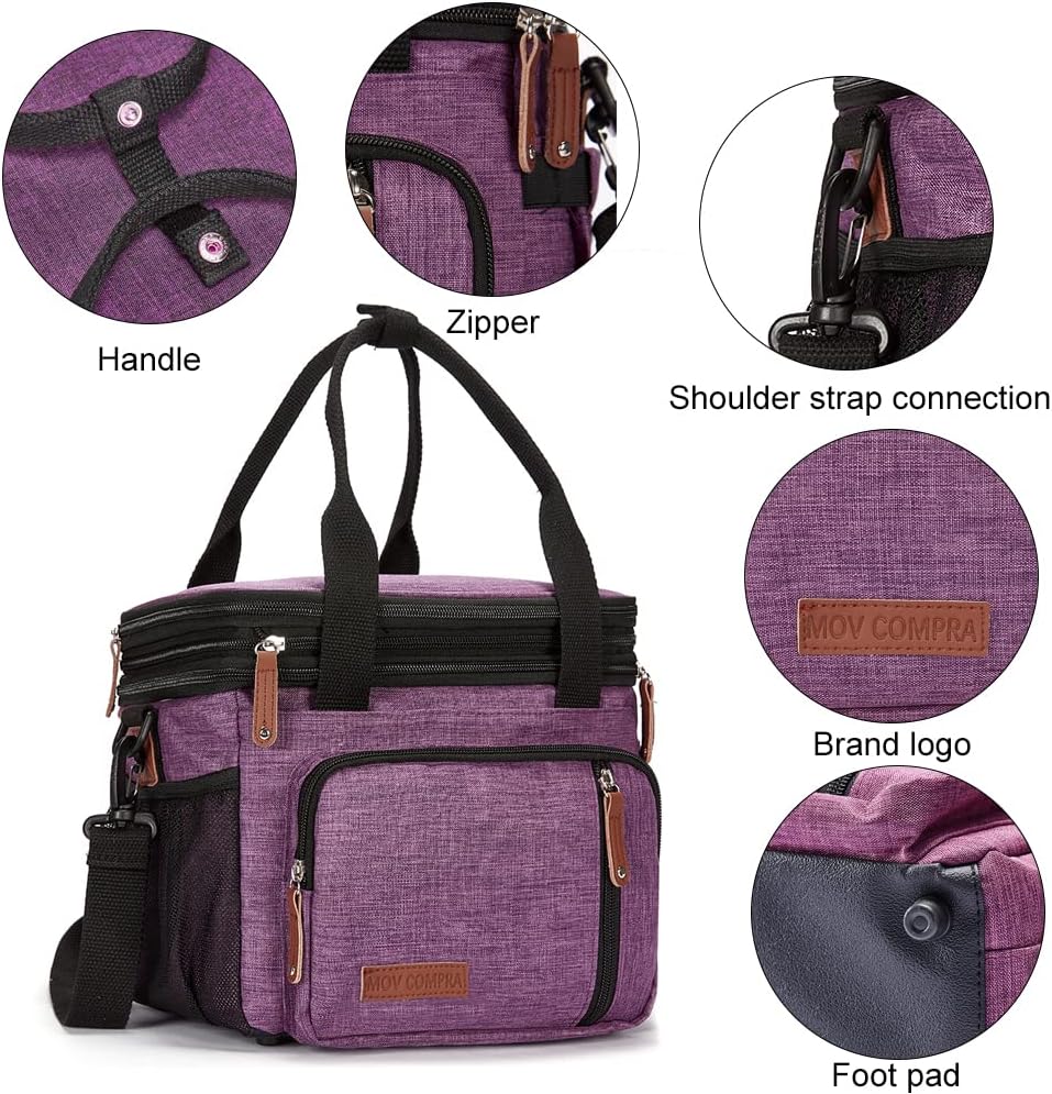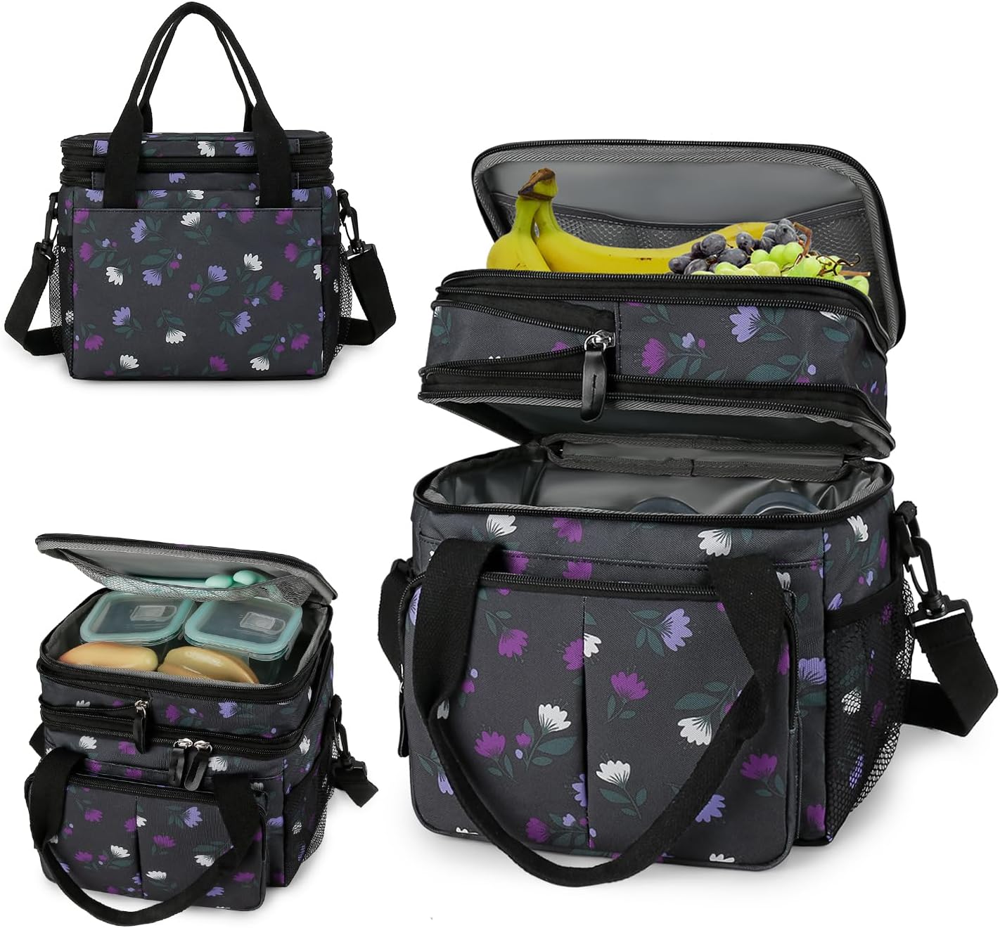 Lunch Bag Women Insulated Lunch Box for Work, Purple Expandable Large Lunch Bags, Leakproof Double Deck Lunch Box Cooler Bag(Purple)