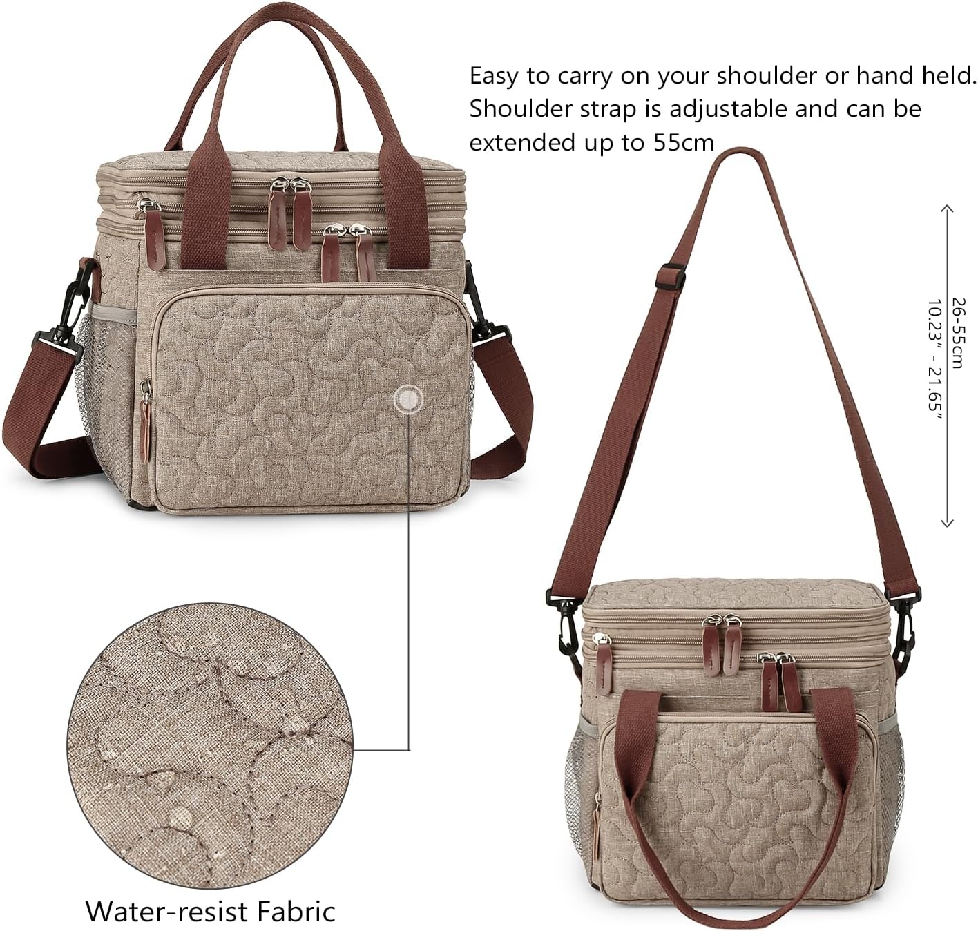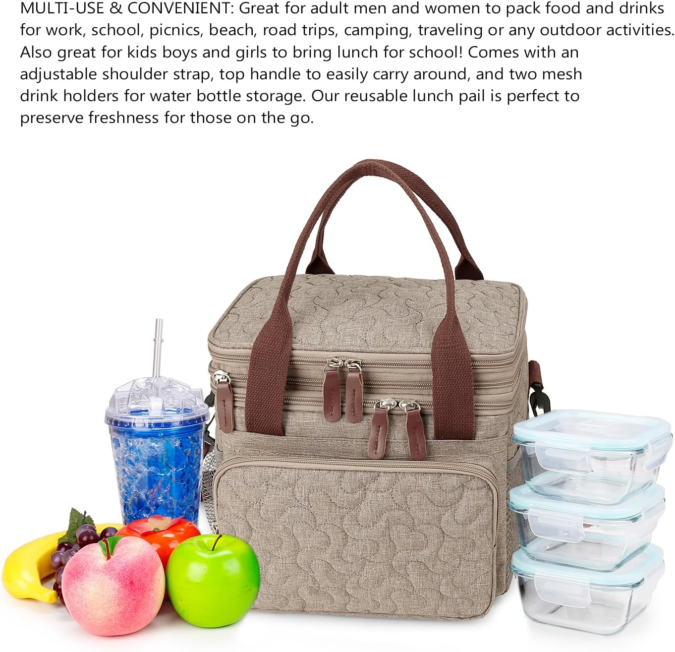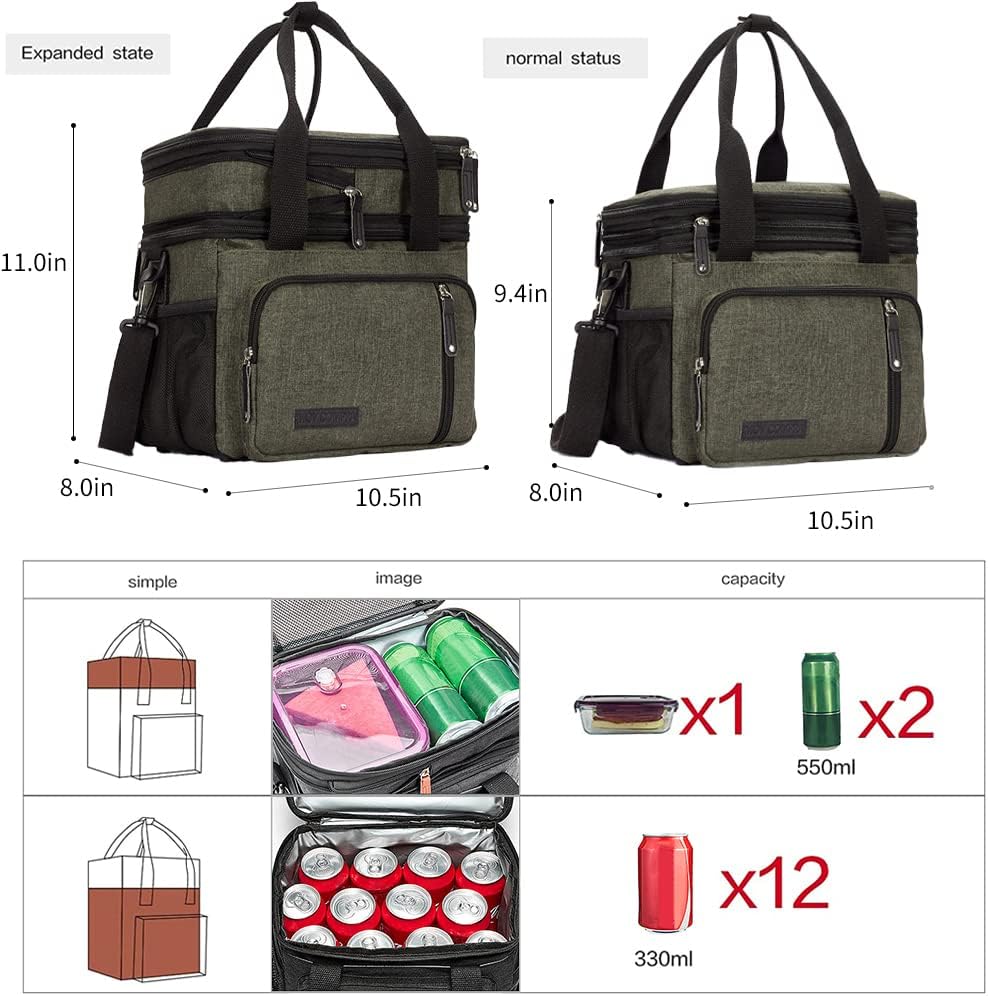 🍴 Muti Purpose - You can take it with to the office, go day trips, beach and sporting, or pack a healthy snack for outdoor activity. Suitable for men and women. Stylish design make it can be used in many occasion as you prefer. Mom also can use it as diaper bag keep milk and as medications or as a casual tote bag.