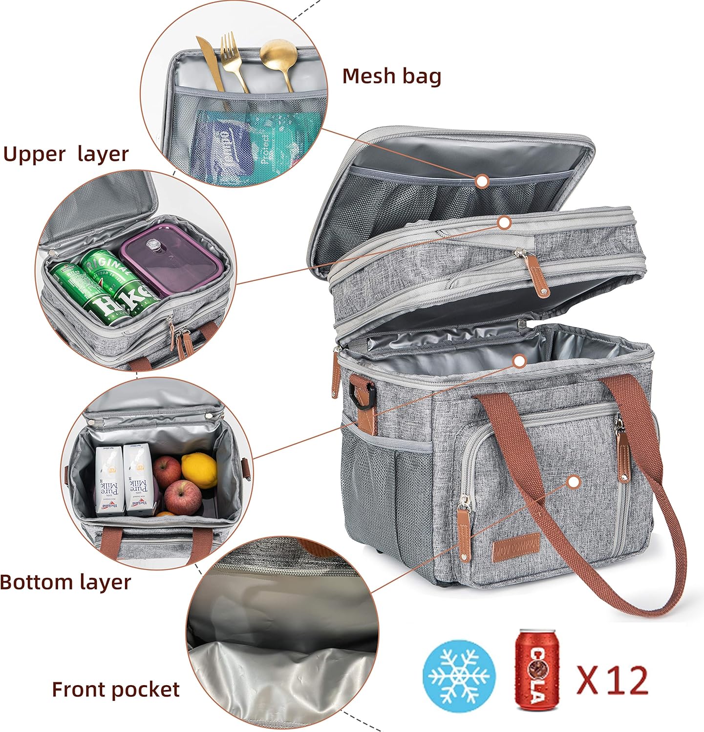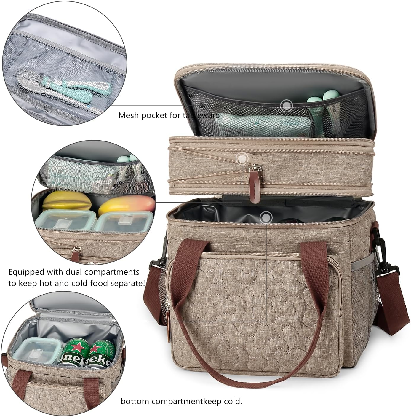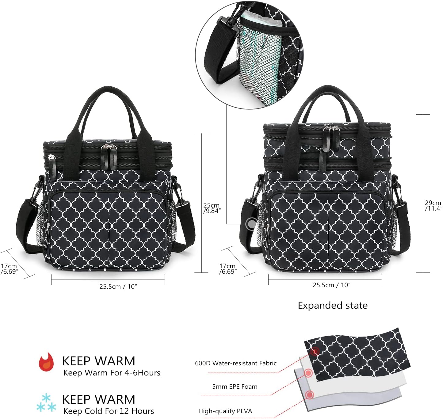 🍴 Muti Purpose - You can take it with to the office, go day trips, beach and sporting, or pack a healthy snack for outdoor activity. Suitable for men and women. Stylish design make it can be used in many occasion as you prefer. Mom also can use it as diaper bag keep milk and as medications or as a casual tote bag.