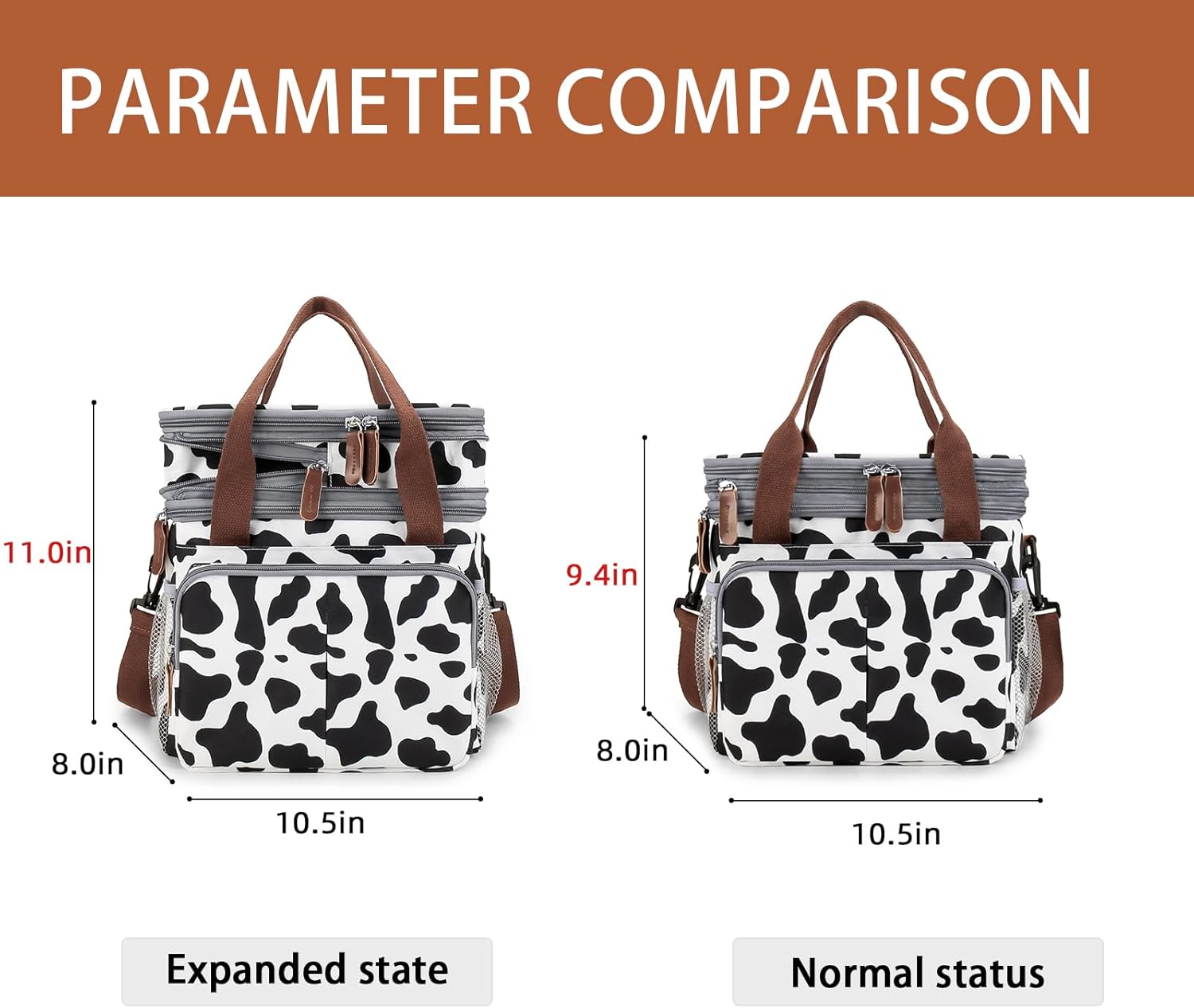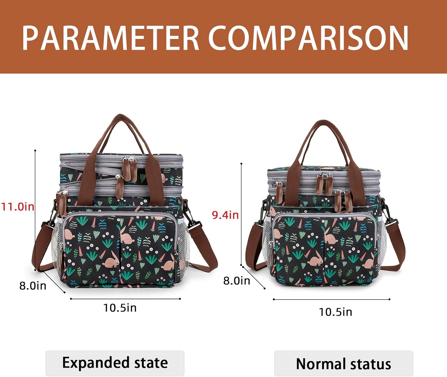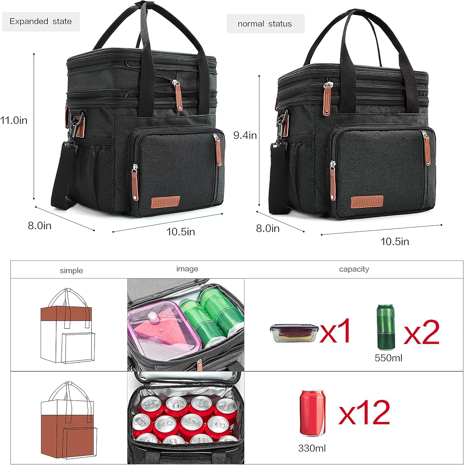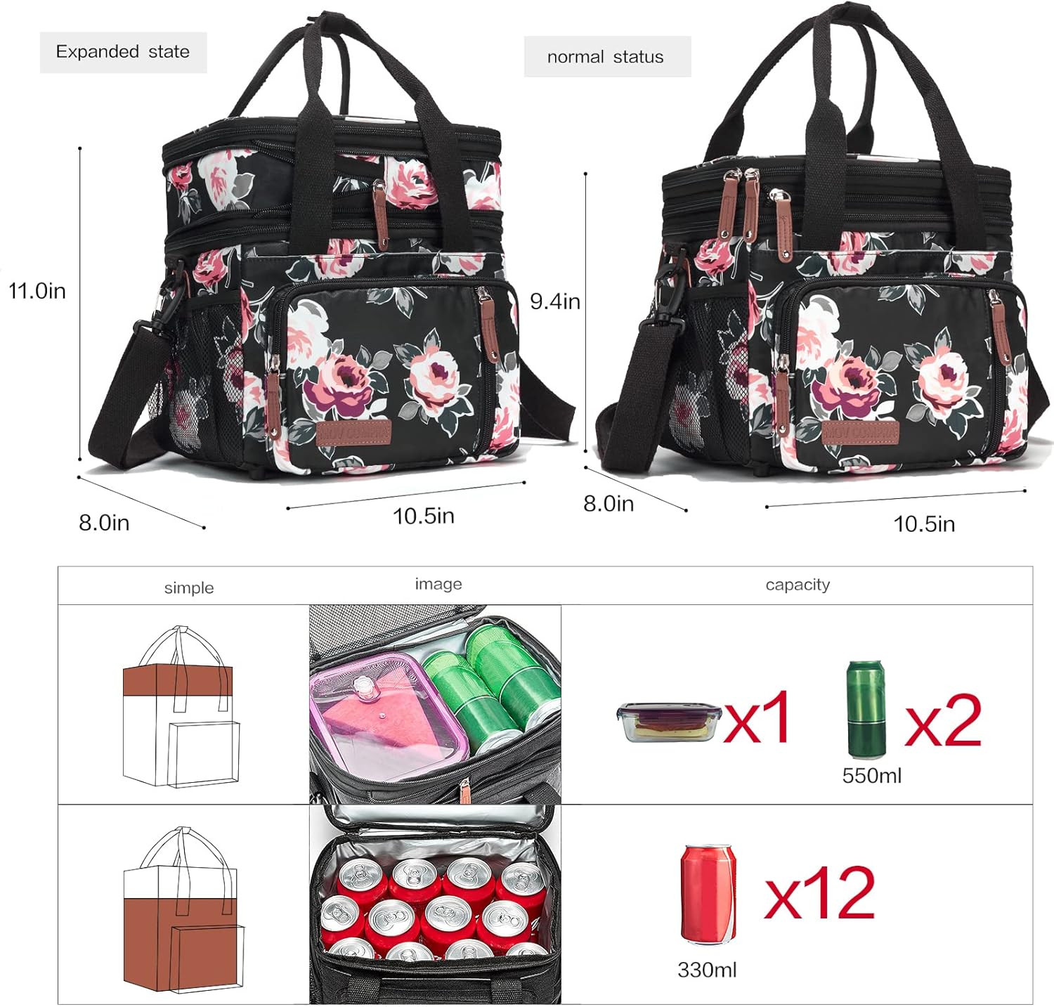 🍴 EXPANDABLE & LARGER CAPACITY & LIGHTWEIGHT - The lunch bag Size :9.4 ×8.0×10.5 inch; After expand size is 11 ×8.0×10.5 inch. Spacious lunch tote can easily fit all your snacks, drinks, sandwiches, fruits or vegetables, you can take it to your office, or pack a healthy snack for your family or have a delightful weekend picnic.