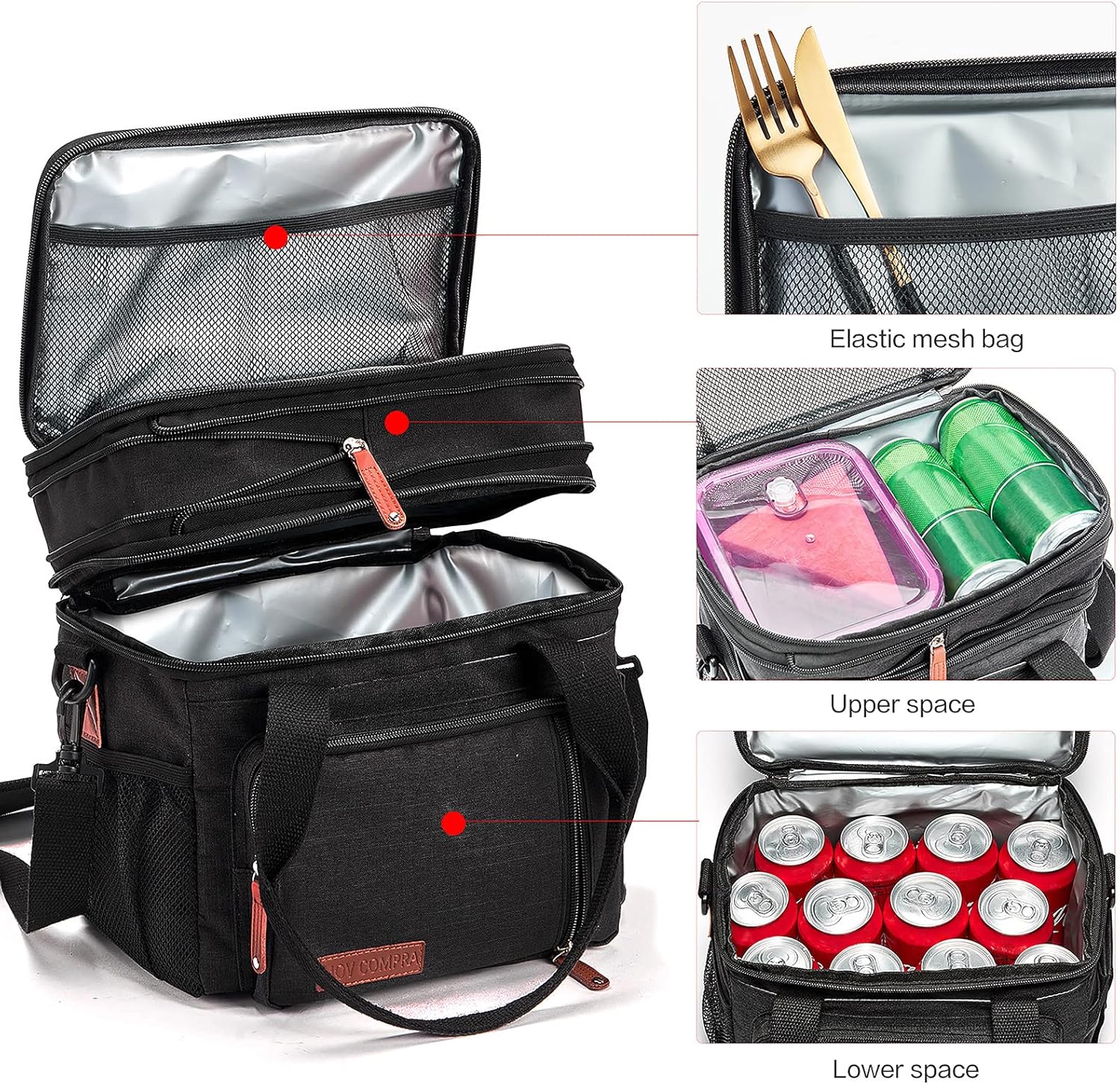 Lunch Bags for Men Women, Black Adult Lunch Box for Work, Expandable Leakproof Double Deck Lunch Box Cooler Tote Bag with Removable Shoulder Strap(Black)PL17-B08ZXVV3J5