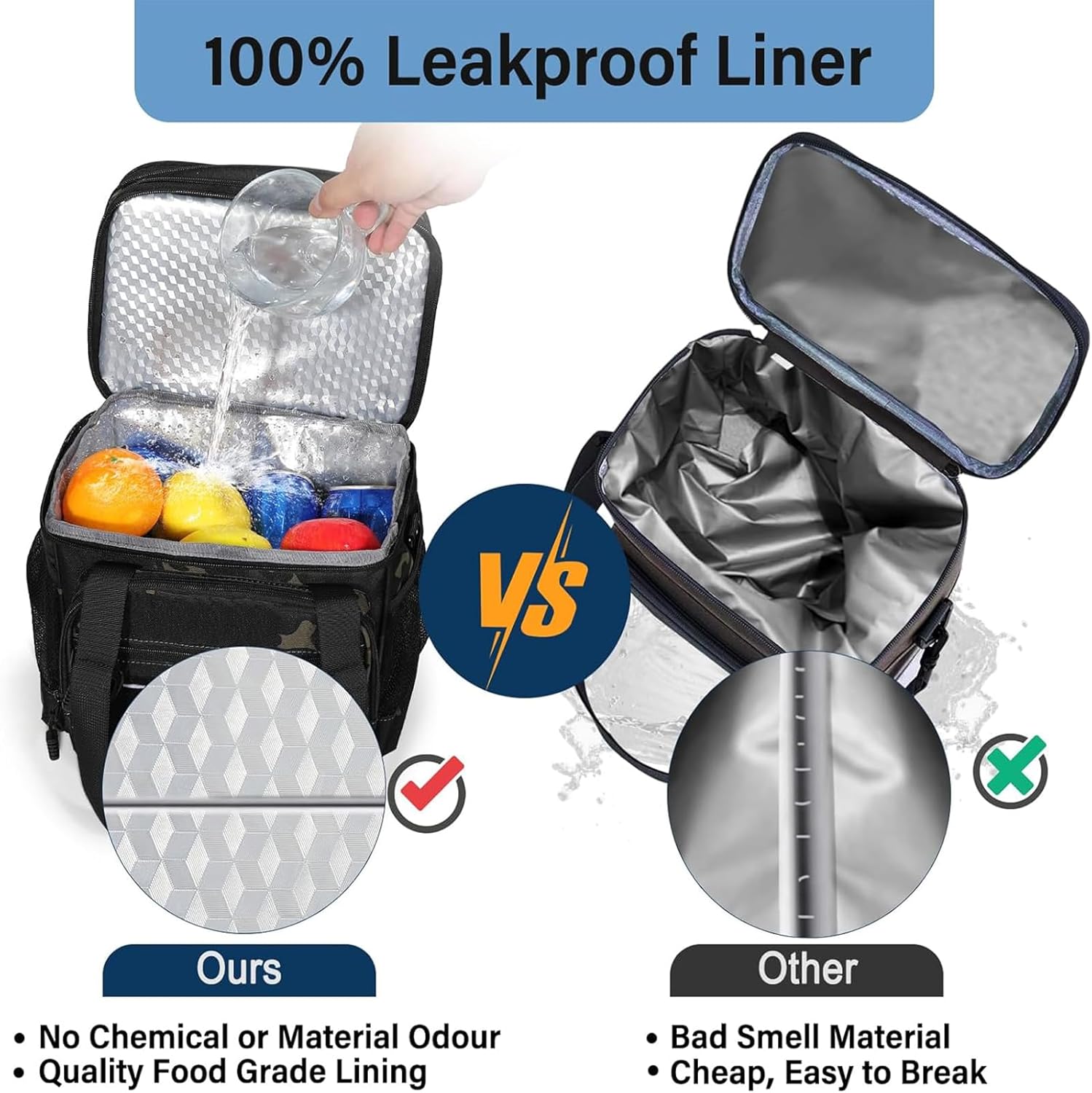 - Top Touch Insulation: 6mm thickened interior insulation of the lunchbox men helps to keep your food/drinks/fruit at the right temperature for hours, ensuring that everything stays fresh and delicious all the time. Waterproof and leakproof construction, you can add ice with no worries and you won't have any messy spills or accidents to deal with.