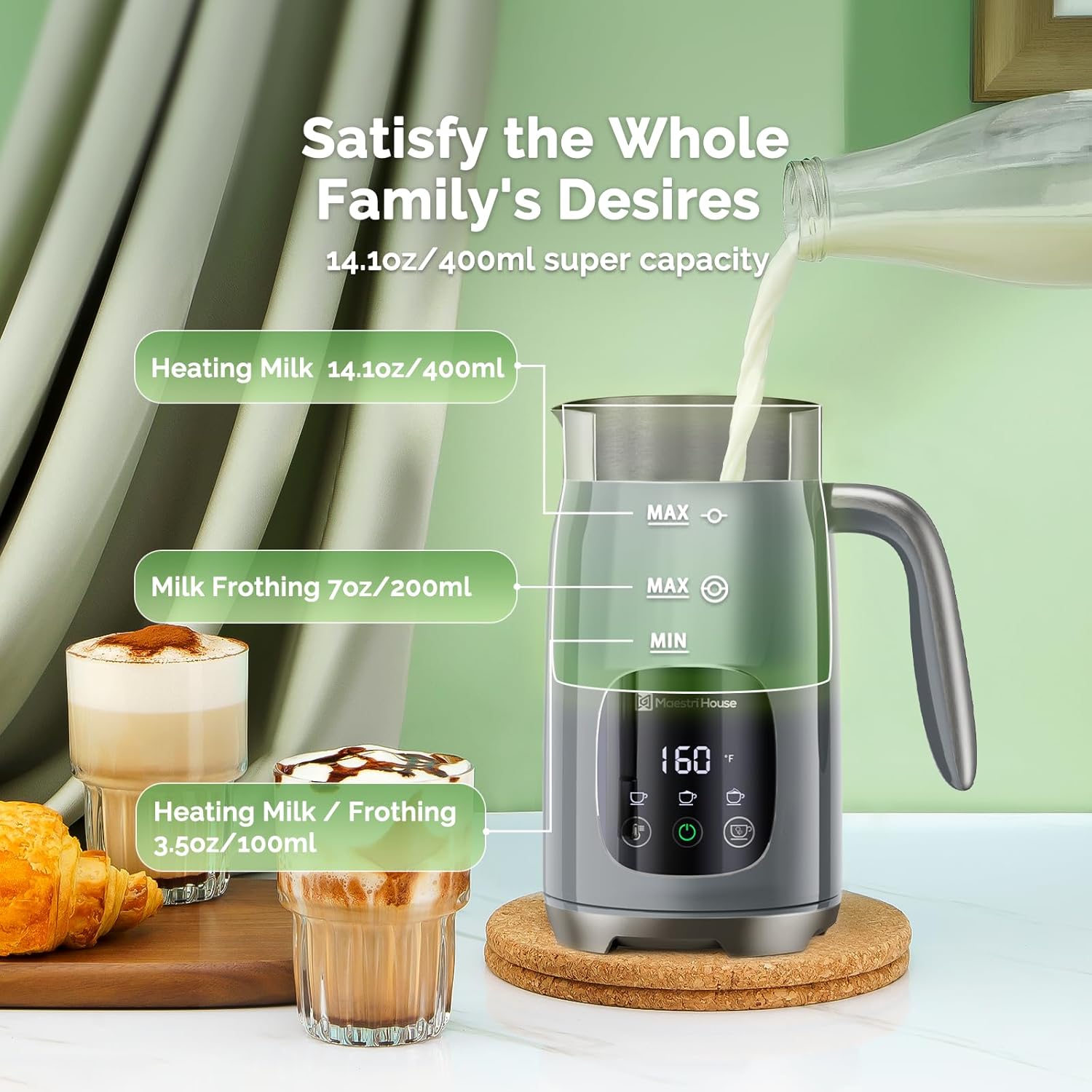 Maestri House Milk Frother, Variable Temp and Froth Thickness Milk Frother and Steamer, 14.1OZ/400ML Smart Touch Control Foam Maker, Memory Function for Latte, Warm Milk, Hot Chocolate,DualFro 400