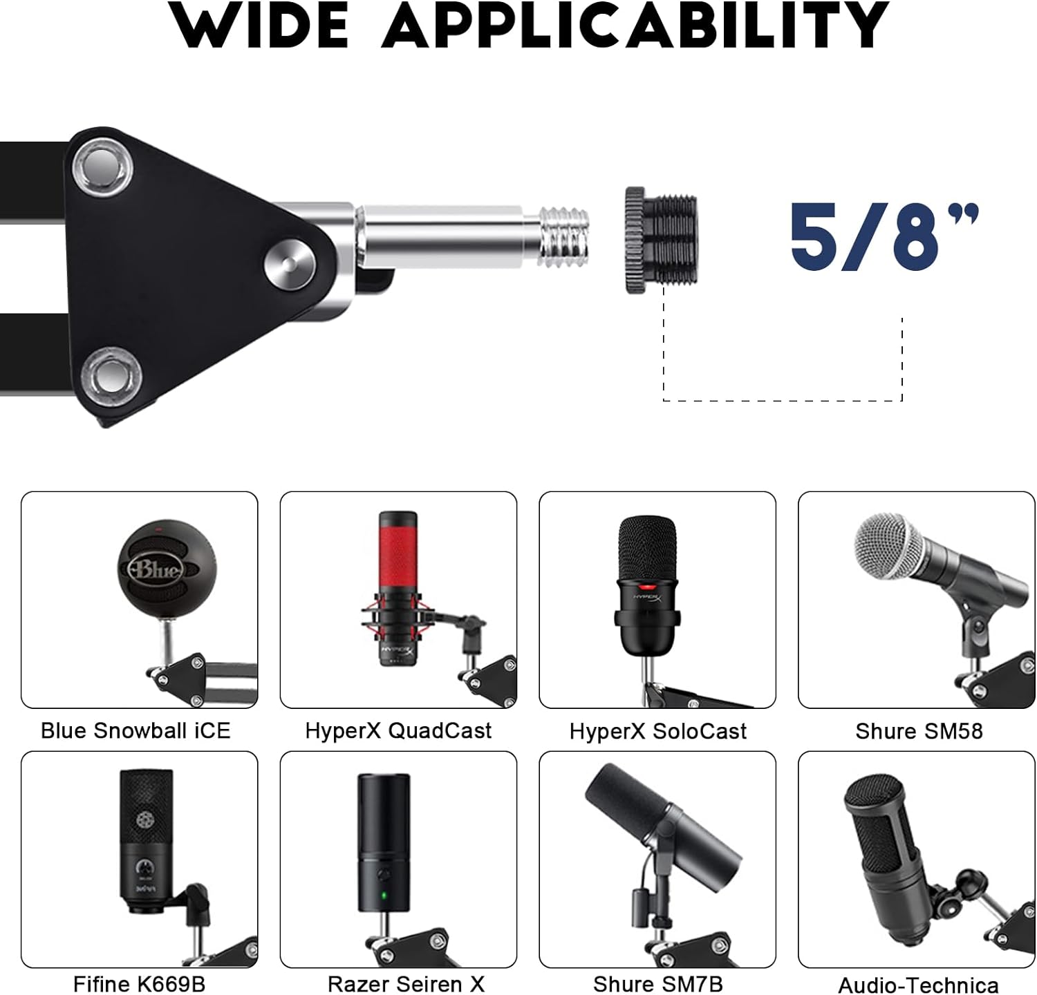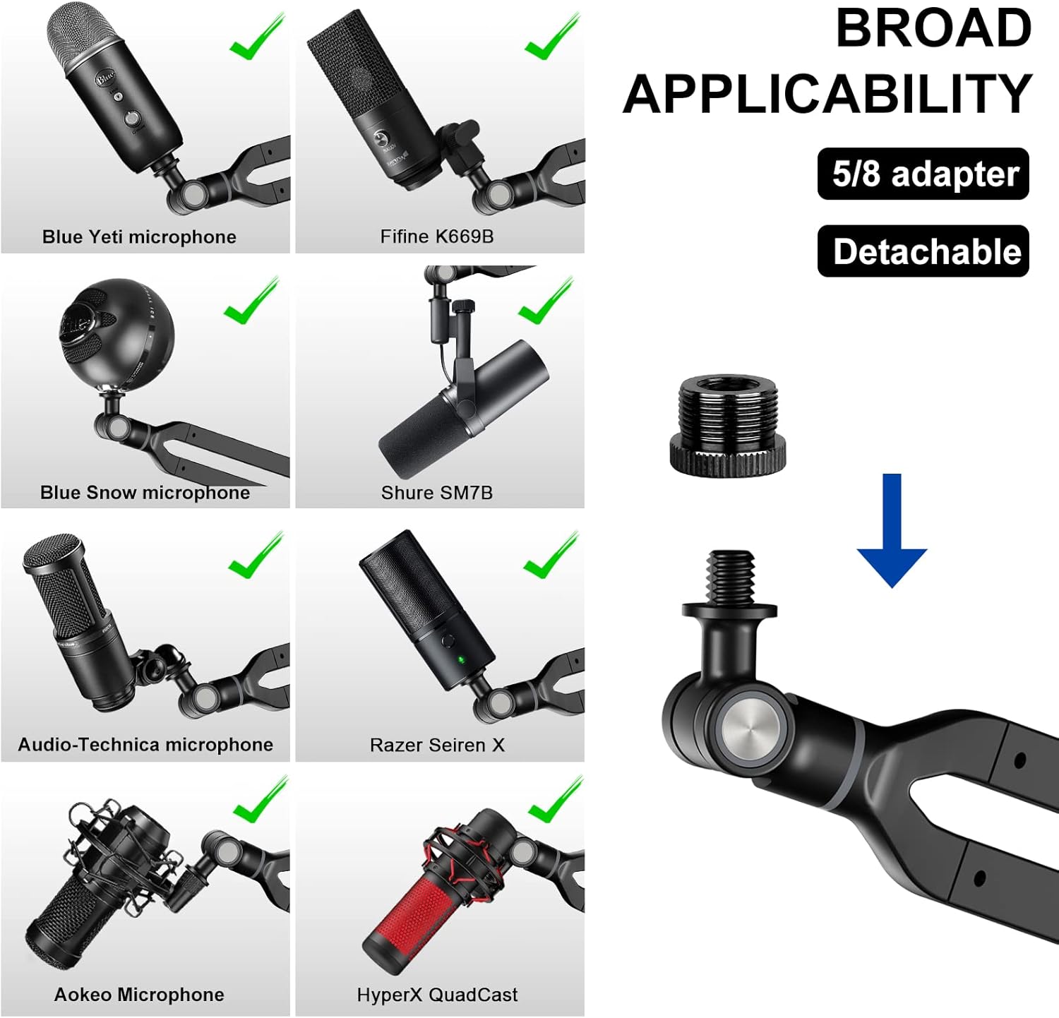 - Multifunction:the boom arm stand is universal to fit all your needs. If your microphone comes with a different adapter clip just detach the clip and attach your Blue Snowball, Blue Yeti, etc. microphone adapter clips to our stand to hold your personal microphone. It has a threaded screw adapter at the end of the mount.