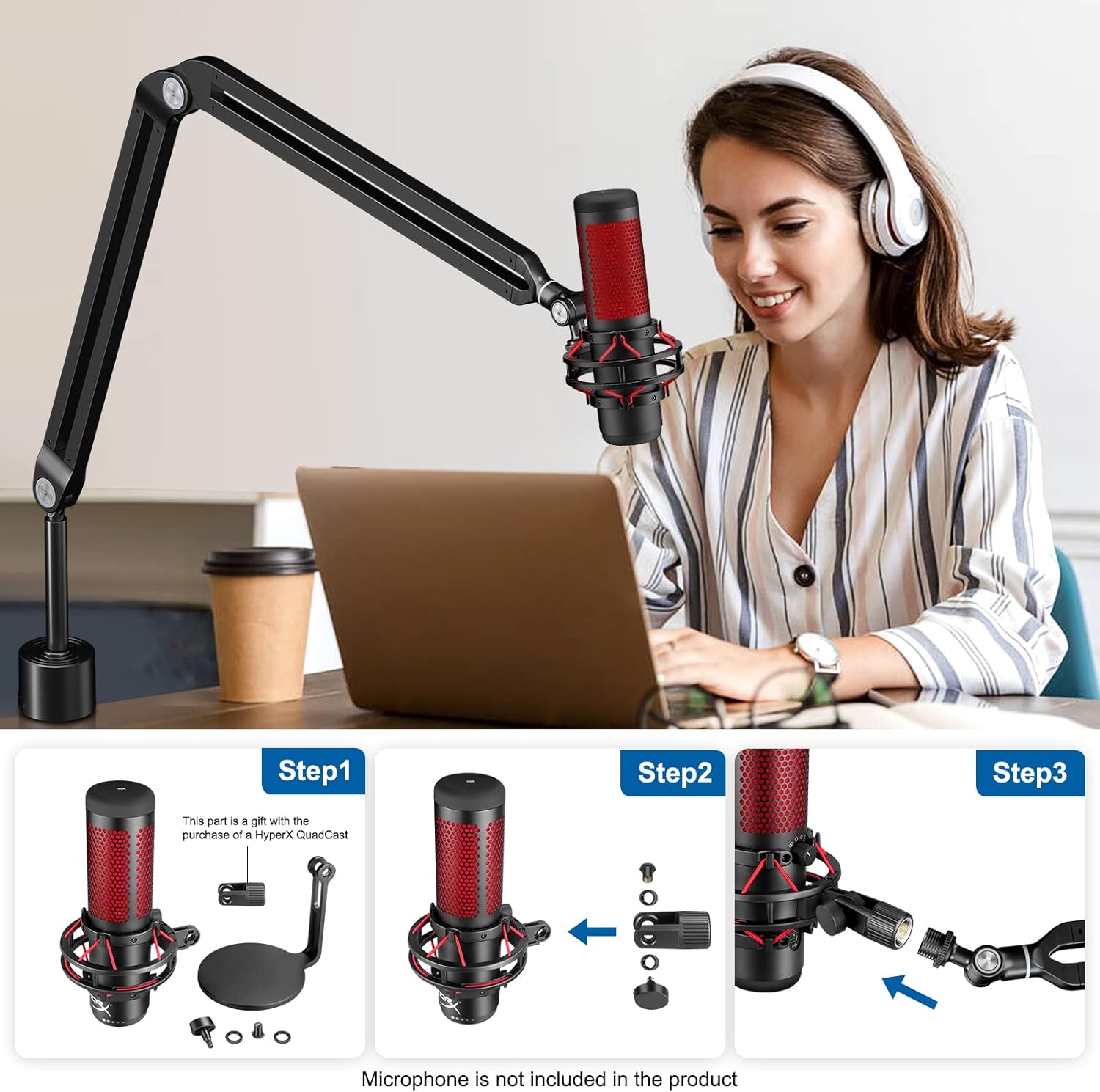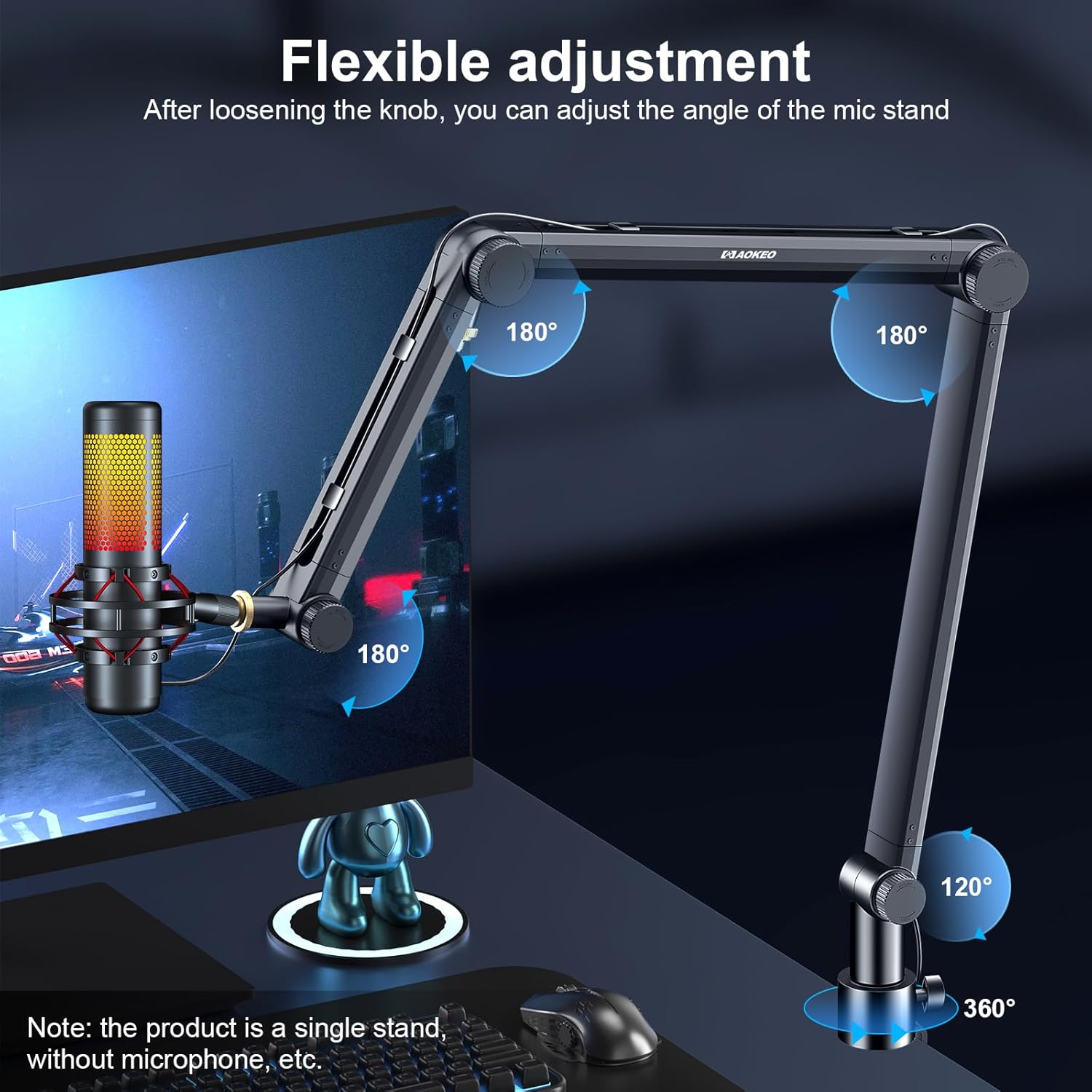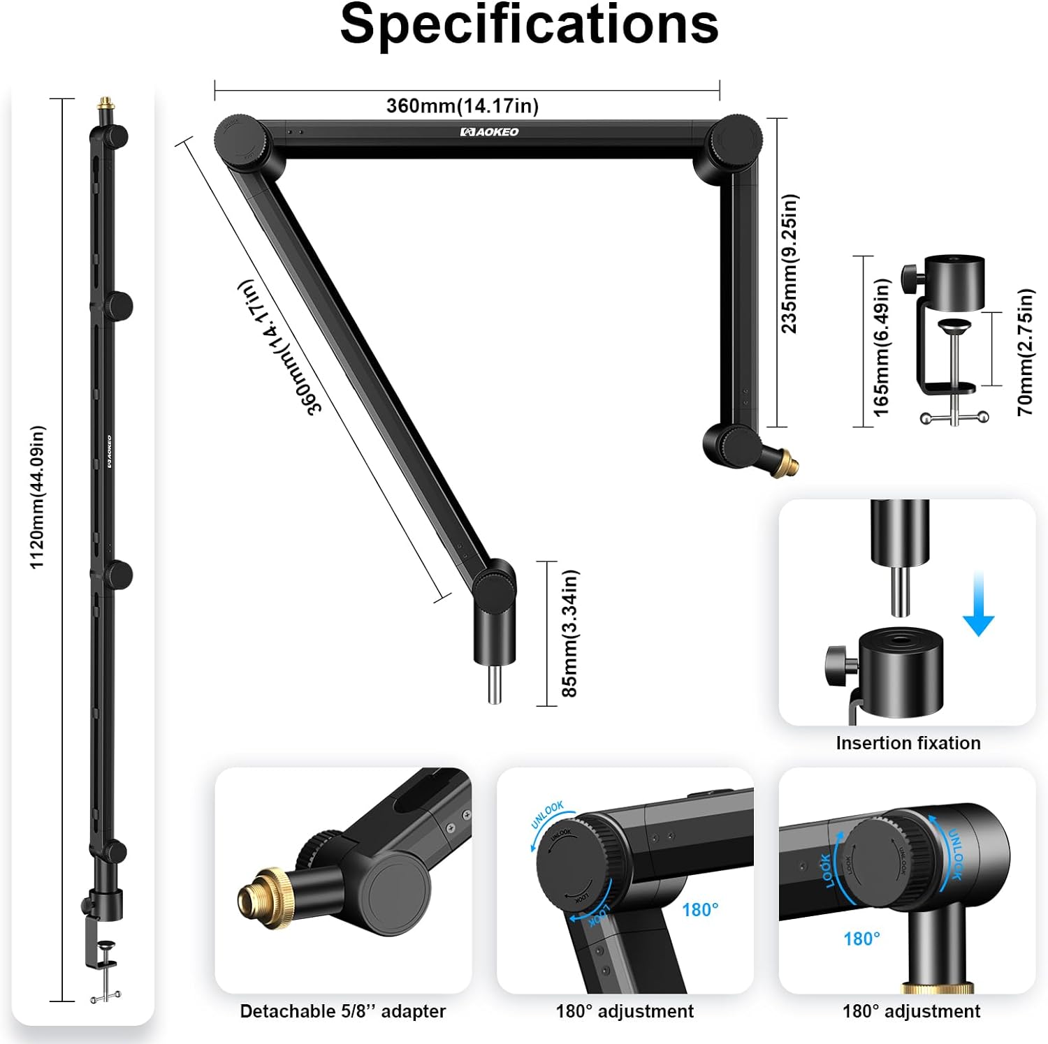 - Newly designed desktop clip: it can be attached to any desk up to 2.3in/6cm thick and allows your microphone stand to rotate 360°.