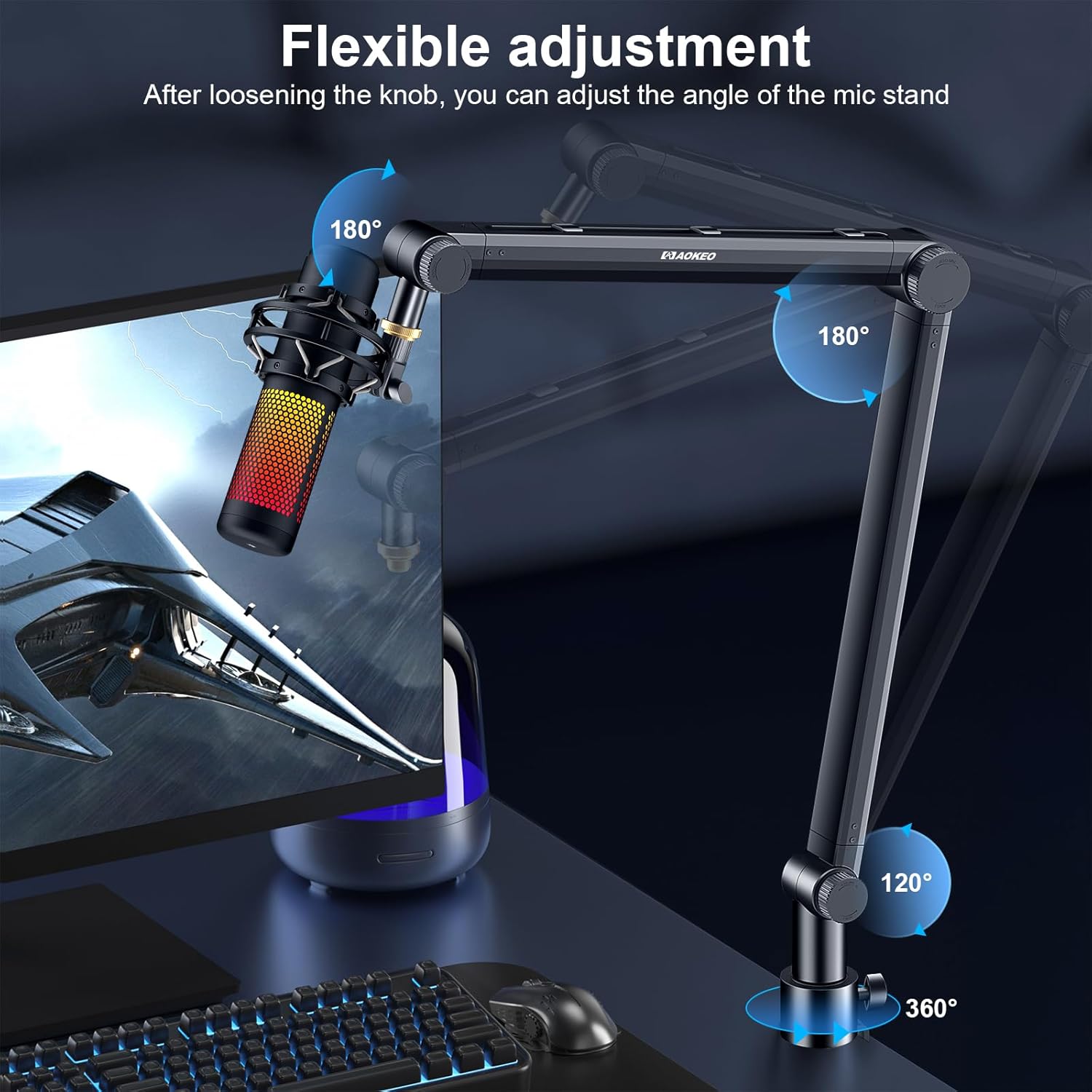 Microphone Arm,Aokeo AK-35 Microphone Desk Stand-Microphone Suspension Boom Scissor Arm Stand For Blue Yeti,Blue Snowball iCE,QuadCast,Elgato