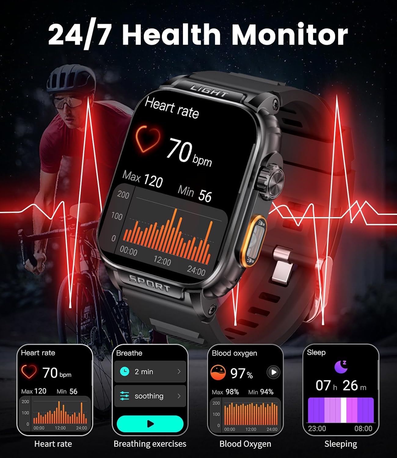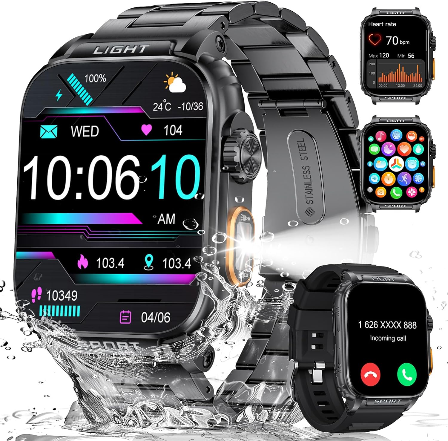 Military smart watch for men successfully passed 12 military tests, is waterproof, rugged, shockproof, dustproof, and can handle all the extreme environments. LIGE is the manufacturer in the market to produce the 3ATM waterproof dive watch, which has been certified by a professional certification institution. Military smart watch for men passed 50 meters underwater. Protect your outdoor activities, life waterproof!