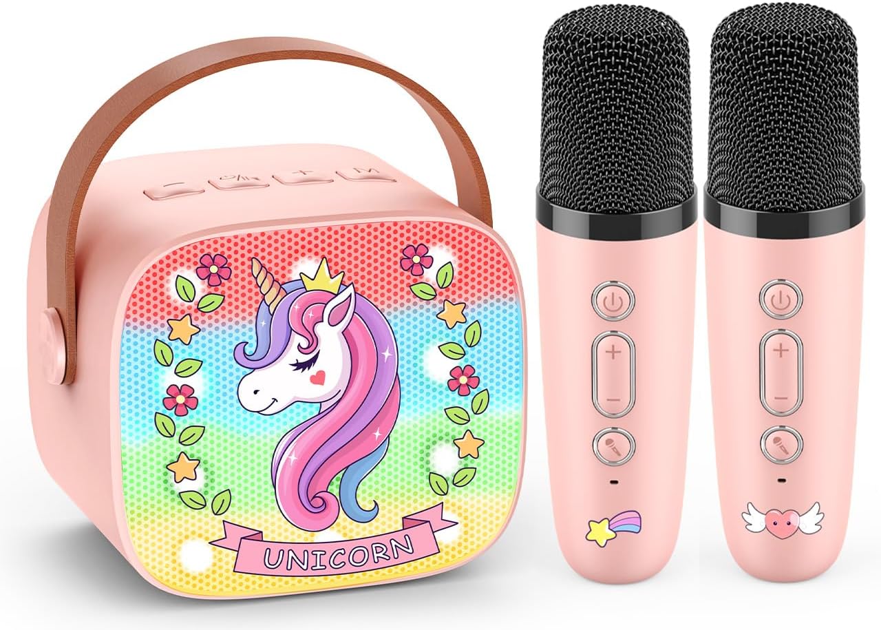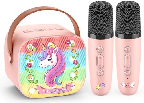 Mini Karaoke Machine for Kids, Exssary 3 4 5 6 7 8-12 Year Old Girl Gifts Portable Bluetooth Speaker with 2 Wireless Microphone Unicorn Toys Birthday Gifts for Girls Kids Teens (Pink)PL17-B0F543L49Y