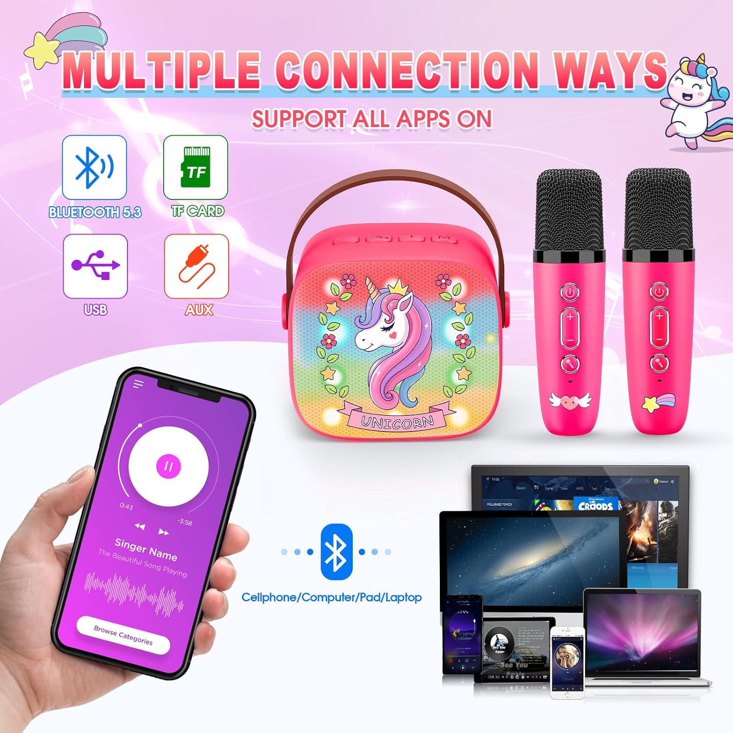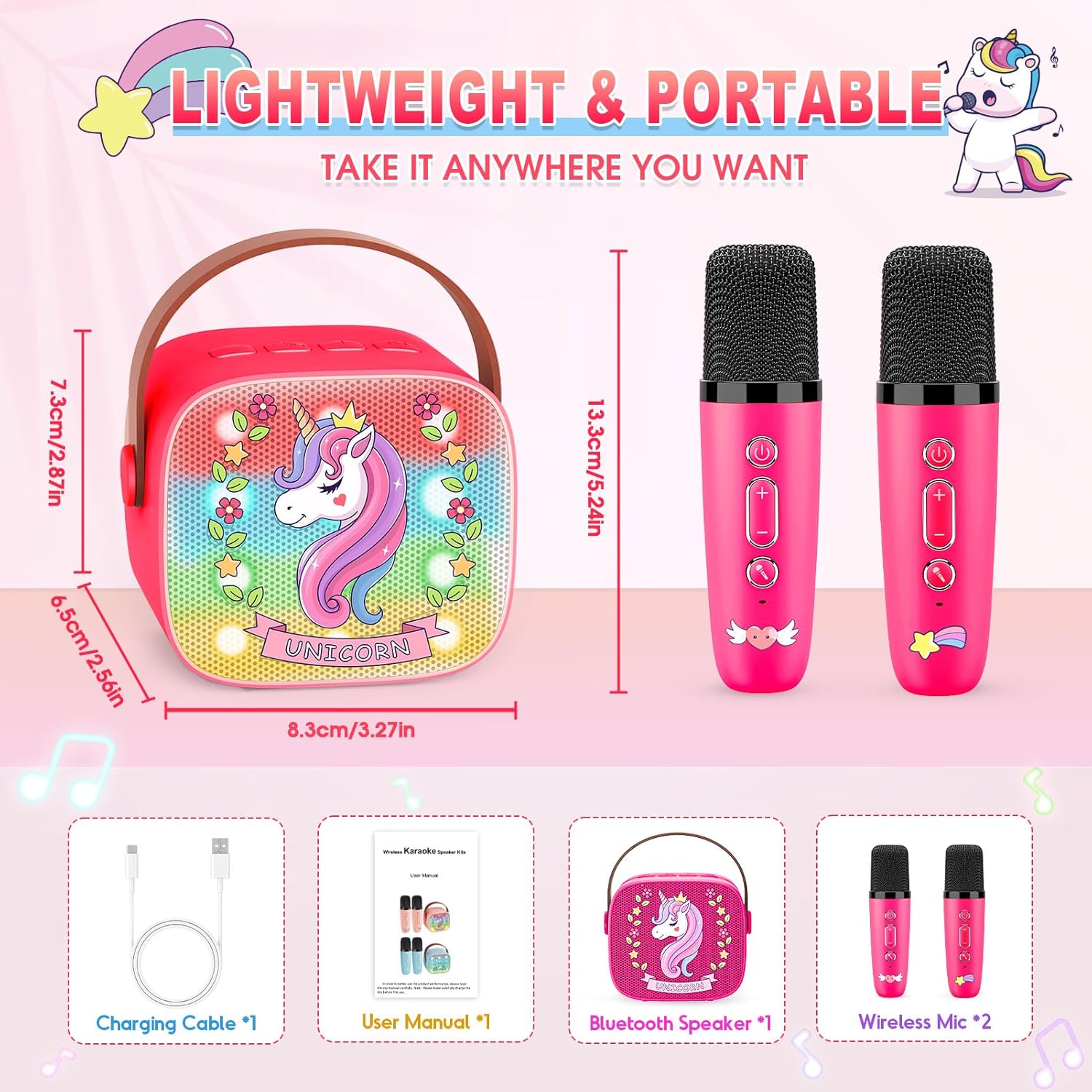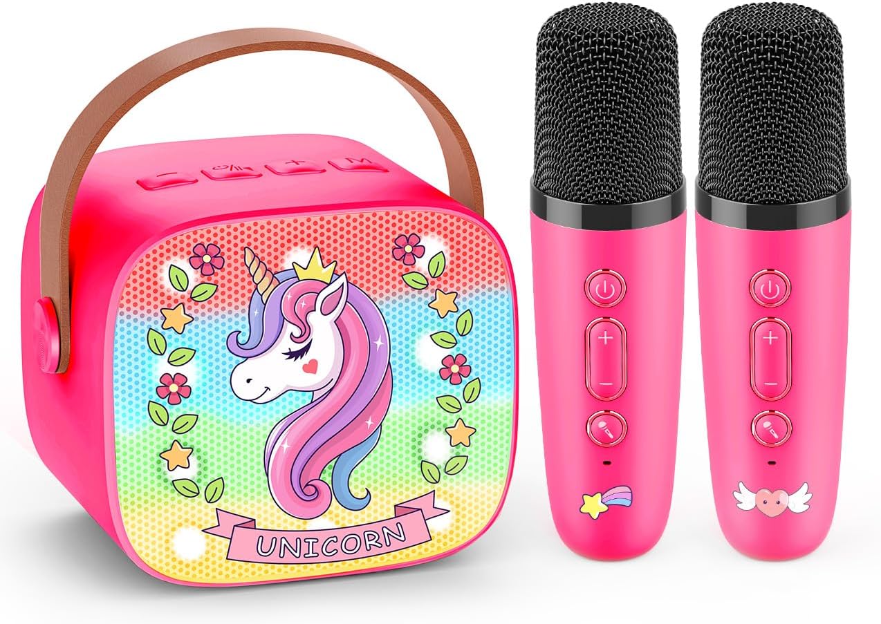 Mini Karaoke Machine for Kids, Exssary 3 4 5 6 7 8-12 Year Old Girl Gifts Portable Bluetooth Speaker with 2 Wireless Microphone Unicorn Toys Birthday Gifts for Girls Kids Teens (Pink)