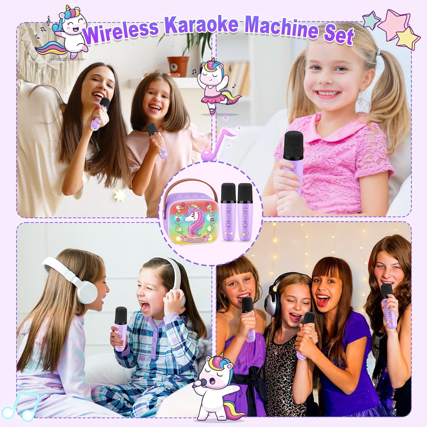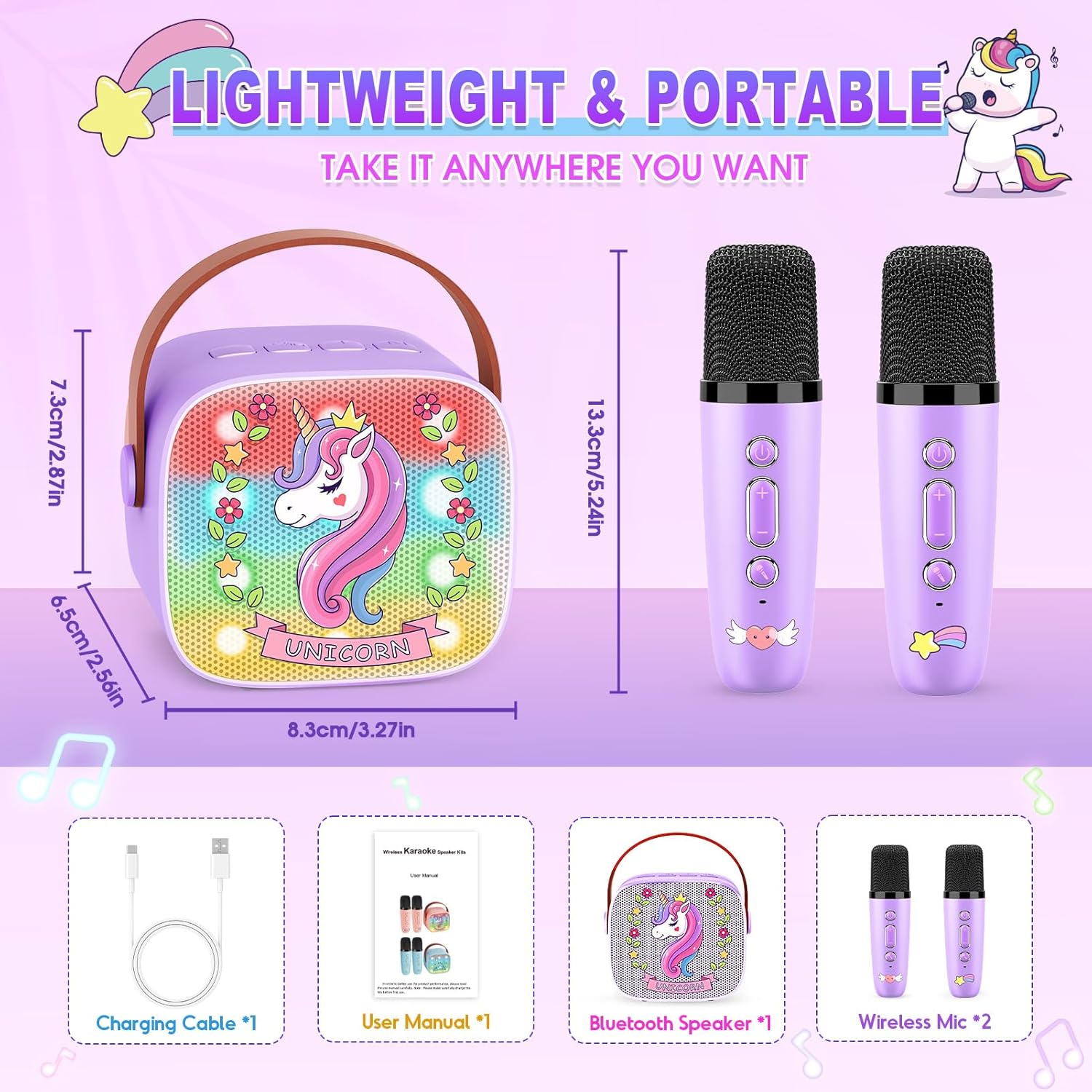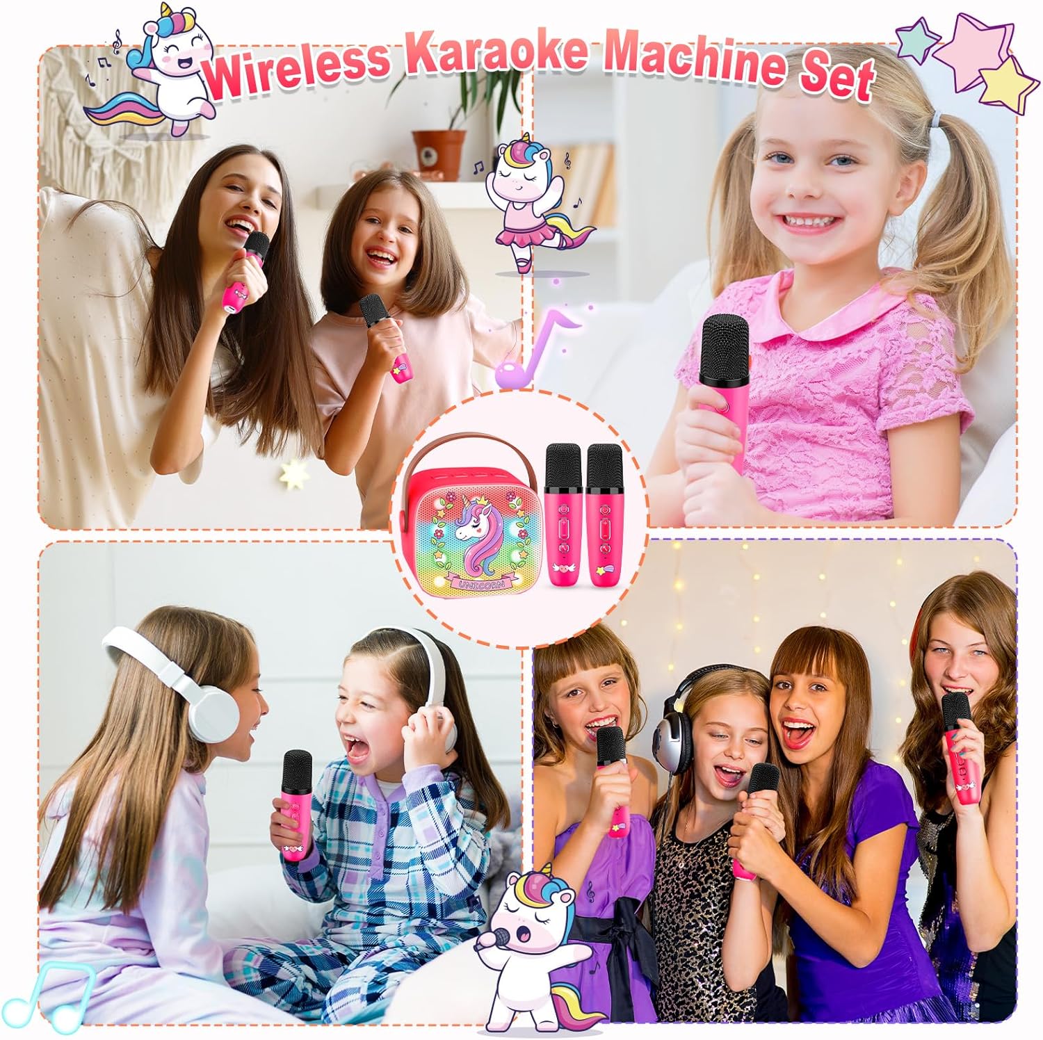 Mini Karaoke Machine for Kids, Exssary 3 4 5 6 7 8-12 Year Old Girl Gifts Portable Bluetooth Speaker with 2 Wireless Microphone Unicorn Toys Birthday Gifts for Girls Kids Teens (Pink)