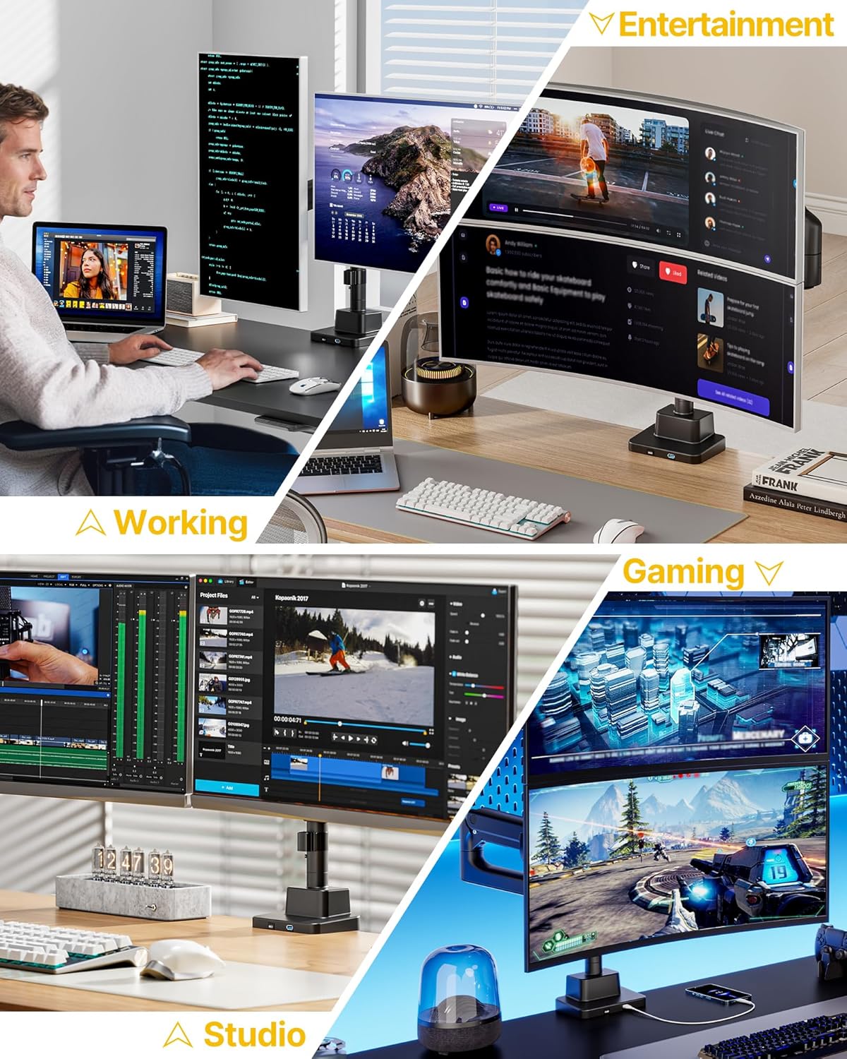- 【Universal Compatibility & Stability】:Engineered for ultimate adaptability, this dual monitor arm supports 17" to 57" curved screens with VESA patterns from 75x75mm to 100x100mm. Compatible with major brands like Samsung and LG, its heavy-duty aluminum construction ensures rock-solid stability and supports up to 59.4 lbs