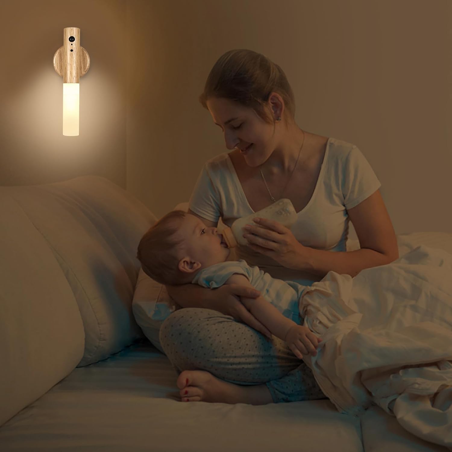 【Compact Size And Material】Our night light (7 x 1 x 1 inches) takes up minimal space whether placed on a surface or mounted on the wall. The handle is made of high-quality wood, and the light pole is crafted from acrylic, giving the product a premium feel. The soft, gentle light creates a comfortable ambiance without being harsh on the eyes.